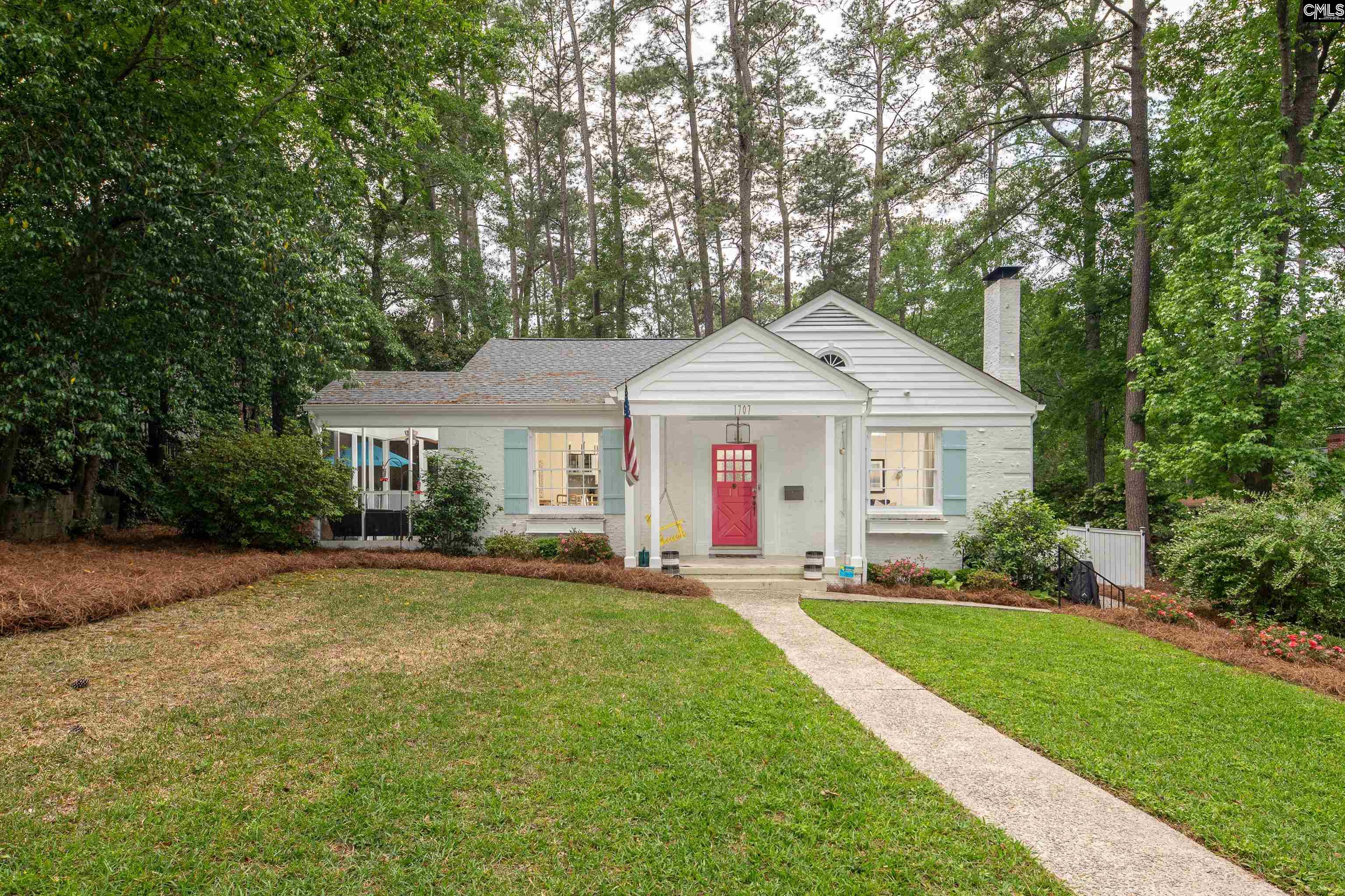 For this truly magical in-town bungalow situated on a massive ½ acre lot, pictures do not do it justice or fully capture the feel. Come see it in person to see what I mean! Enjoy a stellar location convenient to everything: four blocks to Mays Park and mere minutes to Heathwood Park, Devine St Corridor and Forest Drive shopping / dining, Trenholm Plaza, Trader Joes, Whole Foods, Fort Jackson, USC, Five Points, The Vista, and the Statehouse, plus easy access to I-77. Features include a long driveway with ample parking; large front yard; deep front porch; hardwood floors, molding, and gorgeous true divided windows throughout; living room w/fireplace and built-in shelving; formal dining room w/built-in corner cabinet; kitchen w/granite countertops, tile backsplash, recessed lights, white cabinetry, pantry cabinets, bar seating, stainless steel appliances and Jenn-Air gas range, coffee / wine bar with built in shelving and glass storage and glass door upper cabinets; open to cozy den w/built-in entertainment center and book case; master bedroom w/private, updated bathroom, double vanity, shower, and closet w/recent shelving / closet system (2025); 2nd and 3rd bedrooms share an updated second full bathroom (new flooring / vanity 2022); and laundry w/shelf storage above units; and numerous outside entertaining areas including a screened side porch; patio/side courtyard area w/built-in seating; huge fully fenced backyard; secondary fenced garden area w/water/electrical added (2024); and detached building for additional storage or entertaining. Other updates include retaining wall, French drain, and crushed stone driveway (2021); front yard landscaping (2021); new roof on house and detached shed (2025); new French doors and front siding on shed (2025); and new electrical panel (2021). Disclaimer: CMLS has not reviewed and, therefore, does not endorse vendors who may appear in listings.