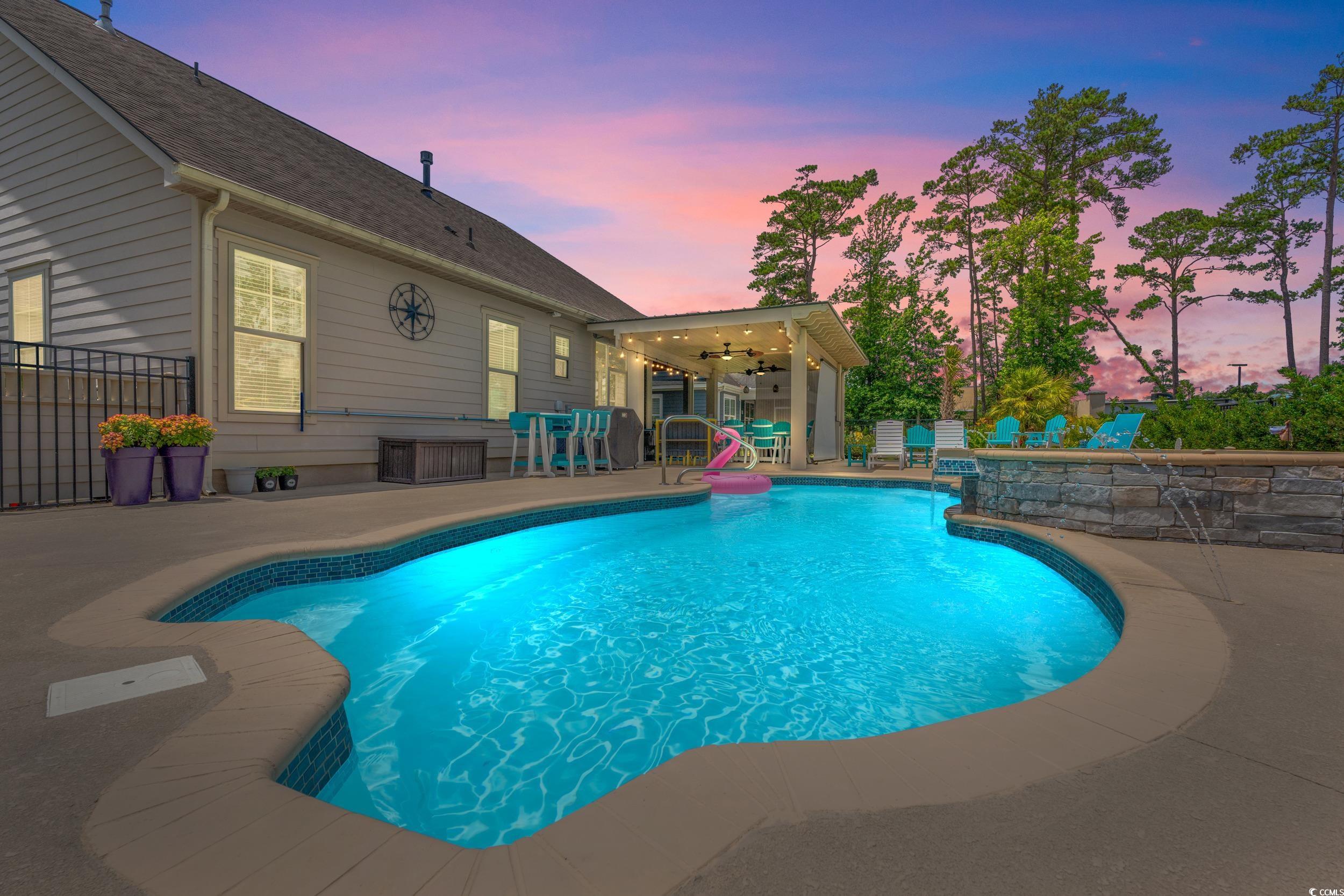 Envision your perfect home at the beach, step inside 1715 Lake Egret Dr, a beautifully designed coastal chic 3-bedroom, 3-bathroom home with a heated saltwater pool & spa, located in the highly sought-after gated community of Seabrook Plantation in North Myrtle Beach, just a short golf cart ride to the beautiful beaches of Cherry Grove. This home offers an ideal blend of luxury, space, and coastal convenience. Step inside to discover an open concept that can be used as a formal living/dining area or flex room, an abundance of living & storage space featuring a generously sized family room with 2-story vaulted ceilings, custom fireplace, and details throughout. The modern kitchen is a chef’s dream with granite countertops, stainless steel appliances, customized cabinetry with rollout storage, and a seamless flow into the main living areas—perfect for entertaining. The first-floor master suite is a true retreat with a large walk-in closet, and a spa-inspired bathroom with tile shower. A second bedroom and full bathroom are conveniently located just off the kitchen, offering comfort and privacy for guests or home office space. Upstairs, you’ll find a generously sized loft area that leads to a third bedroom and another private bath, ideal for a guest suite, as well as two walk-in attic storage rooms. But the real showstopper is the outdoor living space. Enjoy year-round relaxation on the screened porch and pergola covered patio—complete with twin ceiling breeze fans—that overlook your private oasis. The fenced backyard boasts a custom heated saltwater pool and spa with water features, perfect for both quiet mornings and festive gatherings. Surrounding the custom pool is immaculate professionally landscaped plantings & hardscape. Imagine relaxing on a warm summer evening by the pool that features built-in lighting for nighttime ambiance. In addition to the outdoor living area, the 30ft extended garage has been outfitted with a mini-split to provide additional entertaining space, including a billiards table and 70" TV, both will convey with the home. Seabrook Plantation offers residents exclusive access to a community pool, RV/boat storage, and proximity to shopping, dining, golf, and, of course, the beach! This home is not in a flood zone and does not require flood insurance. Don’t miss the opportunity to own this exceptional home in one of North Myrtle Beach’s most desirable communities. Schedule your private tour today and ask about the items and furnishings that will convey with the property! Be sure to watch the video tour.
