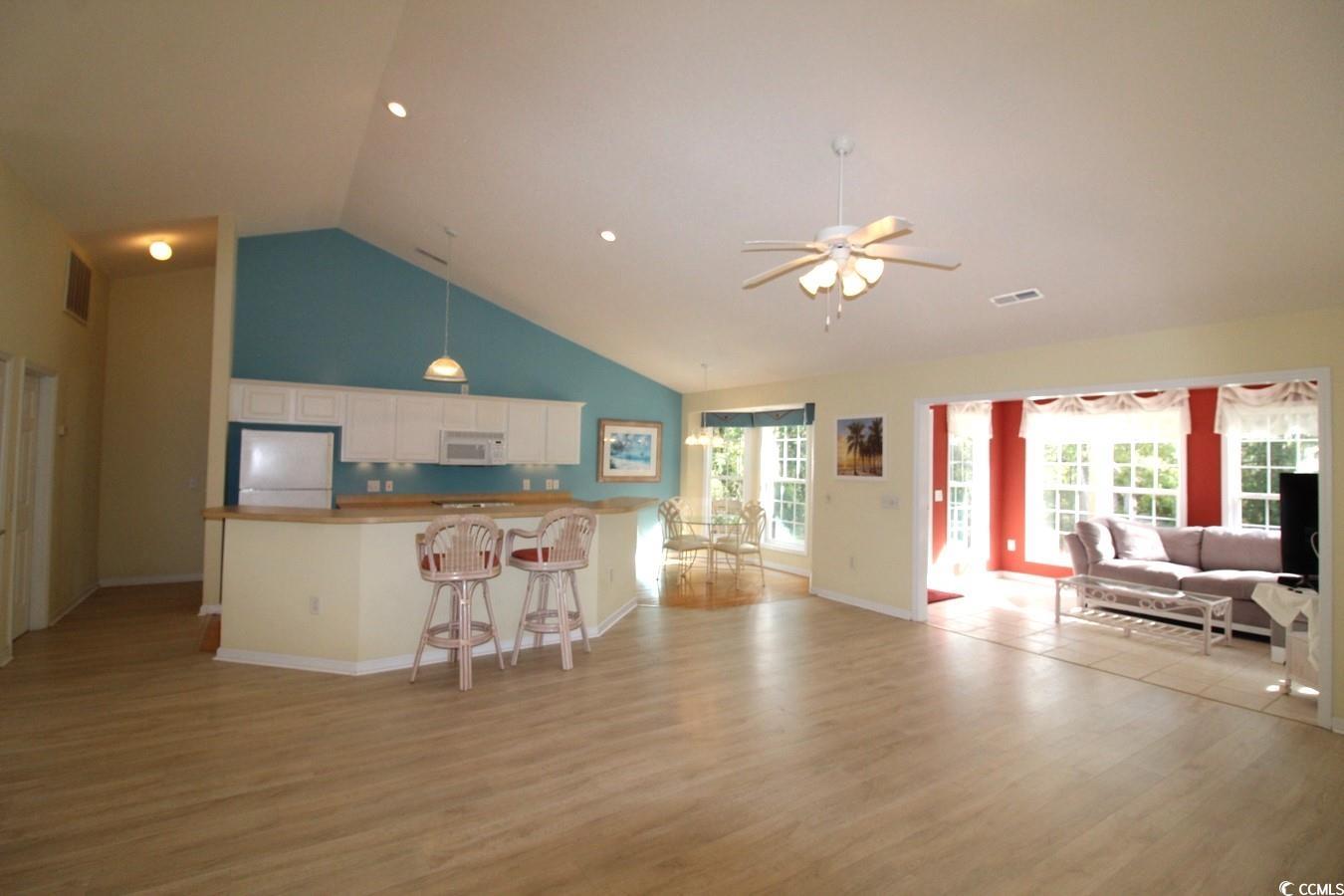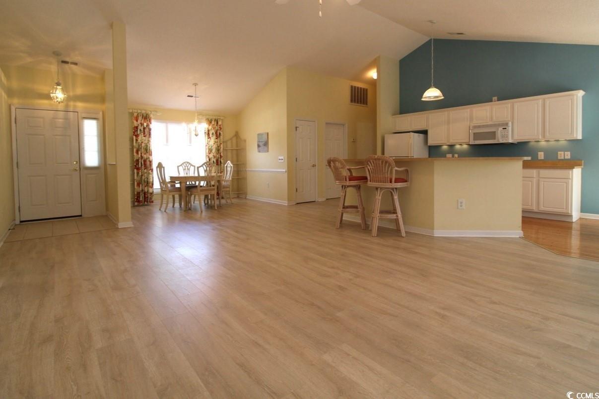 This 3BR, 2BA home in Collins Glenn enjoys a private, wooded backyard on a 0.66-acre lot. The back patio has a hot-tub which will convey with a door for access to the master bedroom suite. This split bedroom floorplan features open space & high ceilings in the core of the house. Newer laminate floors in the family room, kitchen, bedrooms & dining area. Kitchen appliances include flat-top stove, built in microwave, refrigerator and dishwasher. Enjoy the wildlife from the sunny Carolina Room with access to the backyard. The master bathroom suite has a walk-in closet, stand-up shower, garden tub & double sink. This home is offered for sale by the original owners & has only been used as a vacation home. The owners have added custom lighting features in the backyard and under & over cabinet lights in the kitchen. There is a laundry room with washer & dryer. Plenty of room for storage and parking in the attached 2-car garage with pull down attic access. The home is located on a quiet, low traffic street which is maintained by Horry County. Collins Glenn has a community pool, weekly trash pick-up and internet service as amenities provided through the HOA. Collins Glenn is a highly desirous South Strand neighborhood conveniently close to Hwy 707, St. James schools, groceries, pharmacies, retail, the beaches of the Atlantic Ocean, the Murrells Inlet MarshWalk & all the amenities that the South Strand has to offer.