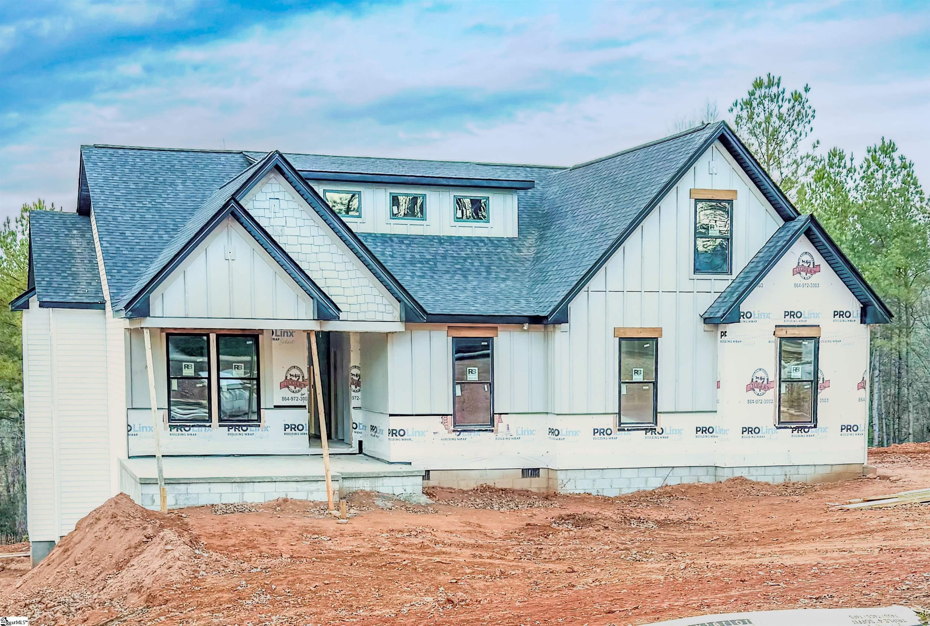 Spectacular brand-new 3-bedroom, 3-bath modern farmhouse by Alex Craft Homes with a spacious bonus room, situated on a serene 1+ acre lot. This thoughtfully designed home offers exceptional craftsmanship, timeless style, and elevated finishes throughout—truly everything you’ve dreamed of and more. Built with outstanding quality and attention to detail, this home features gorgeous flooring, stunning countertops, beautiful trim work, and high-end fixtures that create a warm, welcoming, and luxurious feel. As you step inside, you’re greeted by an open-concept living area enhanced by a coffered ceiling and a striking floor-to-ceiling stone fireplace. The gourmet kitchen is a true showstopper—complete with a large island, quartz countertops, soft-close cabinetry, a deep farmhouse sink, convenient pot filler, and top-of-the-line LG appliances. The dining area showcases elegant wood ceiling beams and wainscoting, blending rustic charm with modern sophistication. The spacious primary suite offers a peaceful retreat, highlighted by a sliding barn door and a spa-like bathroom featuring double vanities, marble-style tile flooring, and a beautifully tiled shower. Enjoy private wooded views from the covered back deck—perfect for relaxing or entertaining. Located in an attractive and desirable area, this home provides both luxury and peace of mind, complete with a builder’s one-year warranty. Estimated completion date: February 18, 2026. Photos of the same floor plan/model but from a different location can e provided upon request.