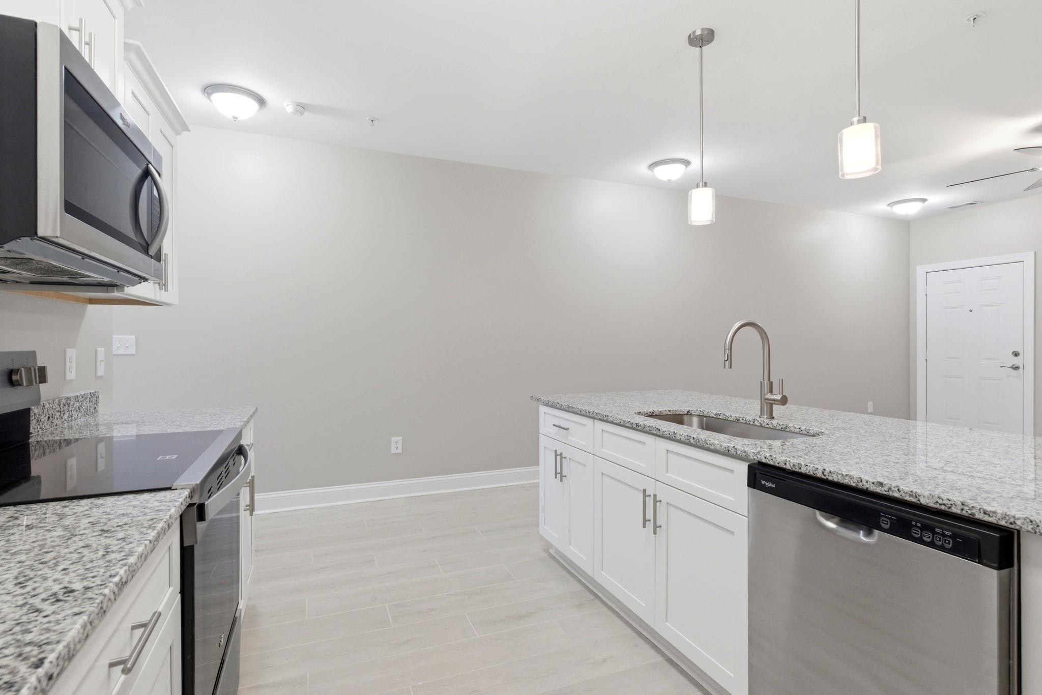 Priced improvement!! This recently renovated, open-concept, spacious one-bedroom with 9-foot ceilings in the Village at Queens Harbour II offers resort-style living with easy access to restaurants, shops, and beaches. The kitchen features custom white shaker cabinets with soft-close doors and drawers, new granite countertops, stainless steel Whirlpool appliances, a pantry, and a breakfast bar. The bathroom includes a laundry closet with washer and dryer hookup, a linen closet, a new vanity, and updated fixtures. Enjoy all-new ceiling fans in the living room and bedroom, custom pendant lights over the kitchen counter, and a new HVAC air handler with an air-purifying system. Extra perks include an exterior storage closet, a large swimming pool, a clubhouse with picnic and grill area, elevator access, and a well-lit community with 24-hour surveillance.