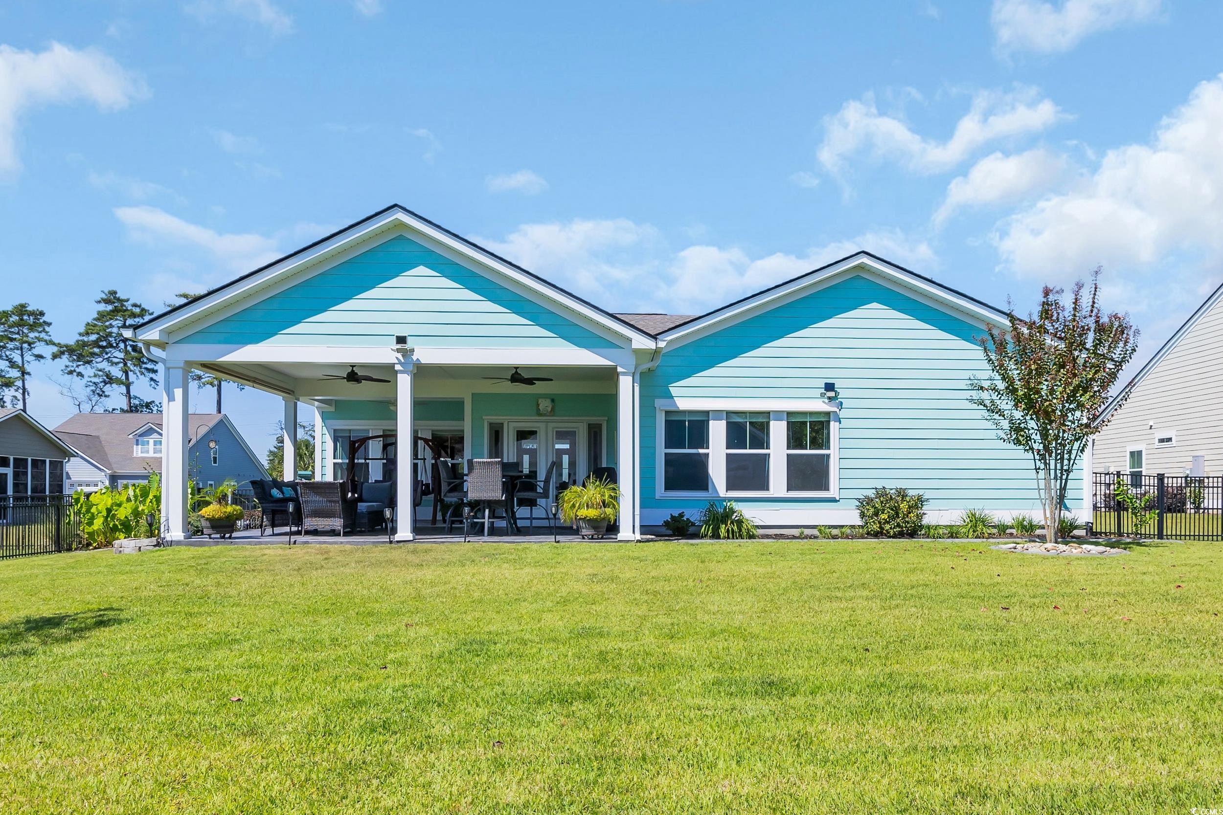 Prestigious gated living, less than 2 miles to the beach by golf cart! This North Myrtle Beach home combines prime location with countless upgrades, offering the perfect blend of luxury, comfort, and coastal convenience. Situated on a quarter-acre lot, this property boasts a three-car garage and is just steps from Publix, shopping and dining. Step inside to find luxury vinyl plank flooring throughout (no carpet!), upgraded light fixtures, fresh custom paint, and updated appliances. The home comes complete with a refrigerator, washer, and dryer, making it move-in ready. You'll enjoy the chef's kitchen complete with granite countertops, breakfast bar, work island, stainless appliances and gas range! There's no shortage of storage in this home with the walk-in pantry, large linen closets and generous master closet. The owners have invested heavily to create a home designed for entertaining and peace of mind: Custom backyard covered entertainment area – the ultimate space for gatherings year-round, Fully fenced backyard – perfect for pets and privacy, Aluminum storm shutters and a whole-home generator – providing extra security and convenience, Updated appliances and thoughtfully chosen designer fixtures throughout. Neighborhood amenities include: gated entryways (3), clubhouse with swimming pool/spa, sidewalks AND RV/Boat storage. select furnishings are negotiable.