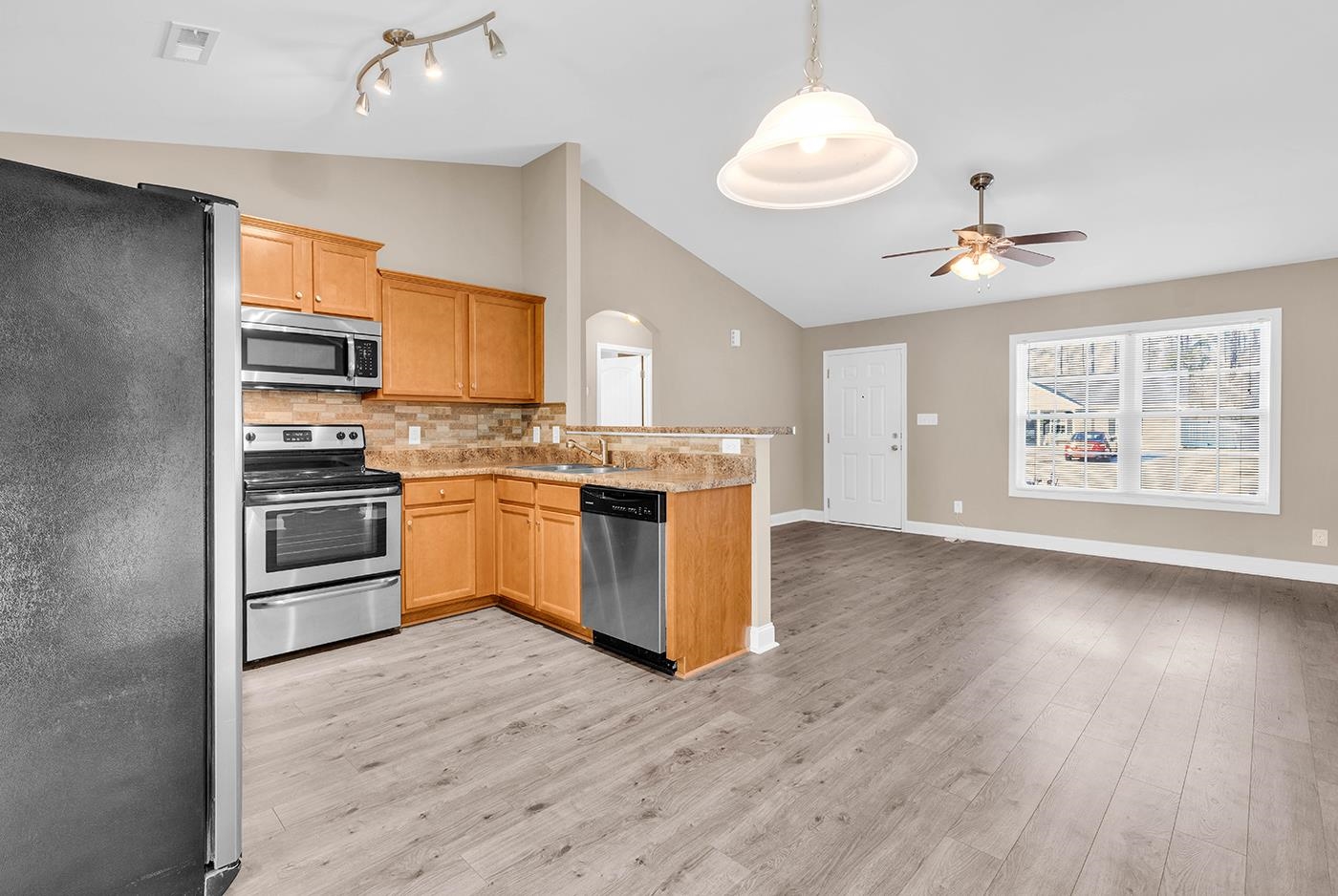 Well-maintained 3-bedroom, 2-bath single-level home located on a lake lot in the Cottage Creek community. This property offers a functional split-bedroom floor plan with an open living, kitchen, and dining area featuring vaulted ceilings and durable flooring throughout the main living spaces. The kitchen includes ample cabinet storage, a breakfast bar, and stainless steel appliances. The primary suite features a tray ceiling, walk-in closet, and private bath. Two additional bedrooms and a full bath are located on the opposite side of the home. Enjoy outdoor living with a rear patio overlooking the fenced backyard and lake, providing a peaceful setting for everyday living or entertaining. Additional features include a Carolina room, laundry room, attached storage, and a 1-car garage. Situated outside city limits with low HOA fees, this community offers sidewalks and a pond setting while remaining convenient to downtown Conway, shopping, dining, and area beaches.
