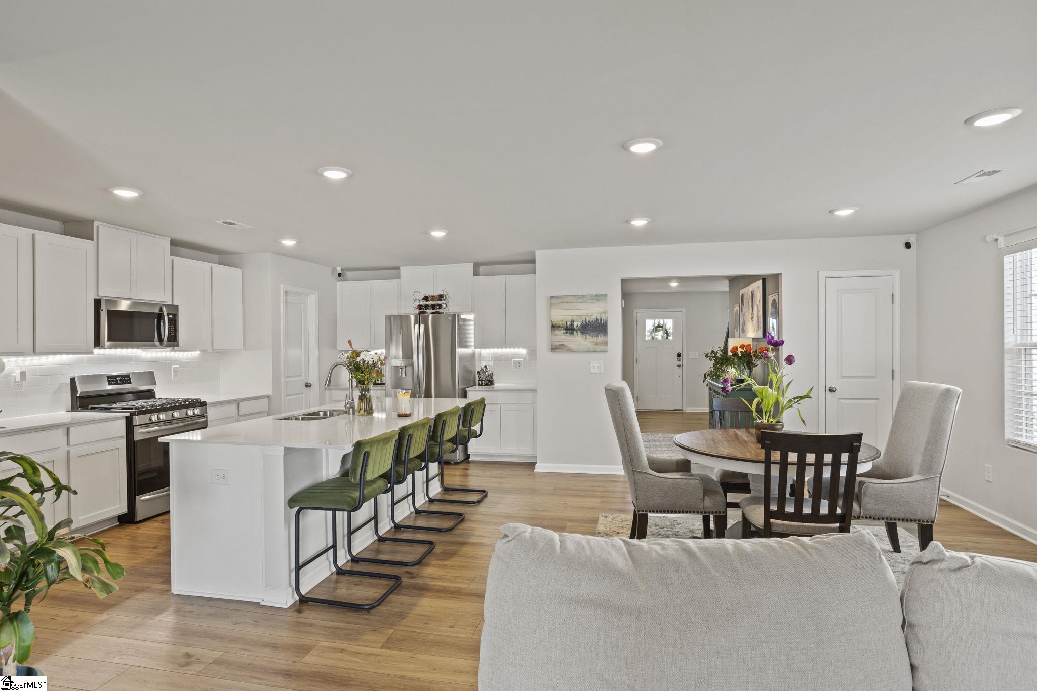 Welcome home to this stunning 2023 new construction in the heart of Boiling Springs — where modern smart living meets everyday convenience. Perfectly positioned just off Interstate 85, this home offers effortless access to everything you need: only 15 minutes to Spartanburg, 25 minutes to Greenville, and just 8 minutes to shopping, dining, and daily essentials in Boiling Springs. Enjoy small-town charm without sacrificing connectivity. Step inside to discover beautiful new LVP flooring throughout the main level and a warm, welcoming entryway that immediately feels like home. The thoughtfully designed open-concept layout seamlessly connects the kitchen, breakfast area, and living room — creating a spacious yet comfortable flow that’s ideal for entertaining or everyday living. A standout feature of this home is the private main-level guest suite complete with a full bath — perfect for extended family, visiting guests, or even multigenerational living. Upstairs, an expansive bonus room offers endless flexibility. Whether you envision a media room, home office, playroom, fitness space, or even a sixth bedroom, this oversized space adapts to your needs. Three additional bedrooms are thoughtfully situated on one side of the home, while the split floor plan ensures the primary suite remains a private retreat. The primary suite is designed for comfort, featuring two generous closets and a spacious en-suite bath with dual vanities and a large walk-in shower — creating a functional yet relaxing space to unwind. Built in 2023, everything in this home is truly new — including the HVAC system, roof, and water heater — offering valuable peace of mind. Smart home features such as a smart door lock add modern convenience, while the chef-inspired kitchen includes all new appliances (which convey), highlighted by a premium gas range perfect for elevated home cooking. With flexible living spaces, smart technology, and a prime location near major hubs, this home offers exceptional value in today’s market. Opportunities like this — a move-in-ready, beautifully maintained new build at this price point — rarely last. Schedule your private tour today and experience everything this exceptional home has to offer.