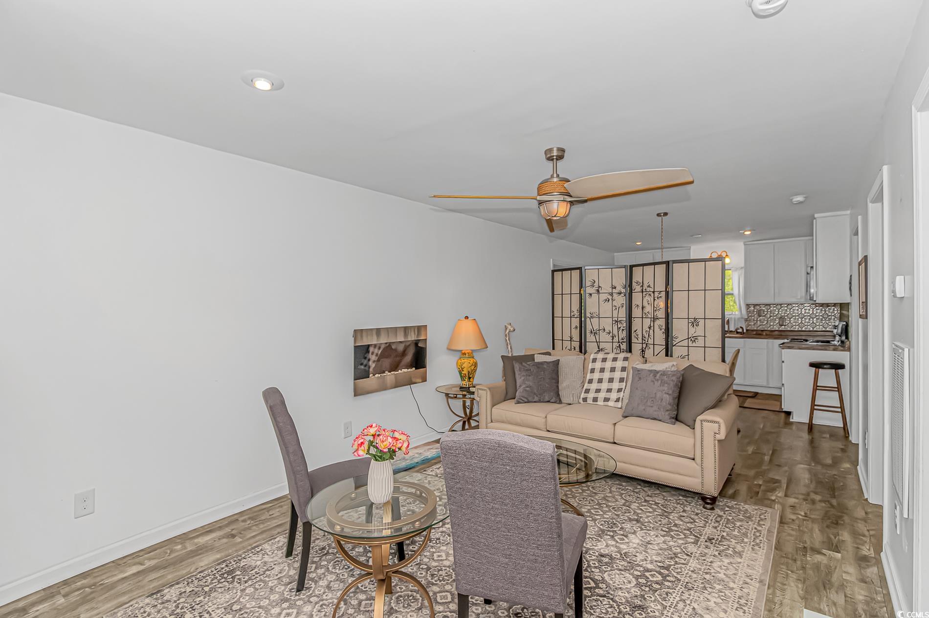 Welcome to 175 Cypress Lane, a beautiful home in the heart of Little River, SC, where charm, comfort, and convenience come together with no HOA restrictions. Fully reconstructed in 2019, this raised home sits on a solid brick foundation with durable vinyl siding and a long-lasting metal roof, offering peace of mind and easy upkeep. Whether you're searching for a full-time residence, second home, or investment property, this updated coastal retreat is ready to impress. Step inside to an open living area with tall, flat ceilings, luxury vinyl plank flooring, and a wall-mounted electric fireplace that brings a cozy modern touch. A hall closet adds functionality right off the entrance. To the right, the first of two primary bedrooms features plantation shutters, a ceiling fan, and a custom closet with built-in shelving. A full bathroom with a tiled tub/shower combo and single vanity sits conveniently between both bedrooms. The kitchen is the true centerpiece—offering a spacious L-shaped countertop, stainless steel appliances, and a dedicated dining area that flows seamlessly into the living space. Off the kitchen, the second and larger primary bedroom features its own walk-in closet with built-ins and access to a full bathroom with a walk-in tiled shower. A separate laundry room provides added convenience. Step outside to enjoy raised wooden decks at both the front and back of the home, with the rear deck offering peaceful views of the landscaped yard—perfect for relaxing or entertaining. Every window is outfitted with elegant plantation shutters, bringing natural light and privacy to every room. Located just minutes from the beaches, golf courses, shopping, and dining that make the Grand Strand so desirable, this like-new home blends style and low-maintenance living in a quiet, sought-after location. **Don’t miss this rare opportunity—schedule your private showing today and make 175 Cypress Lane your next home before it’s gone!**