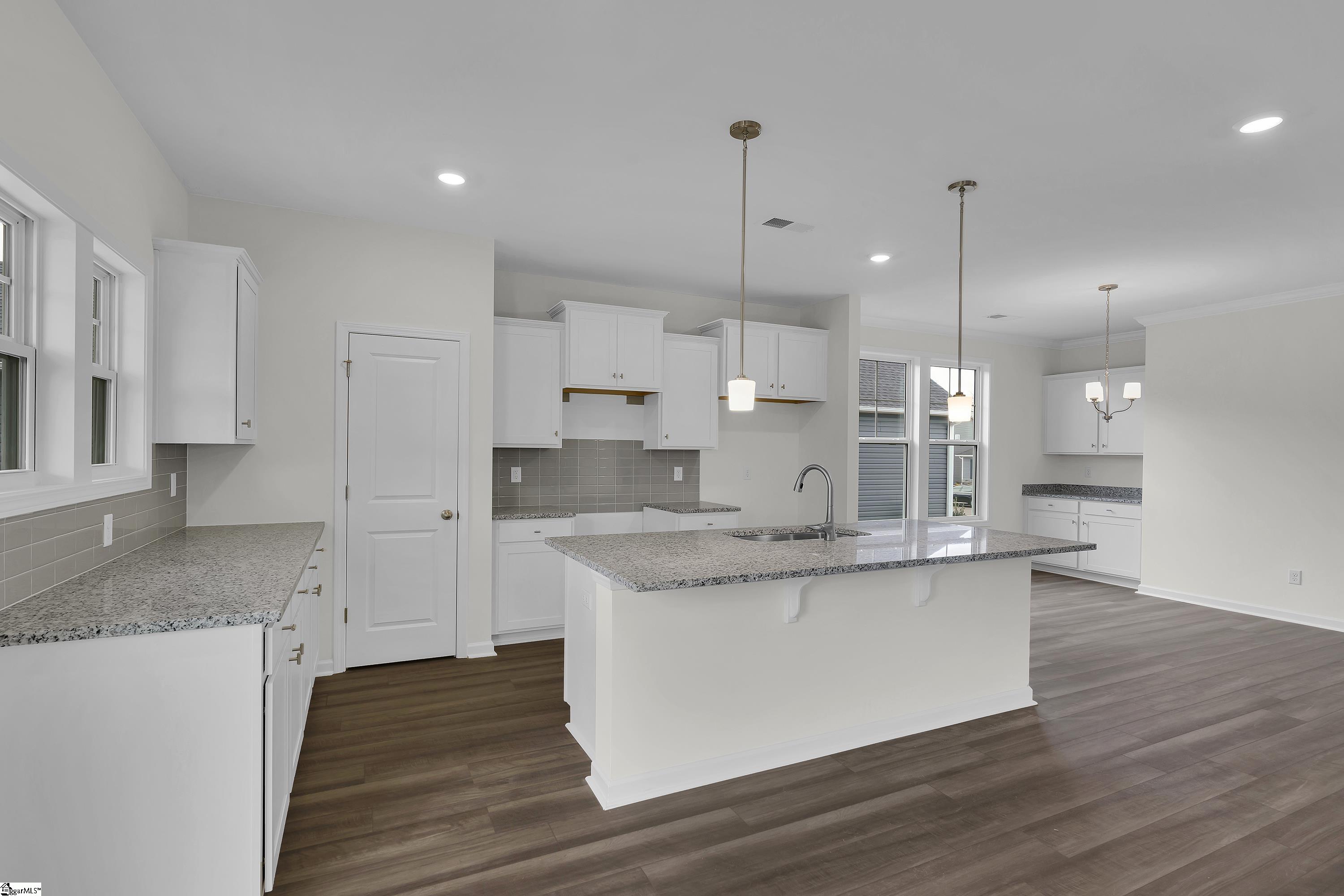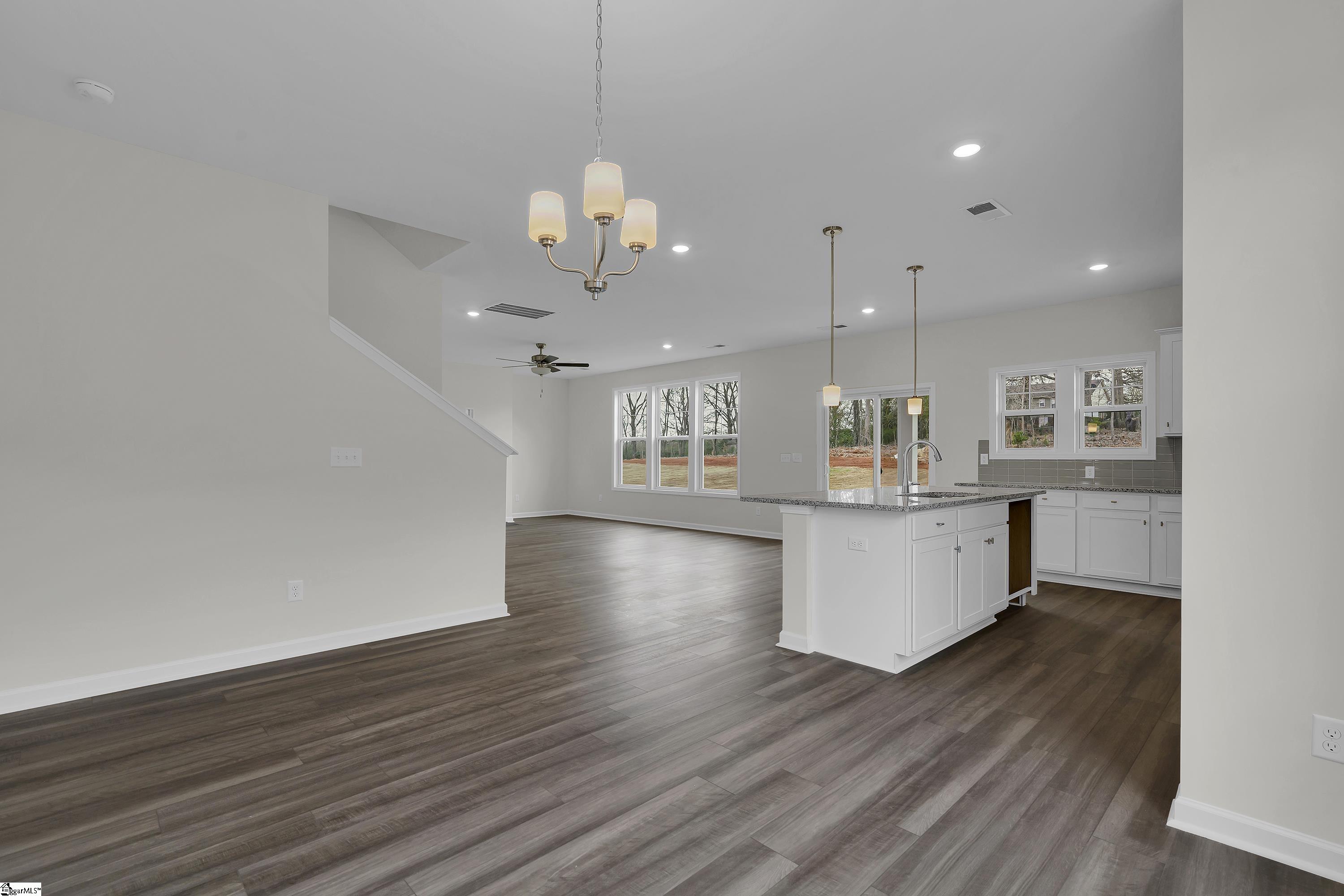 Our ever popular Devonshire II invites you to come in from the moment you drive up and see the craftsman-style exterior that says, "Welcome home"! Beautiful luxury vinyl plank flooring meets you at the front door and beckons you to explore all that this desirable floor plan provides. Looking for a home with formal areas? This one checks the boxes with both a formal living room and a formal dining room! The kitchen is a chef's delight and includes an island, staggered cabinetry, granite countertops, a large walk-in pantry, and stainless steel appliances. Upstairs includes a loft, three bedrooms and the spacious primary suite. The primary suite includes a vaulted ceiling, dual sinks with granite vanity tops, a separate garden tub and shower, linen closet, and 2 separate, walk-in-closets. This home also includes brushed nickel light fixtures, and extensive storage space throughout. All on a deep half acre lot backing up to the trees. Interested in a GreenSmart home? Live Green. Live Smart. The tankless hot water heater, programable thermostat, Energy Star appliances, Low-E glass windows, above industry rated insulation, and a programmable 4-Zone irrigation system are just a few of the standard items that will assist with lowering your monthly utilities while reducing your carbon footprint at the same time. Relax and unwind on the covered patio, an ideal place to enjoy the beauty and nature of the spacious backyard. Each lot is unique and provides plenty of green space overlooking wooded views, perfect for entertaining guests and creating memories for many years to come.