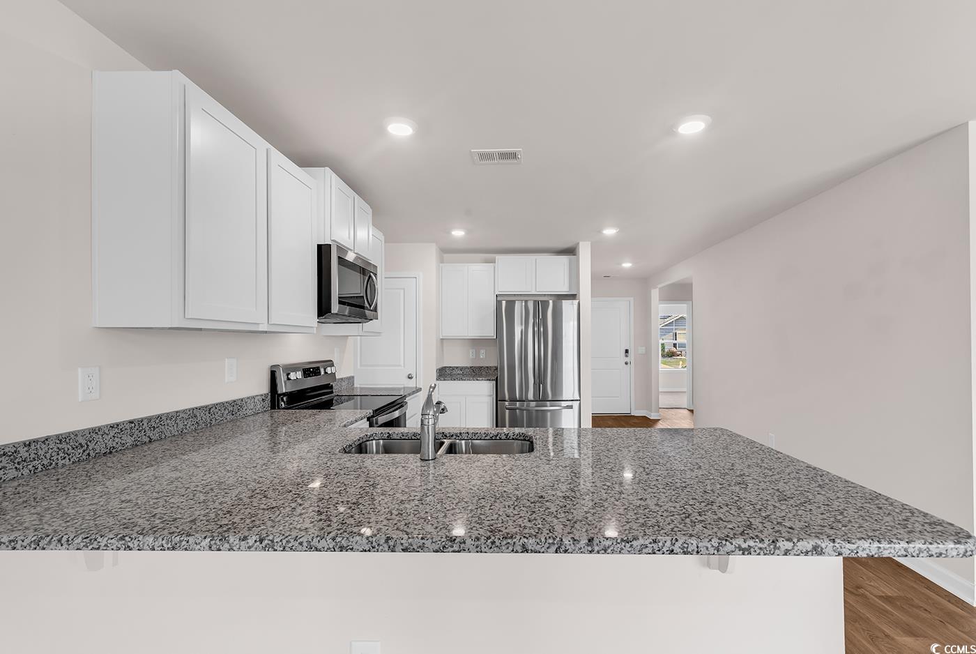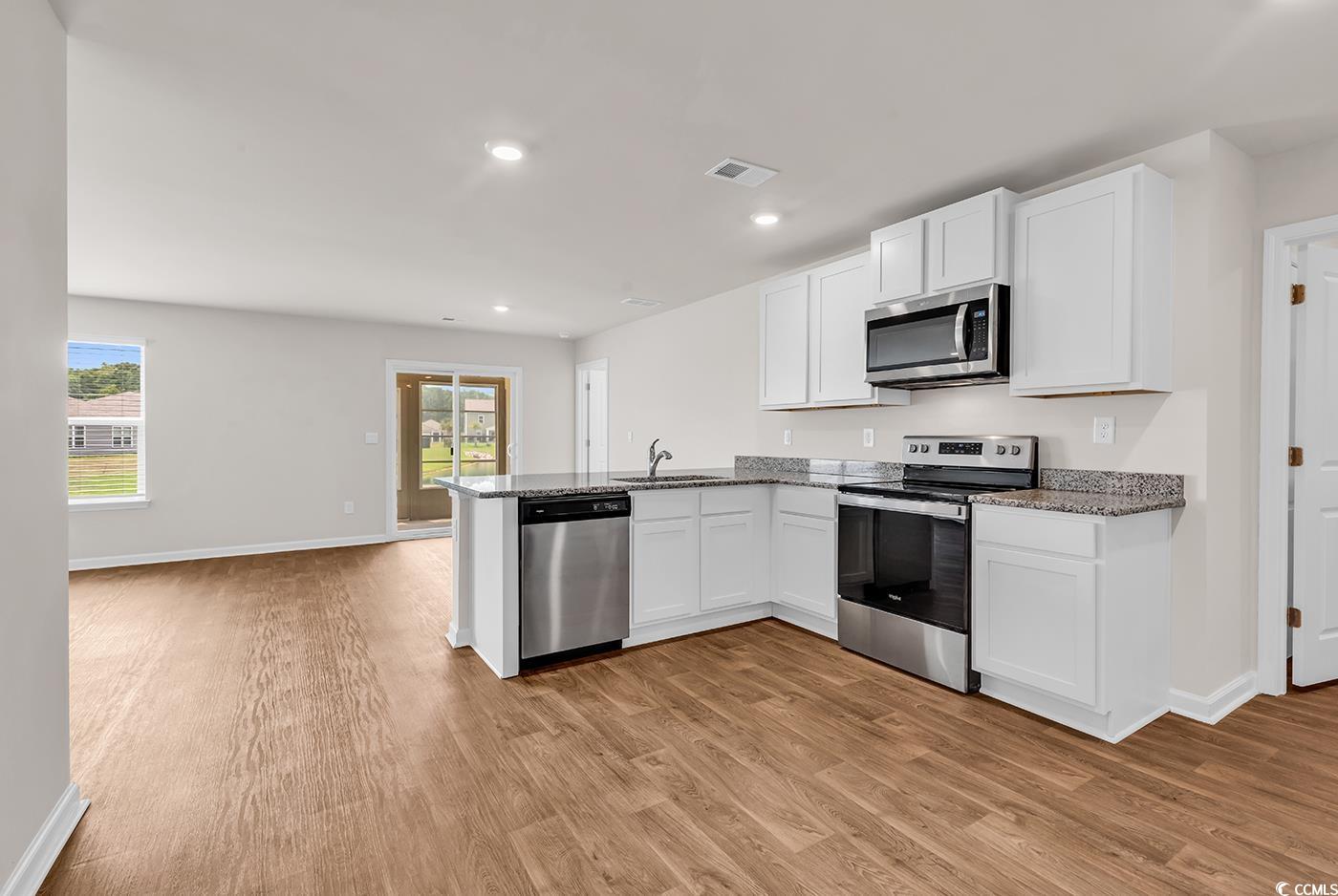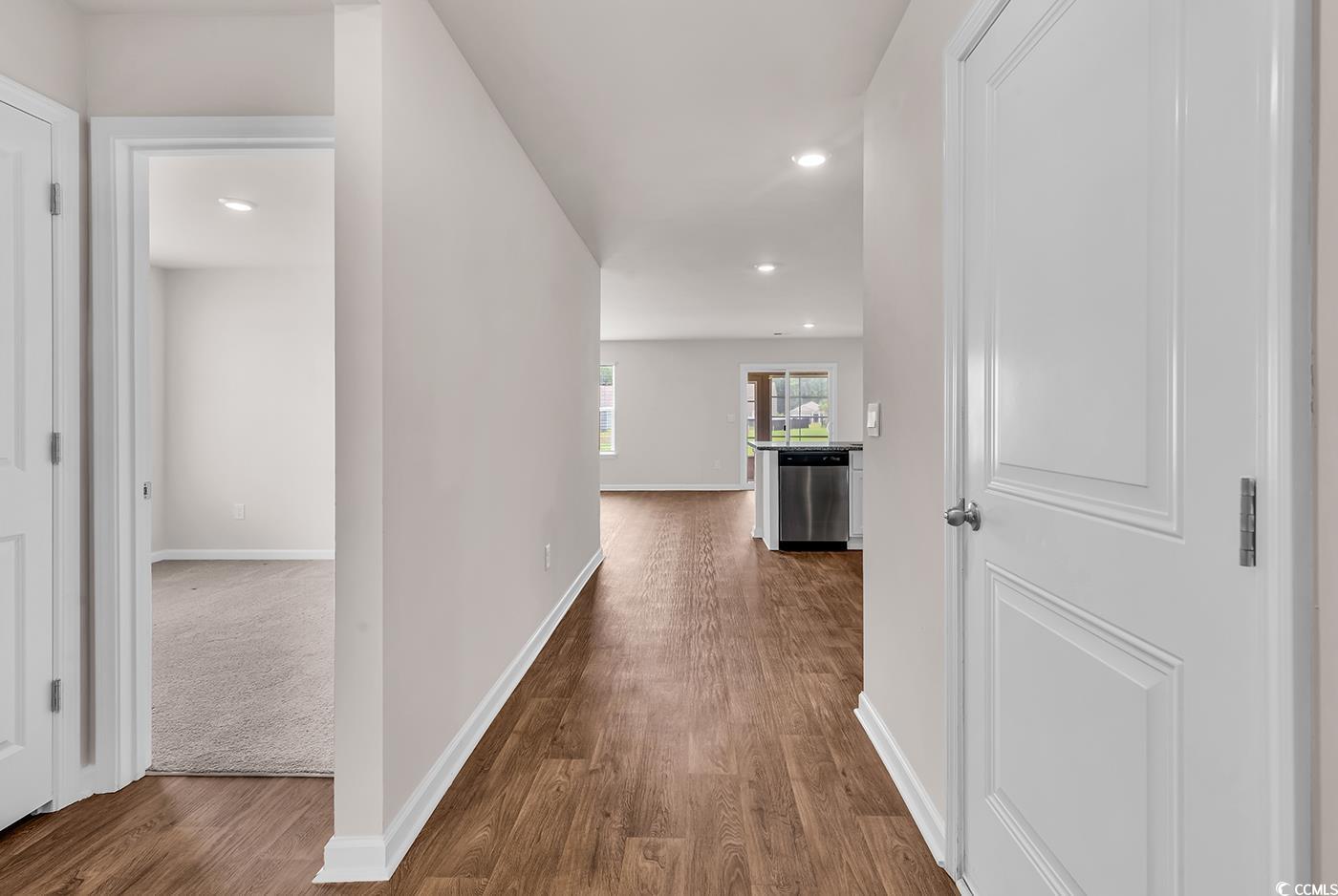 Welcome to 177 Belmonte Drive in the Oak Estates East section of Island Green. This charming single level home features three bedrooms, two bathrooms, and a peaceful pond view that adds to its relaxing feel. Built by a reputable builder, the layout is smart and functional with a split bedroom design, solid surface countertops, vinyl plank flooring in the main areas, stainless steel appliances, and a pantry with a breakfast bar that opens to the living space. The home offers a clean and easy aesthetic that feels fresh the moment you walk in. The enclosed porch was added by the previous owner and is very well insulated, making it a comfortable space to enjoy in any season. The owner also installed a more handicap friendly shower surround to provide extra comfort and accessibility in one of the bathrooms. With a spacious two car garage and an inviting covered back porch, there is plenty of room to store your things and enjoy the outdoors. The primary suite is generously sized with a large closet and private bath. Whether you are looking for a primary residence, a second home, or a simple and comfortable place to land near the coast, this one checks a lot of boxes. The location is what truly sets it apart. Nestled in the unincorporated part of Horry County with a Myrtle Beach address, you get all the convenience without the added city taxes. Just a short drive to Surfside Beach, known as the family beach, and close to Myrtle Beach International Airport, popular restaurants, shopping centers, golf courses, and everything else the Grand Strand has to offer, this spot makes it easy to enjoy the best of the area while keeping things simple.