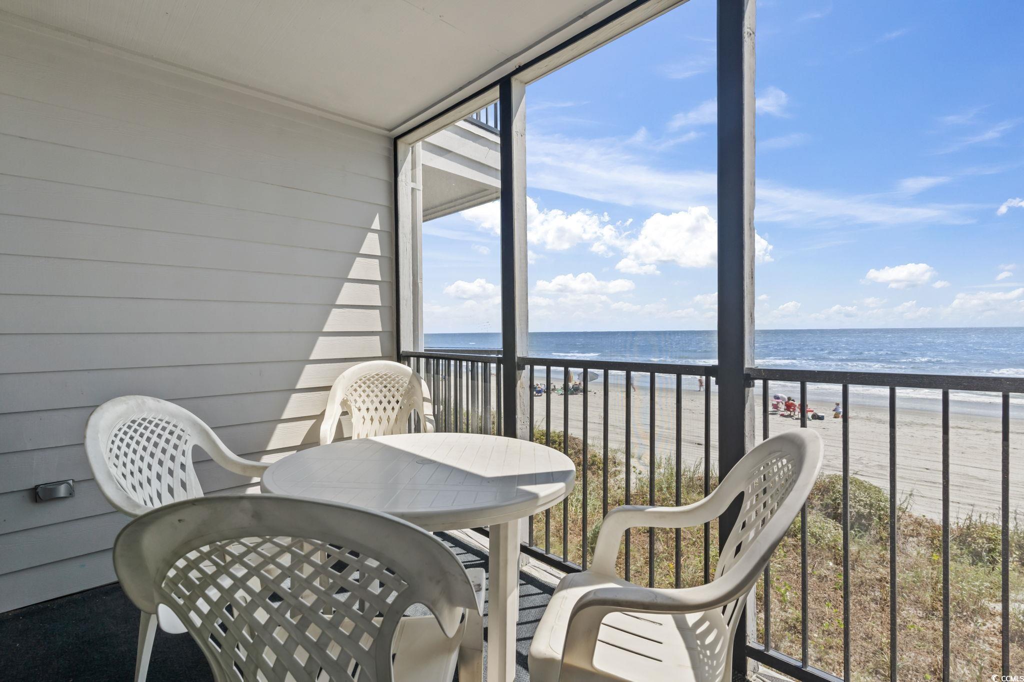Discover a unique opportunity with this rare oceanfront condo in the highly sought-after Ocean Cove community of Garden City. This fully furnished condo features 3 spacious bedrooms and 2 bathrooms, offering ample space for a second home. Enjoy the serenity of ocean views from your own screened-in porch or unwind in the master bedroom's private balcony. Convenience is at your fingertips with a brand new washer and dryer included, an elevator, and a downstairs storage closet where you can easily grab your beach gear and be just steps away from the beach. Situated in a prime location, this condo is just a short distance from Conch Cafe, Garden City Pier, and other local attractions. Perfect as a second home or investment property, this exceptional condo has been cherished by only two owners. Don’t miss your chance to own a piece of coastal paradise.