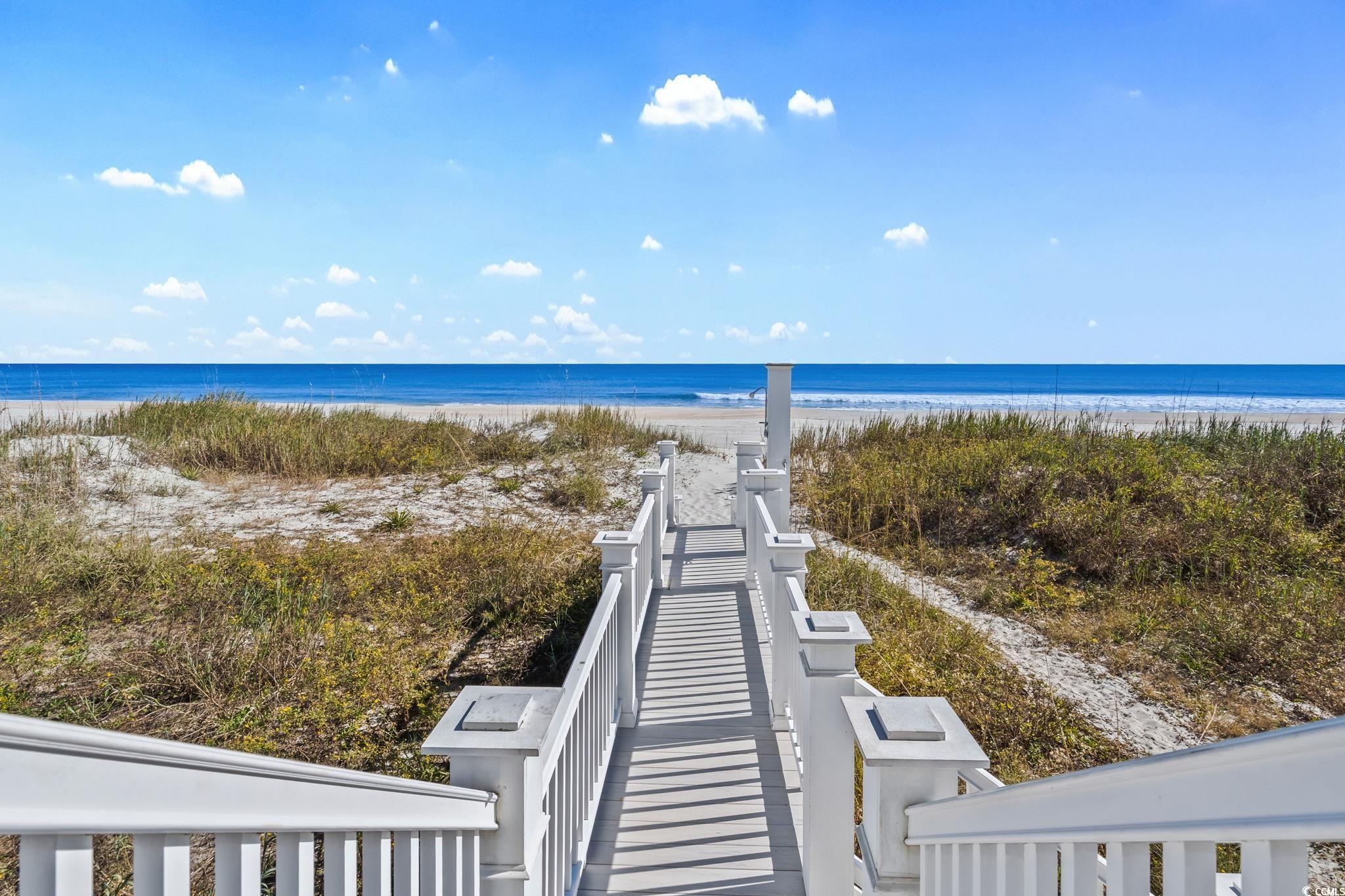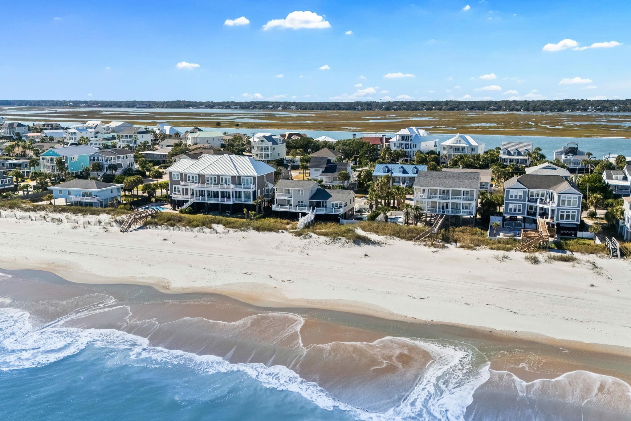 Palmetto Sands is an oceanfront five bedroom, five bathroom home located along the wide beaches of Garden City Beach, South Carolina. This property sits on a rare ninety foot wide oceanfront lot and offers exceptional views, generous outdoor living areas, and strong rental history. The home is being sold fully furnished which creates an easy and immediate opportunity for personal use or continued rental income. Four of the five bedrooms offer direct oceanfront views and almost every room in the home captures the sights of the Atlantic Ocean. The main living areas feel open and comfortable with natural light flowing throughout the home. Several bathrooms have been updated with shiplap accents, new vanities, and tiled showers to create a clean coastal feel. The railings and decks, as well as some of the furniture, appliances, and decor, have all been freshened up in the last couple of years which adds to the overall presentation and turn key nature of the home. Outdoor living is one of the main highlights of this property. The two year old heated pool provides a private place to relax throughout the year and the multiple porches on the front and rear of the home offer shaded seating and gathering spaces. There is also a convenient outdoor shower underneath the home which is ideal after a day on the beach. A private beach walkover leads directly to the sand and the elevated construction provides excellent parking underneath the home as well as covered storage areas. A four year old roof and three year old HVAC units offer added peace of mind. This oceanfront home is positioned in one of the most sought after sections of Garden City Beach and is close to restaurants, marinas, golf courses, parks, and the Garden City Pier. Palmetto Sands combines oceanfront living, investment potential, and an excellent rental history making it a strong option for buyers seeking a beach home or an oceanfront rental property in South Carolina.
