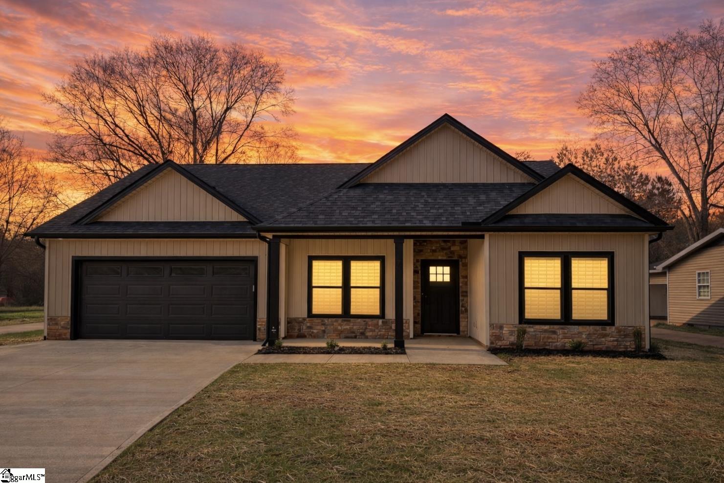 Brand-New Construction, Just Completed & Move-In Ready. NO HOA! New beautifully designed 3-bedroom, 2-bath home blending high-end upgrades with thoughtful details for comfort and convenience throughout. Inside, you’ll find a dedicated laundry room, 9-foot ceilings in every bedroom creating a spacious, airy feel, and an open-concept living room with dramatic 10-foot ceilings that elevate the main living space. Luxury vinyl plank flooring runs throughout the home for both durability and style. The primary suite features a full bath with a double vanity, large shower, and walk-in closet. Step outside to relax on the covered patio overlooking a level lot, perfect for outdoor enjoyment. Conveniently located near shopping, dining, and the interstate. This home offers the flexibility and freedom you’ve been looking for. Don’t miss your opportunity to make it yours! Agent related to seller.