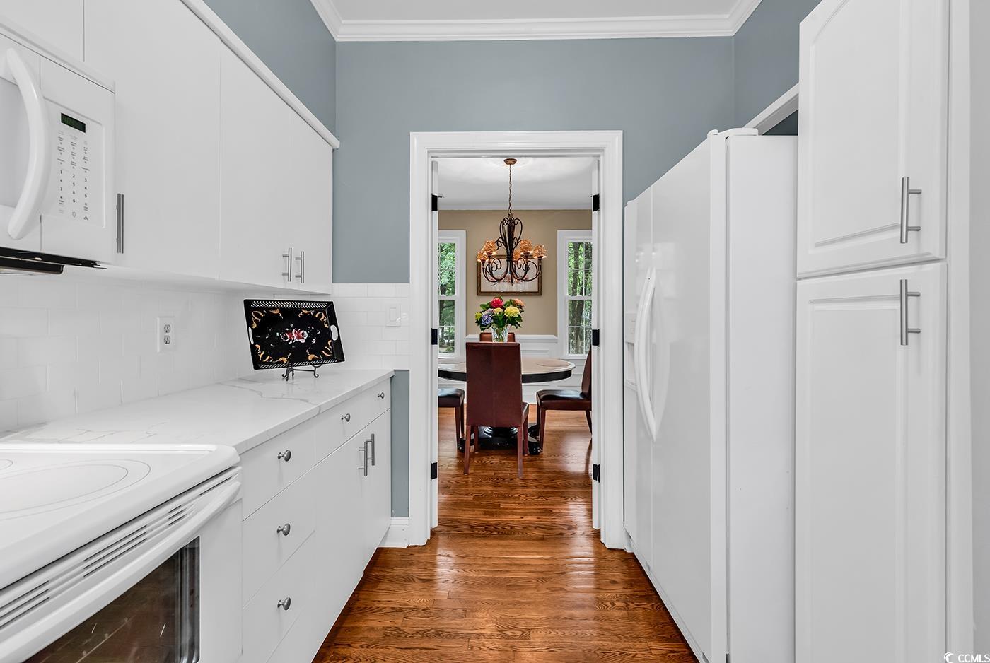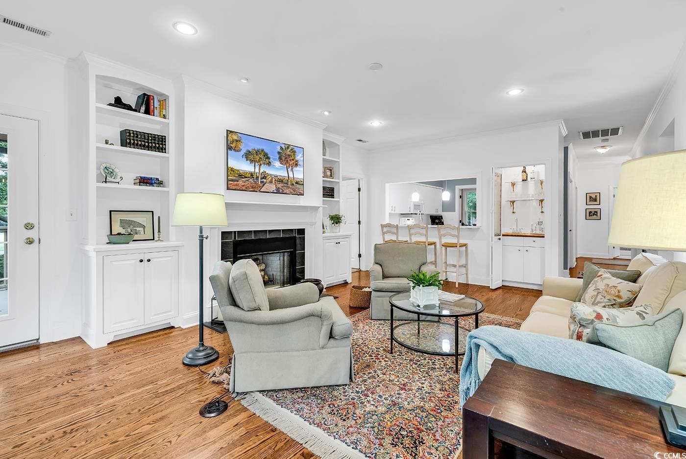 Enjoy the exclusivity of low-country coastal living at its finest within the secured gates of Pawleys Plantation Golf and Country Club. Tastefully incorporated in a four-villa building, this 2 bedroom, two and a half bathroom Pawleys Glen condo overlooks the maritime tree lined fairway of hole #9 on Jack Nicklaus' Signature Design Golf Course in Pawleys Island, South Carolina. This tranquil setting can be enjoyed from the spacious screened porch, as well as the 2 separate private decks accessible from the great room and each master bedroom. Both of these master bedrooms have walk in closets adjoining en-suite bathrooms with double sinks, walk-in showers and whirlpool tubs. Enjoy entertaining friends and family in the upgraded kitchen centrally located next to the formal dining room, great room and powder room. Many of the upgrades included with the beautiful hardwood flooring are Calacatta Quartz countertops, Kohler Artifacts sink faucet and accent lighting in the kitchen. Wainscoting, crown molding and double French doors in the formal dining room. Custom design wallpaper and Calacatta Quartz countertop in powder room. Wood burning fireplace with built-in book ends on each side, crown molding, wet bar and built-in flooring electrical outlets for furniture placement purposes in the great room. Pawleys Glen development is within walking distance to Pawleys Plantation’s newly renovated golf course, practice facility, golf school, clubhouse, member’s pool and the popular Palmetto Jack’s Restaurant with breathtaking views of the salt marsh, lake and hole #18. Enjoy all these amenities and so many more that Pawleys Island has to offer.....Pawleys Island beaches, Hammock Shops, Brookgreen Gardens, Huntington Beach State Park, Upscale and Casual Dining within minutes of Pawleys Plantation.