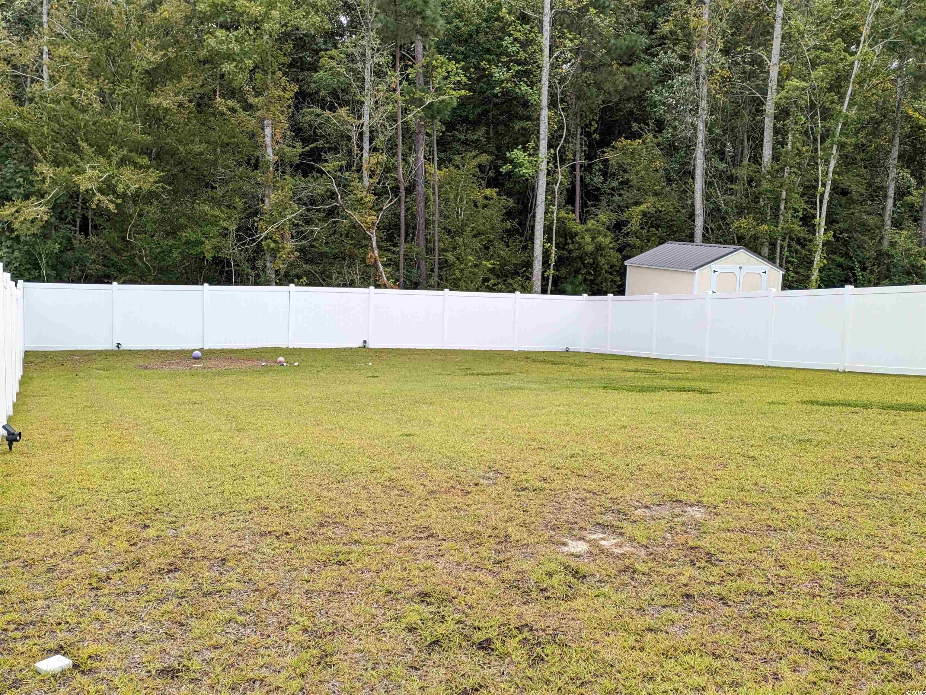 All the standard features of Meritage including Granite counters and Island, Crown Molding, LVP flooring, tile and carpet plus washer, dryer, side-by-side fridge, Tiled Backsplash, Water closet in Primary bath, 42" cabs, smooth ceilings, 2 inch blinds and sprayed attic insulation plus Fiberglas Privacy fence and ceiling fans in all bedrooms! Home backs up to woods! Buchanon floorplan (in docs). Priced below all builder specs and to-be-built builder homes! Short drive to Vereen Gardens and Cherry Grove Beach! Square footage is approximate and not guaranteed. Buyer responsible for verification.