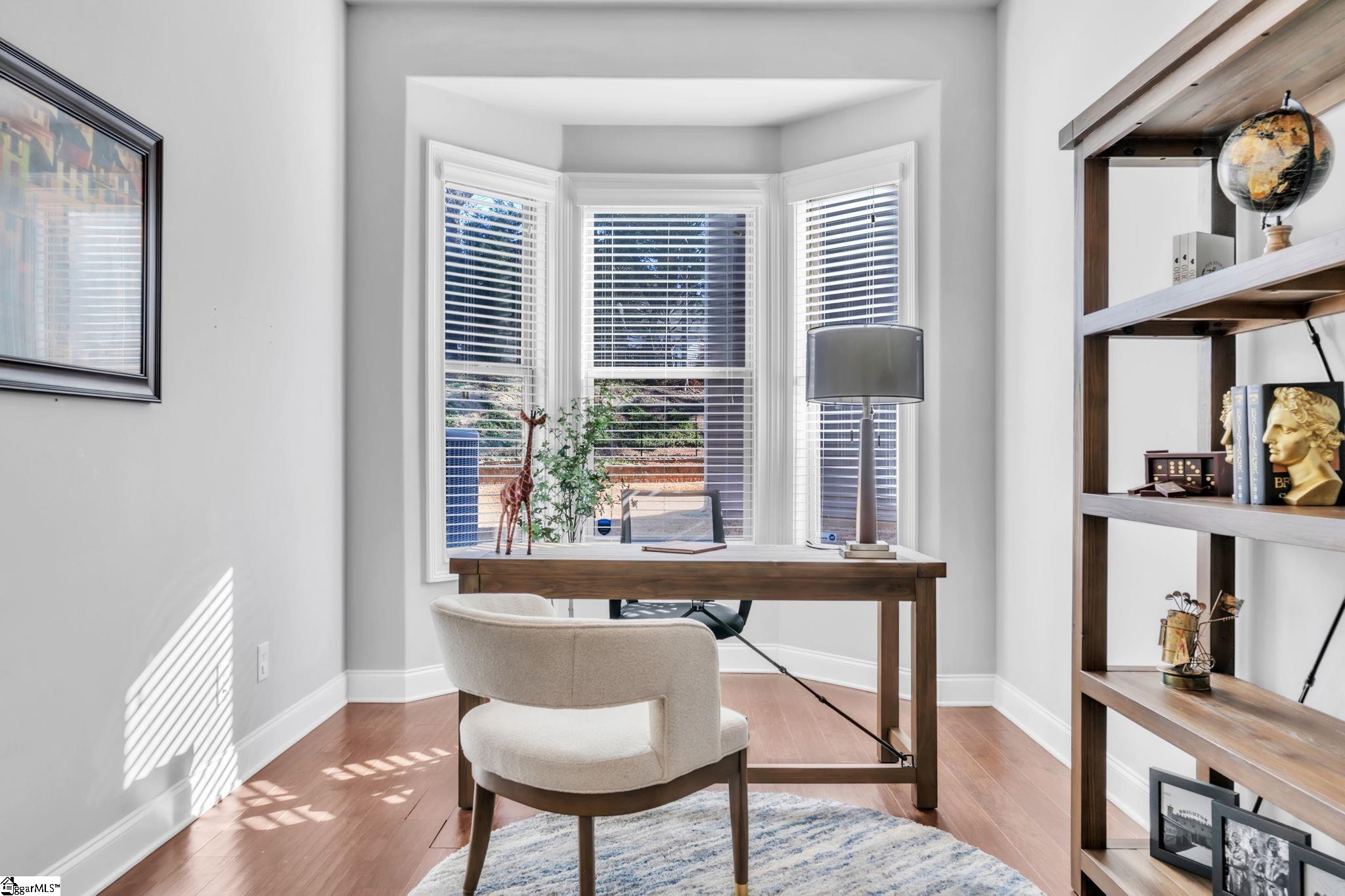Welcome to 18 Abington Hall Court, an executive home tucked into a peaceful cul-de-sac in the highly sought-after Abington Park community of Greer, South Carolina, just minutes from Riverside schools, GSP International Airport, Pelham Road, and Downtown Greer. Built in 2013 and offering approximately 5,090 heated square feet, this 5 bedroom, 4.5 bath traditional brick and stone residence sits on a level .41-acre lot and blends timeless architecture with modern comfort and efficiency. A grand double-door entry opens to a dramatic two-story foyer filled with natural light, leading to a formal dining room with tray ceiling, wainscoting, and butler’s pantry that connects seamlessly to the chef’s kitchen featuring a furniture-style marble island, six-burner gas cooktop, double wall ovens, convection oven, built-in microwave, stainless steel appliances, solid surface countertops, walk-in pantry, and abundant cabinetry. The spacious breakfast area flows into a soaring great room with built-in bookcases and a floor-to-ceiling stacked stone gas fireplace, creating the perfect setting for everyday living and entertaining, while a 14x10 patio extends the living space outdoors for grilling and relaxation. The main level also includes a private office with French doors, a generous guest suite with full bath ideal for multi-generational living or second primary use, a powder room, and a functional mudroom drop zone. Upstairs, the luxurious primary retreat offers a private sitting room with fireplace, tray ceiling, oversized walk-in closet, and spa-inspired bath with dual vanities and walk-in tile shower, while two additional bedrooms share a Jack-and-Jill bath and a fourth bedroom enjoys its own en-suite. Additional features include hardwood floors, 9+ foot ceilings, smooth ceilings, central vacuum system, two ultra high-efficiency HVAC units, gas water heater, insulated tilt-out windows, composition shingle roof, natural gas service, public water and sewer, and an attached two-car garage with paved concrete driveway. Located in the desirable Riverside High School district and close to shopping, dining, and major commuter routes, this home offers the ideal balance of space, style, and convenience in one of Greer’s most established neighborhoods.