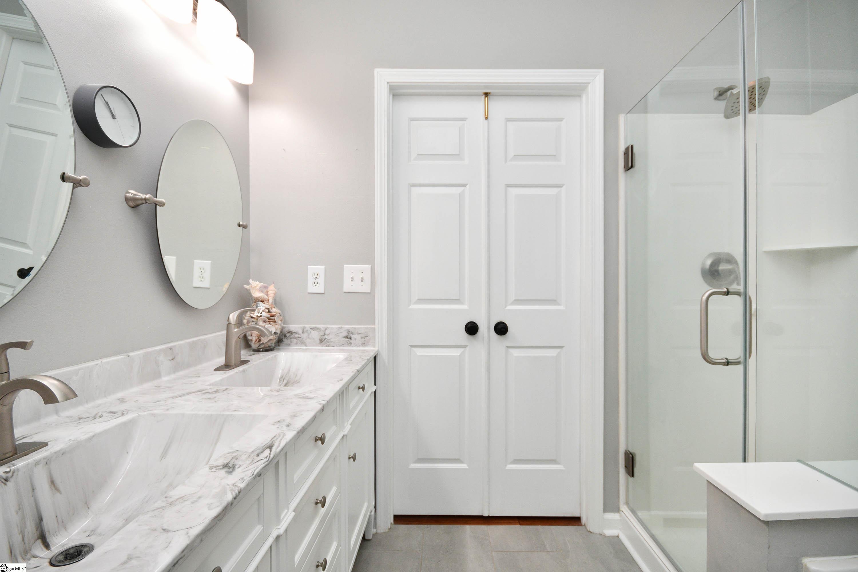 Could there be a better, more convenient location than Pelham Springs? In addition to its prime location, this beautifully maintained 3 bedroom, 2½ bath townhouse will wow you with its updates and easy floorplan. Main level features include open living and entertaining spaces, including an updated kitchen with Wolf range and stainless appliances, separate dining room and sunroom opening onto an extended patio. Main level primary bedroom with walk-in closet, double vanities and separate shower and garden tub. Upstairs are two additional bedrooms and a generous (13 x 10) walk-in storage room. Wood or tile flooring throughout, plantation shutters, epoxy floor in garage, many wonderful features. Minutes from downtown Greenville, Pleasantburg Drive and 385. Walkable to Publix Shopping Center and many nearby several restaurants and shops.