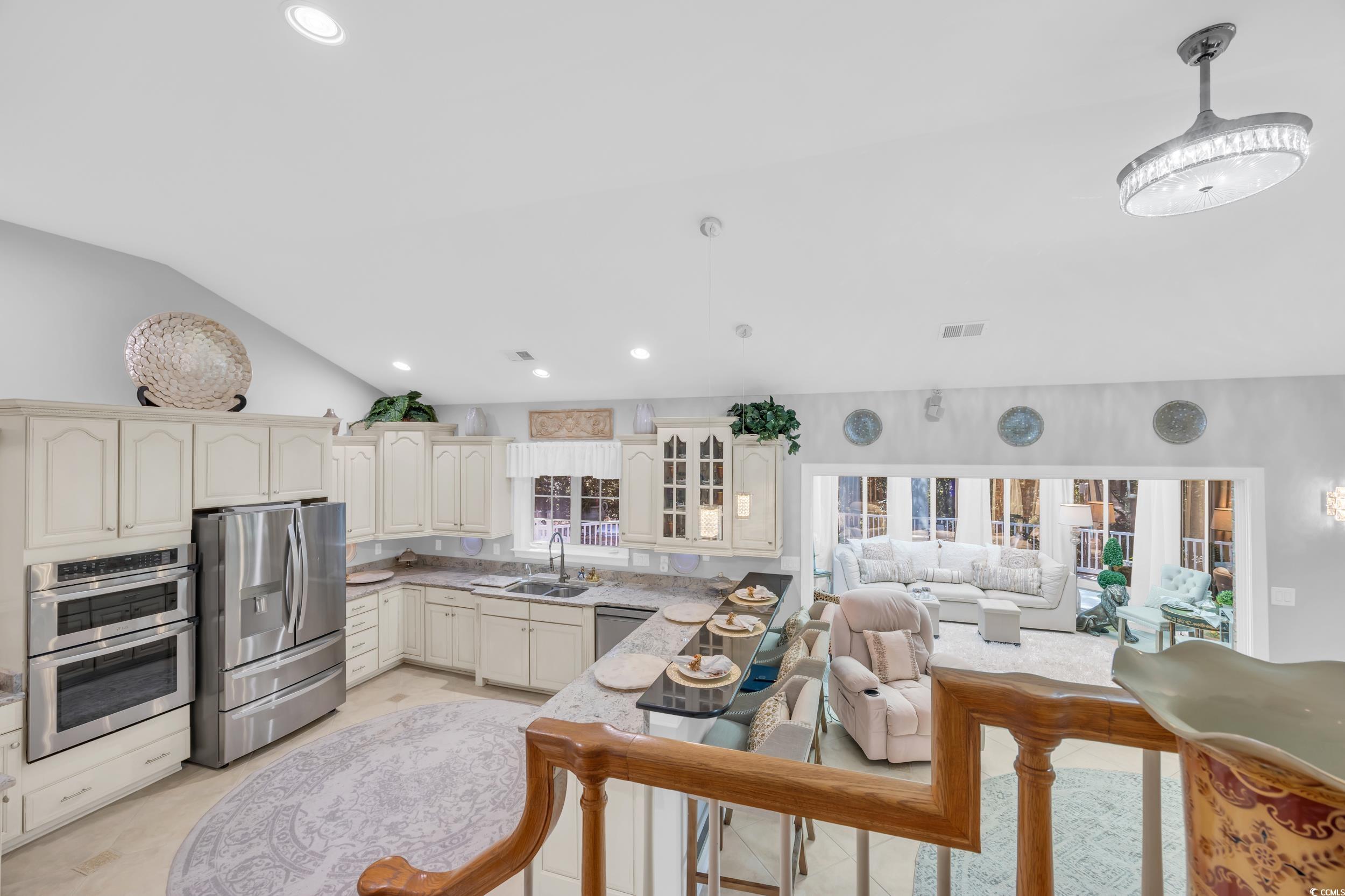 180 Highwood Circle is a distinguished custom residence located in the sought-after gated community of Highwood at Prince Creek - Murrells Inlet, South Carolina. Backing to a serene wooded conservation area on .81 acres, this beautifully maintained 3 Bedroom with Bonus Room, 3 Full Bath, 1 half bath Brick home with Stucco Accents offers timeless design, dramatic architecture, and luxurious living throughout. Curb appeal abounds with professional landscaping and an inlay brick medallion adding a refined centerpiece to the expansive driveway and Oversized Three-Car Garage. The double French doors Welcome you to a Grand Foyer with marble tile entry laid in a timeless diamond design and rich mahogany floors flow into an elegant Formal Dining Room enhanced by lighted double Trey Ceiling and refined millwork. The dramatic Formal Living Room boasts 18-foot soaring ceilings, a statement double-paddle Ceiling Fan, and a two-sided fireplace shared with the luxurious Primary Suite. French doors, stacked large windows, and architectural detailing bring in natural light which highlights the thoughtful Open Floor Plan. At the heart of the home is a Chef’s Kitchen equipped with new Stainless Steel appliances, Granite Countertops, ample Cabinetry with pull out drawers, a Walk-In Pantry with a convenient butler’s station—perfect for hosting or everyday ease. Just off the Kitchen is a welcoming Great Room or gathering area that flows seamlessly into the Four Seasons Sunroom, creating an open and connected space ideal for everyday living and entertaining. A turned wood staircase leads to a spacious Loft offering flexible use as a Home Office, studio, or Additional Living Space. The huge Primary Suite is a private retreat, featuring a generous Sitting Area, Wet Bar with beverage refrigerator, Fireplace, lighted Double Trey Ceiling, 15ft Custom Walk-In Closet with built-ins, and a Spa-Style En-Suite Bath. The beautiful cultured marble flows from the Double Sink Vanity to the glass enclosed Shower with Bench and the surround of the inviting jetted Soaking Tub. Guest bedrooms are positioned for privacy and comfort, each spacious and well-appointed with their own En-Suite Baths. Enjoy the outdoors year-round from the spectacular Four Seasons room with its soaring cathedral-style octagonal ceiling and tranquil views of the lush backyard. Step outside to a sprawling 1,800 sq ft deck, ideal for elegant gatherings or peaceful afternoons. Multiple fountainhead stone sitting areas along the garden-like backyard retreat and mature landscaping set the scene for unforgettable evenings under the stars. The 5 star Chef's Grill and all outside furniture remain, offering a turnkey setting for enjoying this tranquil garden oasis. Additional features include a new roof (2024) that accentuates the home’s bold rooflines and provides peace of mind. Designer chandelier ceiling fans and thoughtful modern lighting are carried throughout the home, enhancing every space with both style and function. Energy-saving thermal film tinting on the windows enhance efficiency and UV protection. 3 Mini Splits to convey, Le Bleu Water Filtration System, front and backyard Rainbird irrigation, new Maytag Washer & Dryer, and new interior paint. In the gated community of Highwood, residents enjoy exclusive access to an Amenity Center that includes a Clubhouse, Resort-Style Pool, Workout Room, and Tennis Courts. Located within the master-planned Prince Creek community, you’re just minutes from the TPC Golf Course, the Murrells Inlet Marsh Walk, shopping, fine dining, marinas and area beaches. Experience a rare blend of luxury, lifestyle, and location—schedule your private showing today.