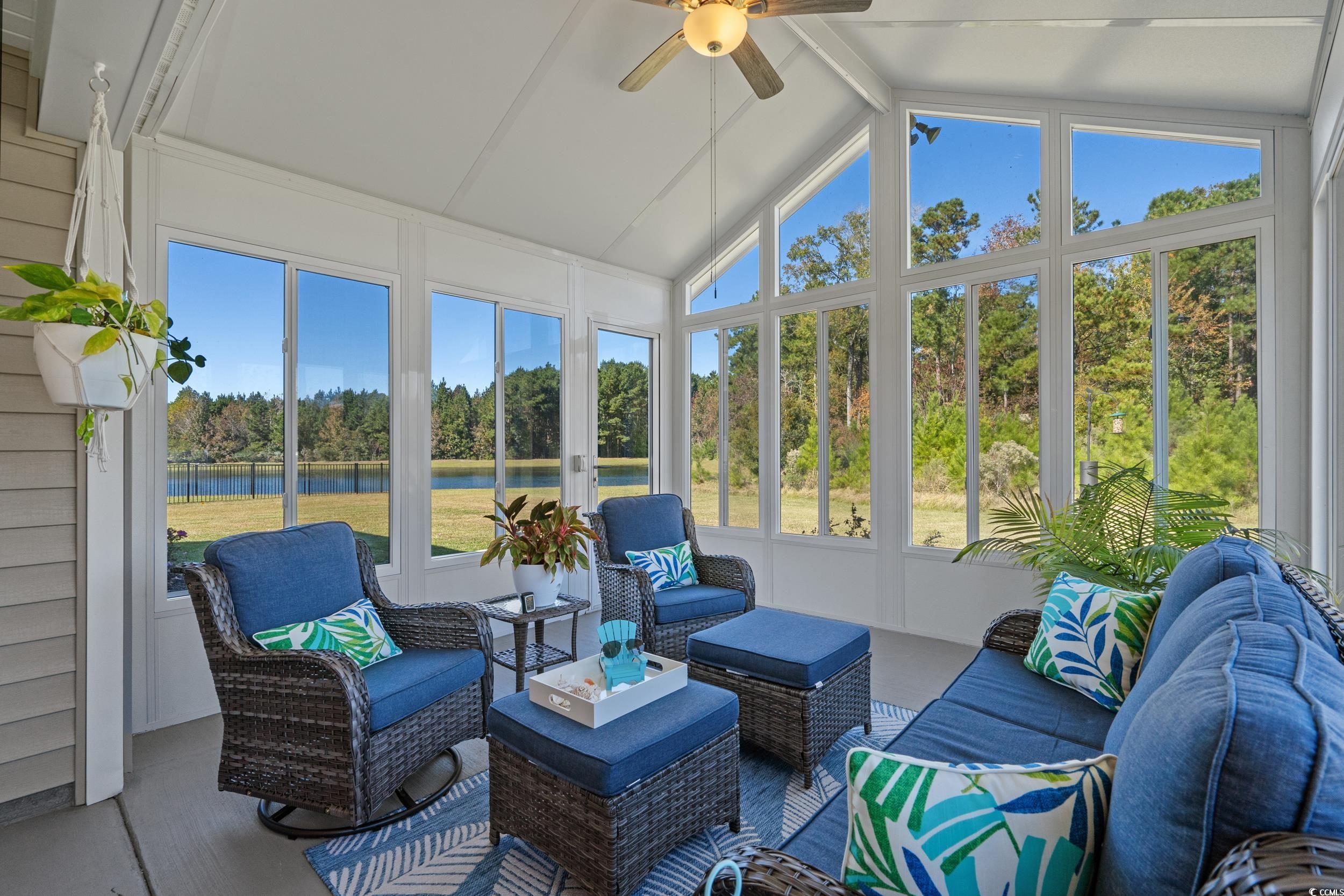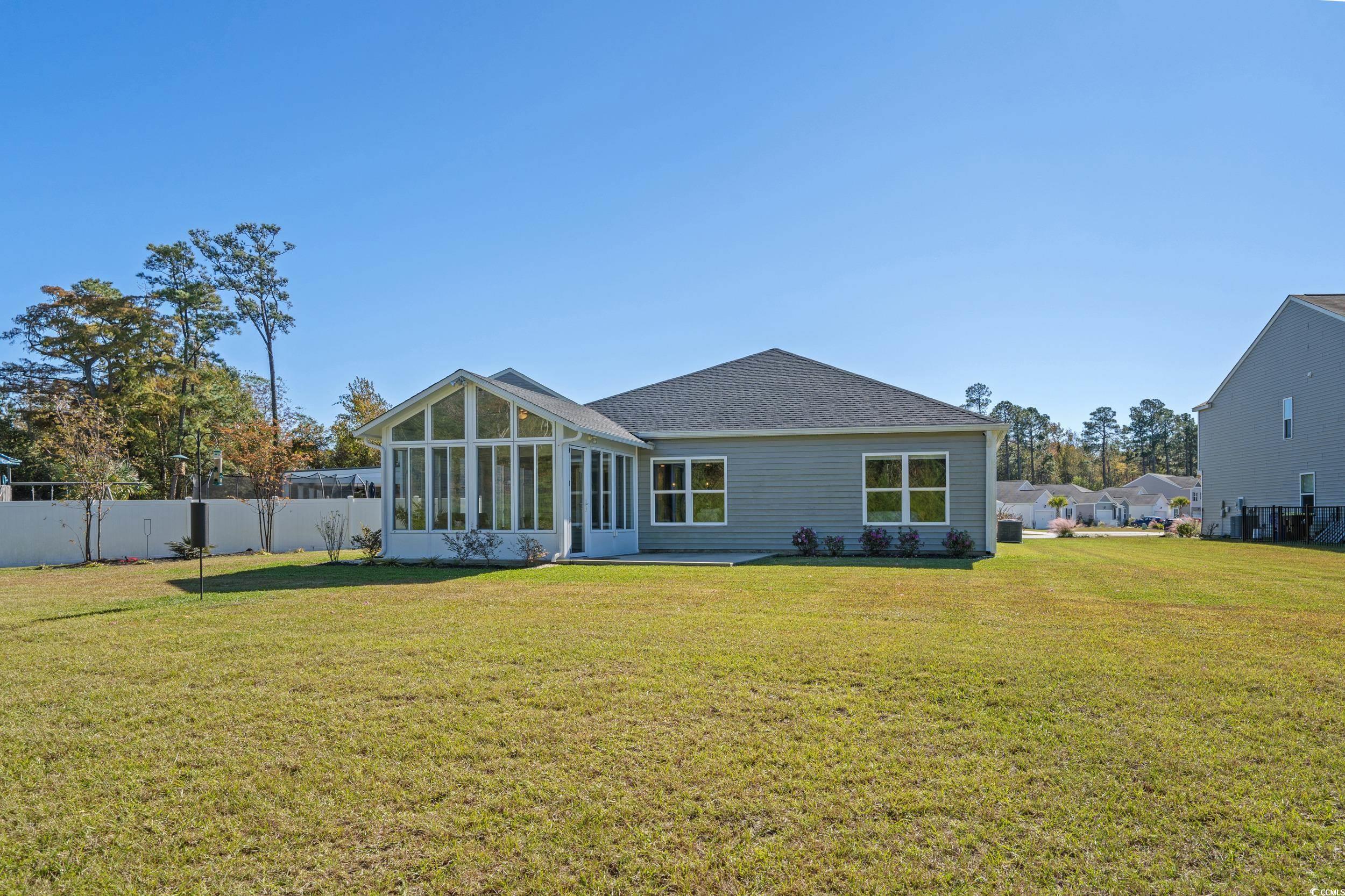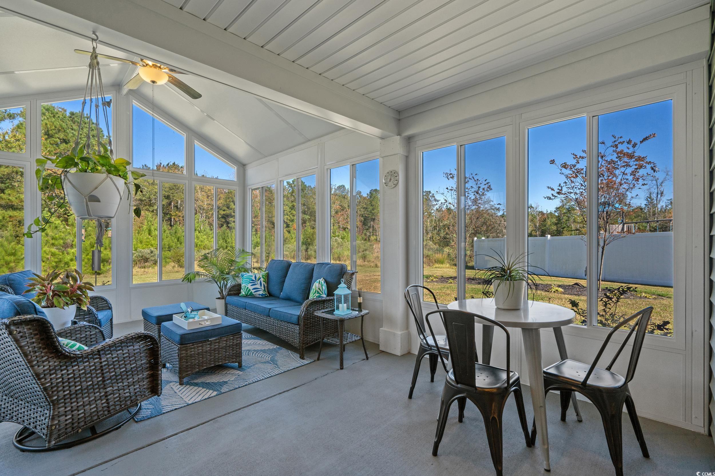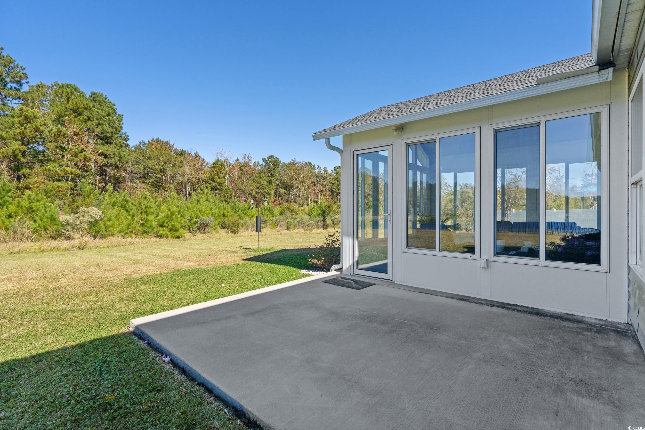 Welcome to 1803 Promise Place, a beautifully maintained home in the sought-after Harmony @ St. James community. This is the very popular Cali floor plan. Perfectly situated on one of the largest lots in the neighborhood at the end of a quiet cul-de-sac, this property offers rare privacy with tranquil views of the wooded area and pond behind the home. Step inside to discover a thoughtfully designed layout that combines comfort and style. The newly added sunroom adds 245 square feet of versatile living space — the perfect place to relax and enjoy the peaceful natural setting year-round. NOTE that all sunroom furniture to convey! The home features plantation shutters, Wi-Fi-enabled ceiling fans and lighting, and a remote-controlled shade in the primary suite for modern convenience. Additional upgrades include a CPI security system with cameras, storm door, LeafGuard gutters, Rain Bird 5-zone irrigation system, and a new roof for total peace of mind. The HVAC system has been enhanced with a UV light air purifier and larger filter system for cleaner air, and a mini-split keeps the sunroom perfectly comfortable year-round. Fresh landscaping with new trees, rose bushes, and flowerbeds adds to the home’s curb appeal. A bonded termite prevention system was recently installed for added protection. Enjoy the privacy, space, and upgrades that make this home stand out in Harmony @ St. James — just minutes from shopping, dining, and the beautiful beaches of Myrtle Beach.