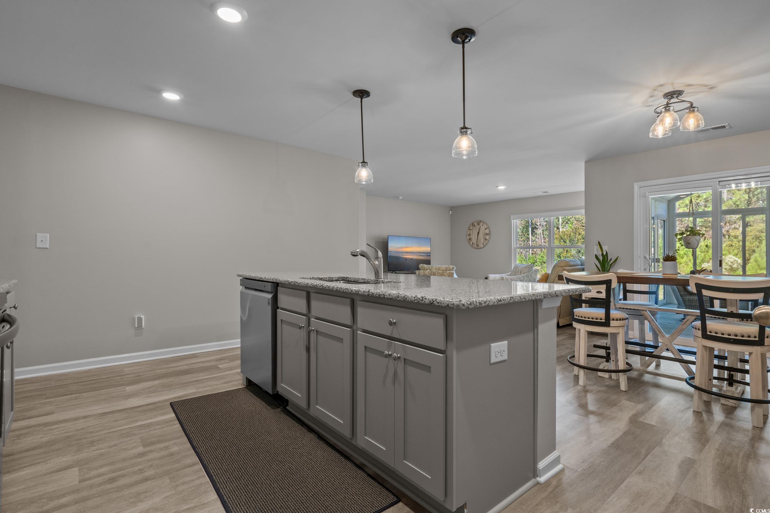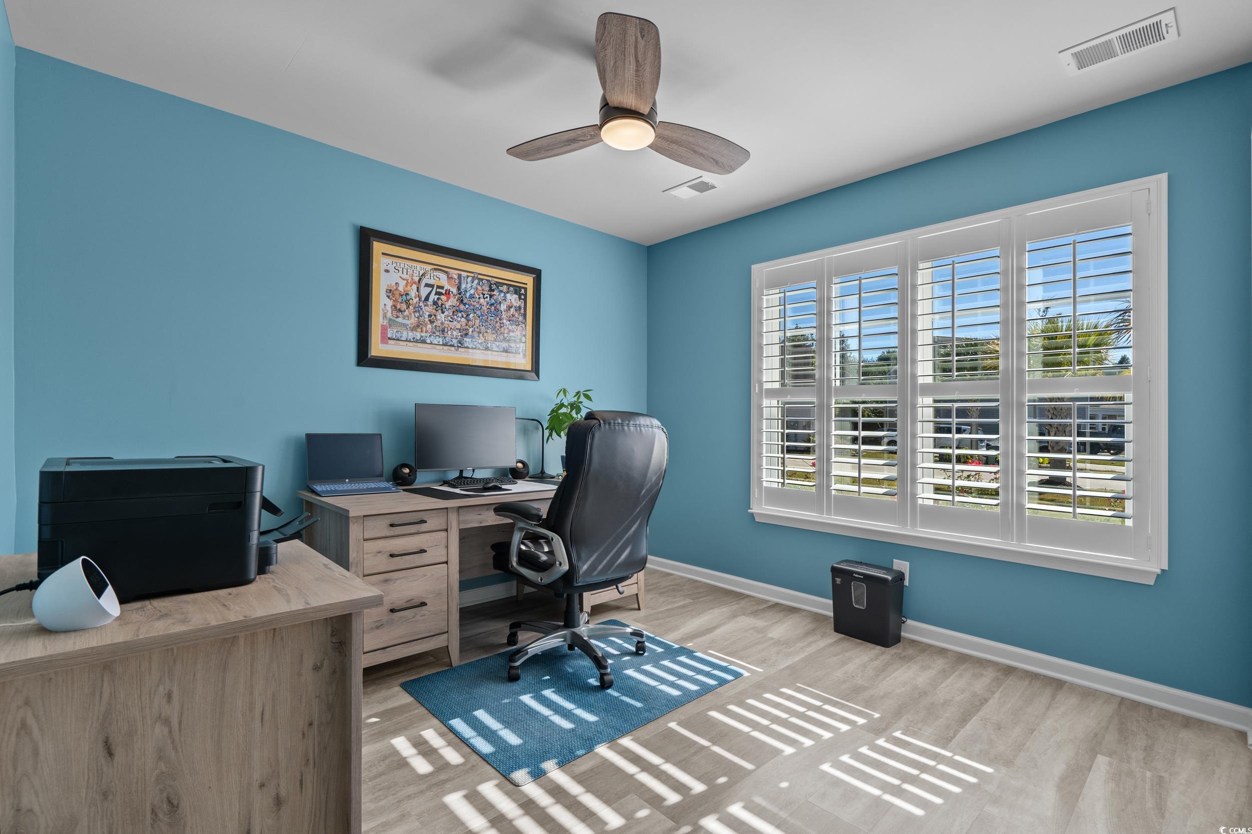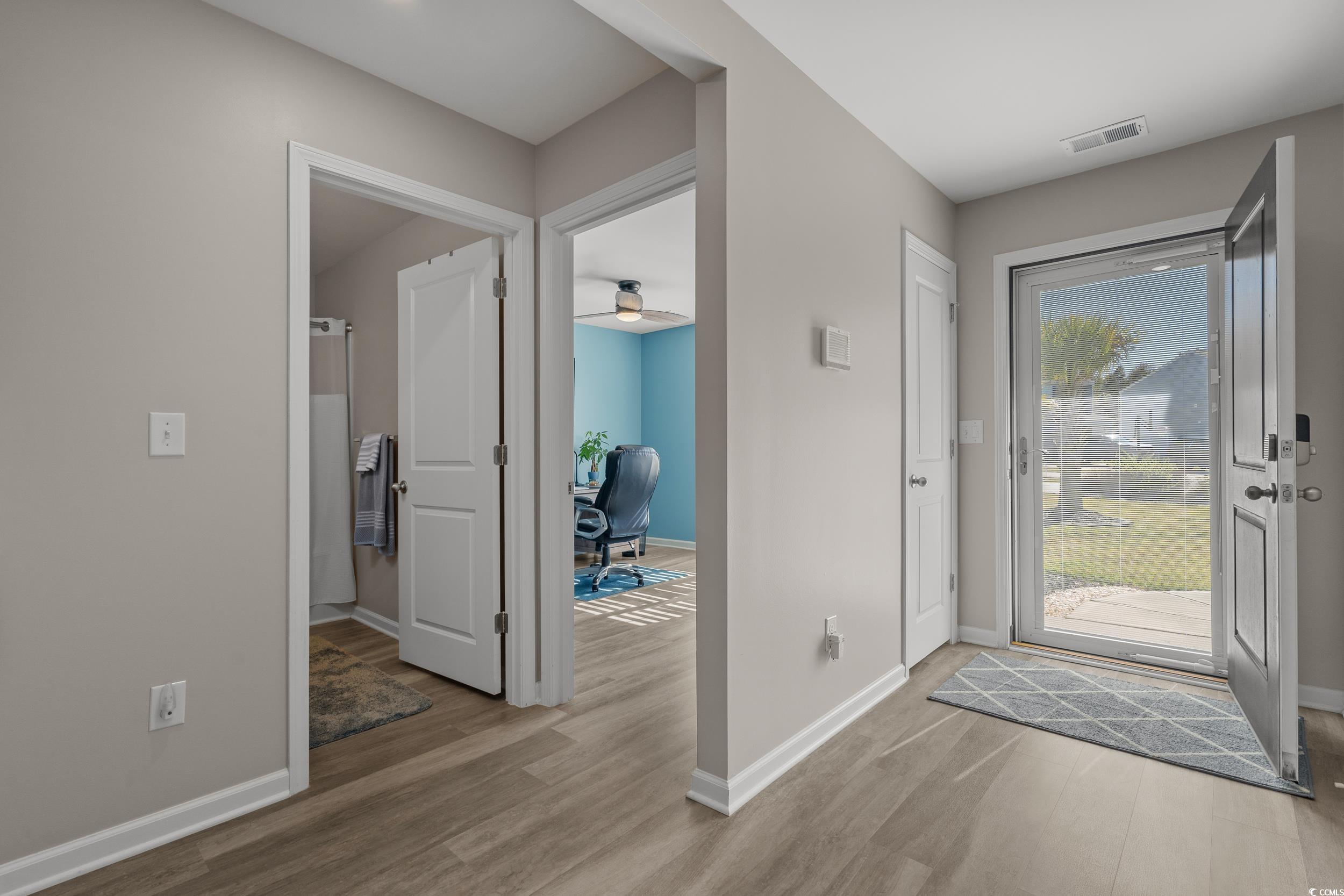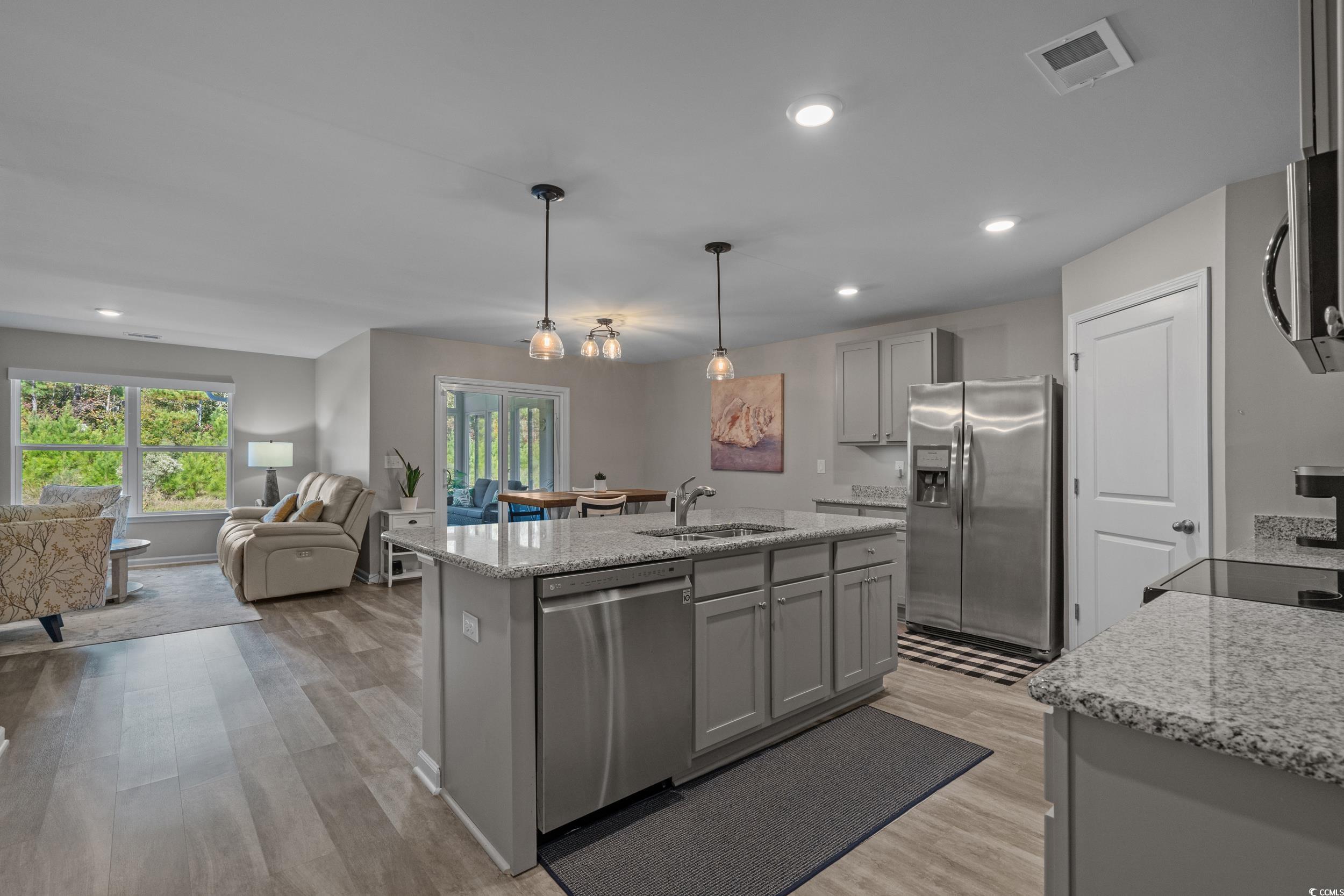 Welcome to 1803 Promise Place, a beautifully maintained home in the sought-after Harmony @ St. James community. This is the very popular Cali floor plan. Perfectly situated on one of the largest lots in the neighborhood at the end of a quiet cul-de-sac, this property offers rare privacy with tranquil views of the wooded area and pond behind the home. Step inside to discover a thoughtfully designed layout that combines comfort and style. The newly added sunroom adds 245 square feet of versatile living space — the perfect place to relax and enjoy the peaceful natural setting year-round. NOTE that all sunroom furniture to convey! The home features plantation shutters, Wi-Fi-enabled ceiling fans and lighting, and a remote-controlled shade in the primary suite for modern convenience. Additional upgrades include a CPI security system with cameras, storm door, LeafGuard gutters, Rain Bird 5-zone irrigation system, and a new roof for total peace of mind. The HVAC system has been enhanced with a UV light air purifier and larger filter system for cleaner air, and a mini-split keeps the sunroom perfectly comfortable year-round. Fresh landscaping with new trees, rose bushes, and flowerbeds adds to the home’s curb appeal. A bonded termite prevention system was recently installed for added protection. Enjoy the privacy, space, and upgrades that make this home stand out in Harmony @ St. James — just minutes from shopping, dining, and the beautiful beaches of Myrtle Beach.