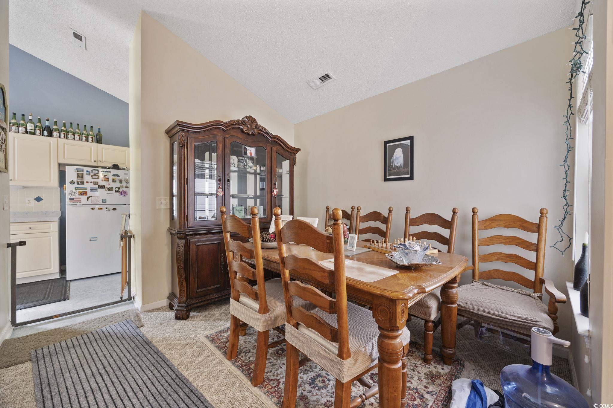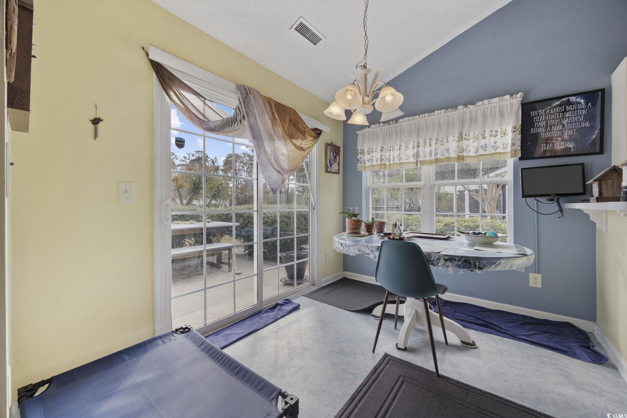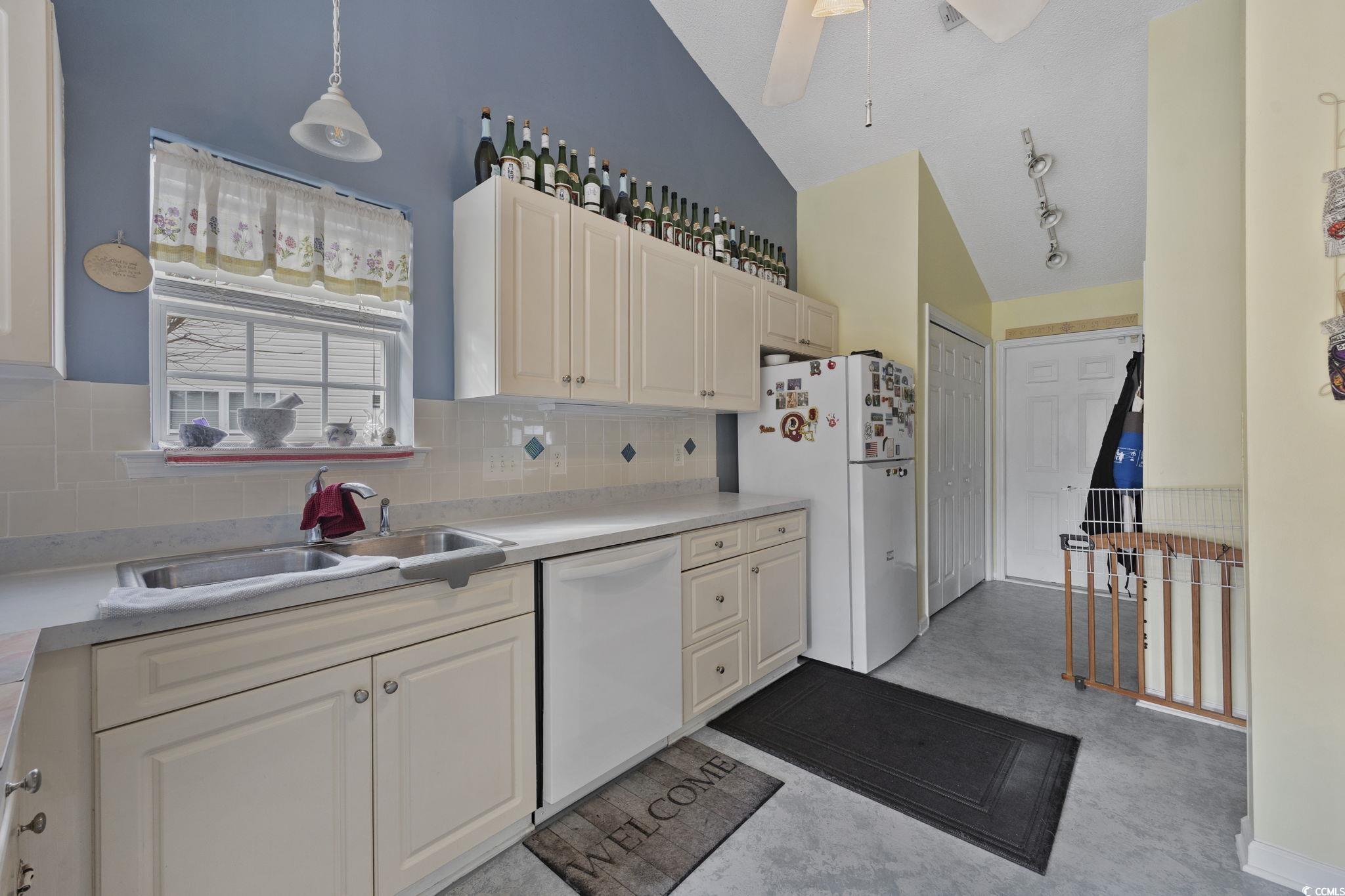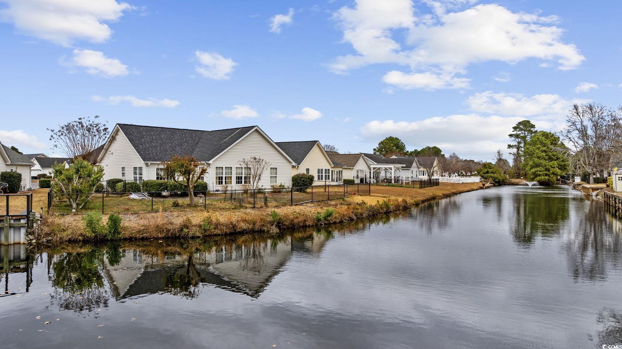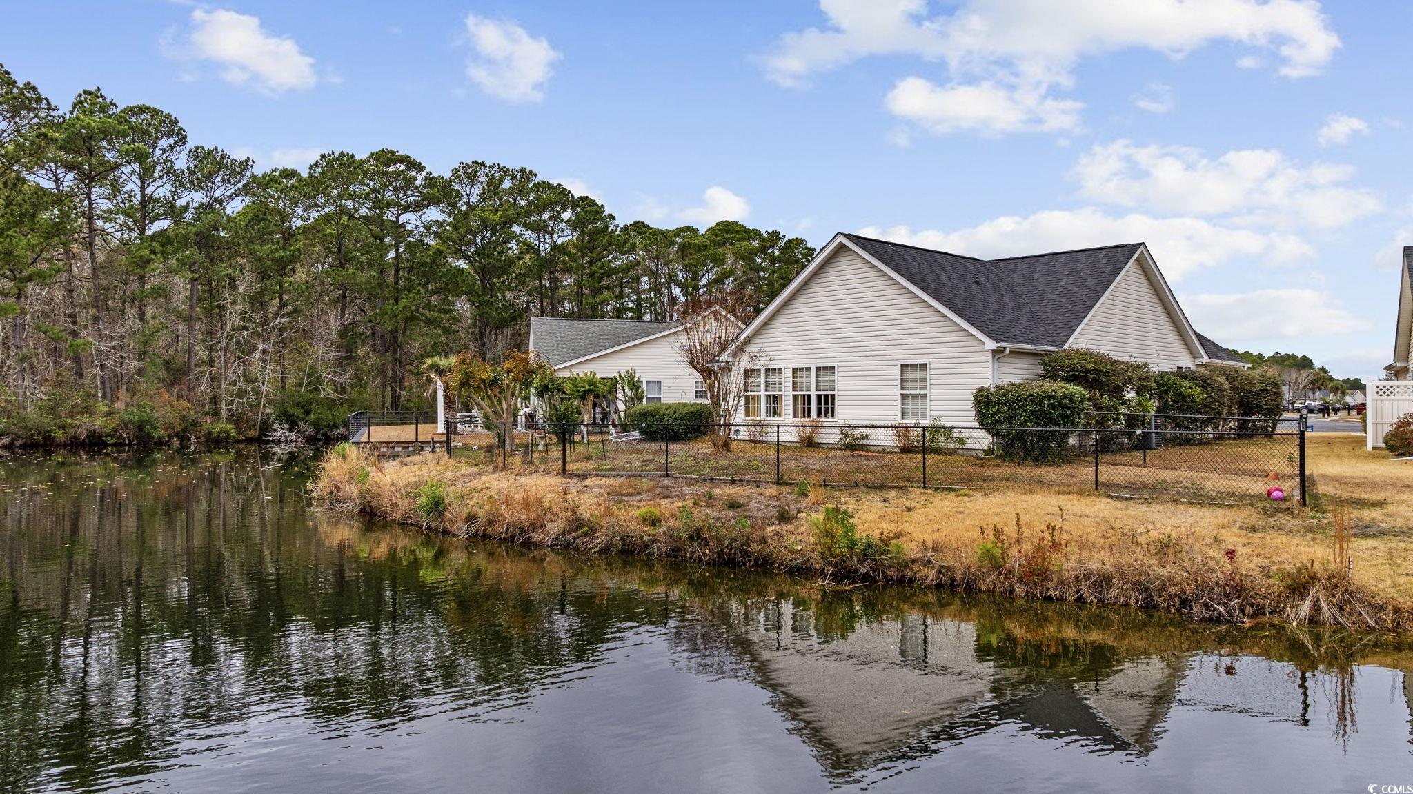 Welcome home to this inviting 4-bedroom, 2-bath ranch tucked inside the peaceful community of Mallard Landing Village. From the moment you step inside, vaulted ceilings in the living room and kitchen create an airy, open feel, while natural light pours in, setting the tone for relaxed mornings and cozy evenings. The open-concept layout connects the living space to a dedicated dining area and a thoughtfully designed kitchen featuring abundant cabinetry and a separate breakfast nook, perfect for slow weekend coffee or casual family meals. A convenient laundry closet with washer and dryer included, along with window treatments throughout, makes moving in seamless from day one. The primary suite is a private retreat with its own vaulted ceilings, walk in closet, and an ensuite bath complete with a vanity and tub/shower combo. Two additional bedrooms and a separate full bath offer flexible space for guests, family, or a home office. Step outside to a fenced backyard where a concrete patio overlooks a tranquil pond, an ideal setting for morning reflections or quiet moments to unwind. An attached two-car garage adds everyday convenience, while the home’s location places you close to shopping, dining, and just 2 miles from the Surfside Pier. Schedule your showing today!