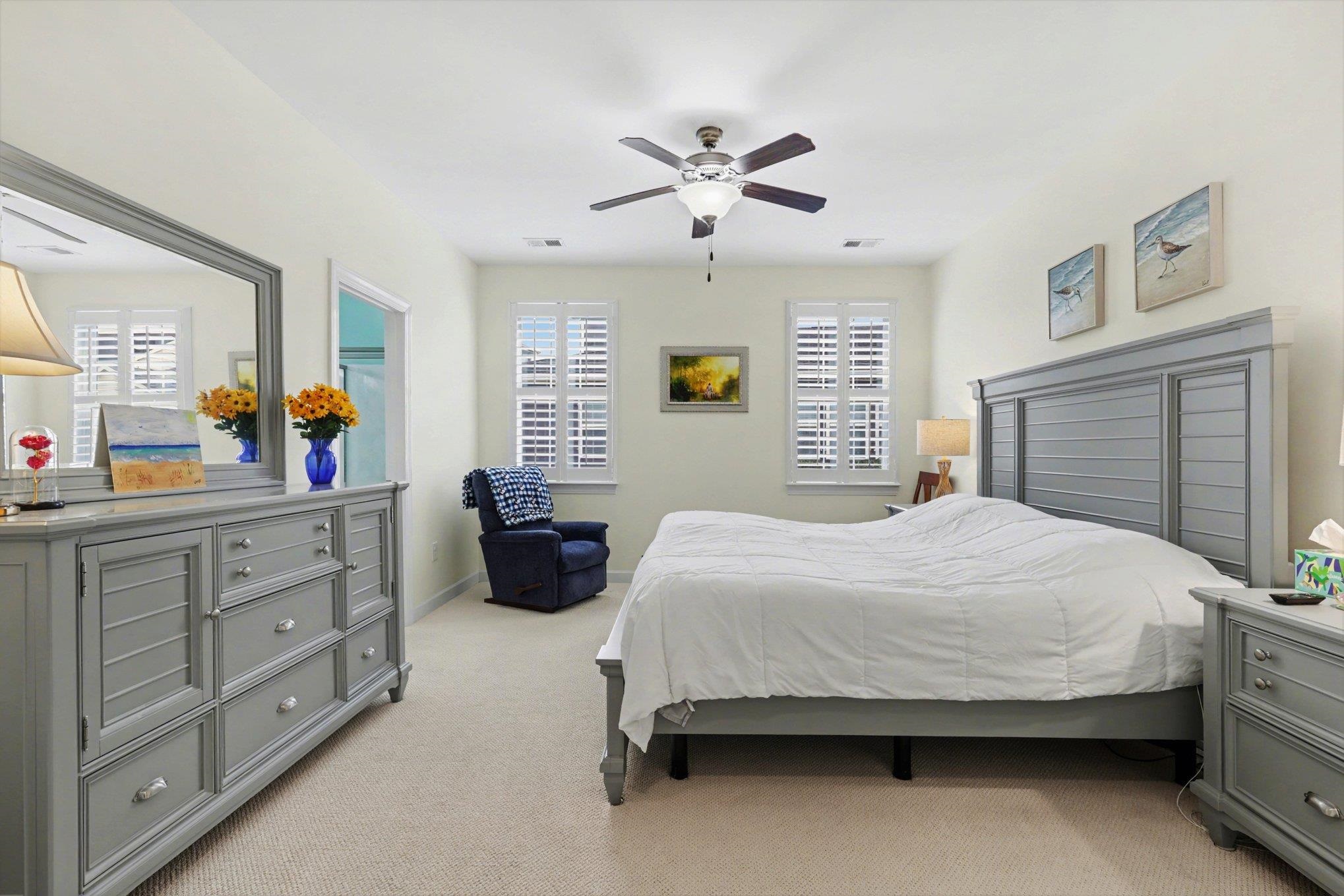 Welcome to your new home in the highly sought after Emmens Preserve community of Market Common! This 3 bedroom, 3 full bath home starts with a charming front porch with views of a serene pond, along with a spacious shared driveway leading to an attached two car garage with durable epoxy flooring and overhead storage racks, providing an organized storage solution. Inside, you’ll find an open concept main living area with LVP flooring that flows seamlessly into a generous kitchen complete with stainless steel appliances and quartz countertops. The kitchen island provides both storage and seating for two, perfect for casual dining or serving space while entertaining. The dining area is conveniently located just off the kitchen for effortless hosting, leading to an attached screened-in lanai, perfect for relaxing mornings or peaceful evenings outdoors. The inviting and comfortable living room is enhanced by a gas fireplace and plenty of space for enjoyment. The first floor primary suite features an ensuite bathroom with a double sink vanity, private water closet, garden tub, separate walk-in shower, and a large walk in closet. Also on the main level, you’ll find a convenient guest bedroom, full bath, and laundry room. Upstairs, a versatile bedroom or media room with its own full bathroom includes a built-in Murphy bed, offering flexibility and smart use of space. This home is loaded with valuable upgrades, including fully paid off solar panels that convey with the property, delivering energy efficiency and long term savings along with a whole house saltwater filtration system that enhances water quality throughout, providing cleaner, softer water at every tap. Located just a short golf cart ride from premier shopping, dining, and entertainment, with scenic walking paths, a community putting green, a large pool with children’s water features, a playground, multiple picnic areas, and the beautiful shoreline just minutes away. Don’t miss your opportunity to experience everything this exceptional home and vibrant community has to offer. Schedule your private showing today!