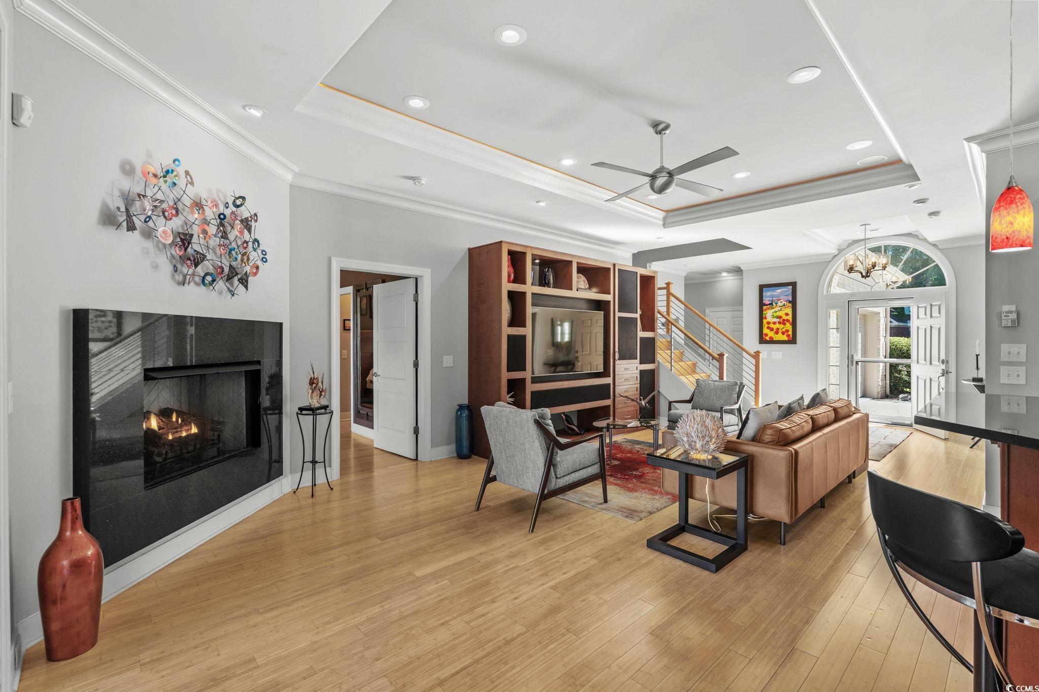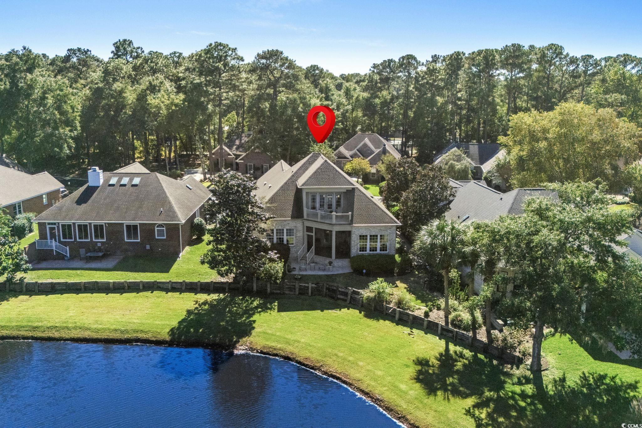 This all-brick custom-built home in the gated community of Heritage Plantation is move-in ready and filled with classic Lowcountry charm. Featuring 3 bedrooms, 3.5 baths, and a spectacular and peaceful view of both water and golf from the screened porch and upstairs balcony, this home was designed for comfort and enjoyment. The main living area showcases hardwood floors, detailed moldings, custom built-ins, and a corner fireplace. The kitchen is a cook’s dream, offering a built-in wine cooler, prep sink, and plenty of workspace for entertaining family and friends. Each bedroom includes its own private bath, providing privacy and convenience for everyone. The spacious primary suite offers a stunning view, a large bath with separate vanities, a soaking tub, a walk-in shower, and his and hers closets. The laundry room is located just off the master bath for easy access. Upstairs, a large bonus room with built-in file cabinets, a hallway library, and a third bedroom with coffered ceilings and built-ins complete the thoughtful design. Additional highlights include hurricane impact windows, handicap-friendly features, and walk-in storage. Residents of Heritage Plantation enjoy exceptional amenities including an Owners’ Clubhouse, championship golf course, private marina, tennis and pickleball courts, fitness center, and pool. This home blends refined design, everyday comfort, and the scenic beauty of Pawleys Island into one remarkable property.
