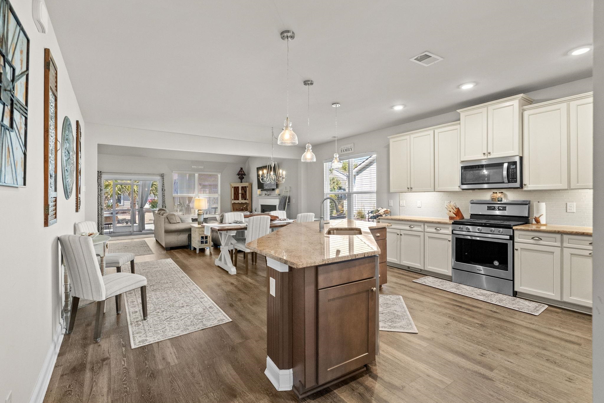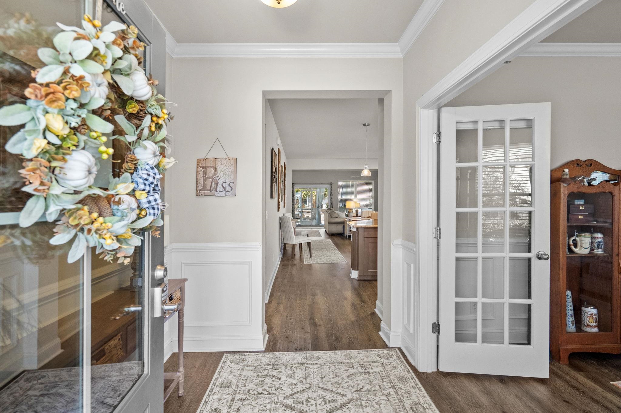 1828 Parish Way at Park Place inside Market Common welcomes you home! Coastal convenience meets refined comfort in this beautifully appointed 3BR, 2BA residence showcasing luxury upgrades and luxury vinyl plank flooring throughout. Located in a walkable, golf-cart-friendly, all-natural-gas community, this home offers an effortless blend of style, function, and lifestyle. An inviting entry foyer introduces a private office or den framed by glass French doors and decorative wainscoting — this elegant and versatile space is ideal for working from home or unwinding with a good book. Beyond the thoughtfully designed split floor plan, an open inviting living area centered around a warm gas fireplace is enhanced by custom lighting and built-in surround sound, creating the perfect atmosphere for both everyday living and entertaining. The kitchen is designed to inspire, offering abundant cabinetry, a generous pantry, all graced by Shelf Genie organization that will delight the home chef. Built for cooking and entertaining, this open kitchen area with island offering seating space is a functional yet an inviting centerpiece to the home. The large primary suite serves as a peaceful retreat, featuring a spacious custom walk-in wardrobe and a spa-inspired bath with a zero-entry shower and rainfall head presents a luxurious start or end to your day. A double vanity with custom cabinetry provides extra storage space for everyday essentials. Two spacious guest bedrooms are positioned on the opposite side of the home and share a full bath with double-sink vanity. Outdoor living is equally impressive. A screened lanai with tile flooring and double fan light fixture overlooks the extended epoxy-finished patio, offering multiple areas to gather, grill, relax, or dine alfresco. Professional landscaping with full irrigation, decorative palms, and custom curbscape detailing enhances the home’s polished curb appeal. Inside, the laundry room combines convenience and innovation with a GE Profile smart all-in-one washer/dryer and utility sink. The garage continues the theme of thoughtful upgrades with epoxy flooring, built-in shelving, pull-down attic access, and ample storage. Additional upgrades include a whole-house surge protector, UV air purification integrated into the HVAC system, and 3M protective window film throughout. Pride of ownership is reflected in an active HVAC service agreement and pest/termite bond already in place. Residents of Park Place enjoy access to the community pool and an unbeatable location just moments from Market Common’s shops and restaurants, Myrtle Beach State Park, Springmaid Pier, and beautiful beaches — all approximately one mile away and easily accessible by golf cart. This home offers not just a residence, but a lifestyle defined by comfort, quality, and active coastal living. Be sure to schedule your showing today.