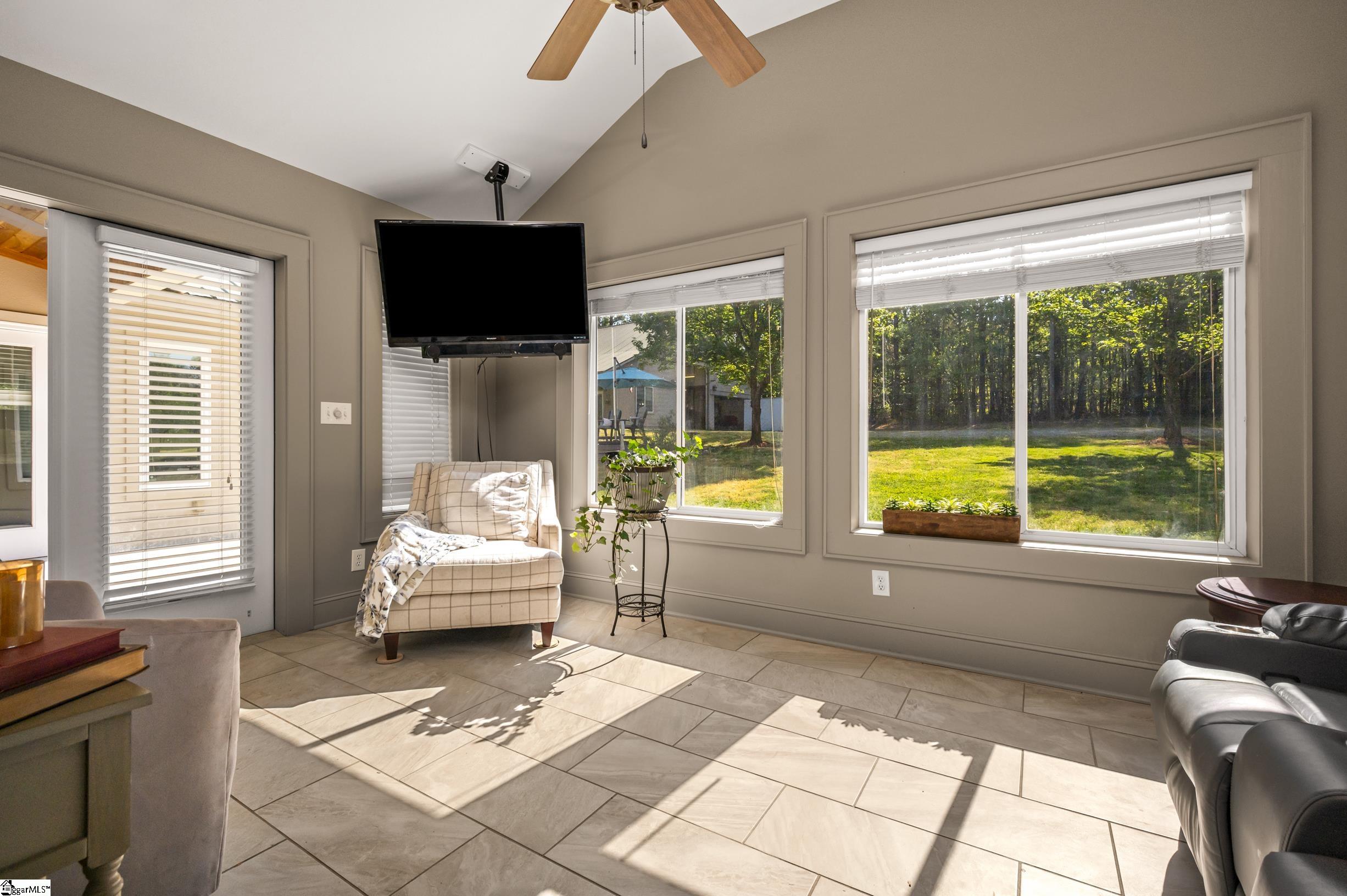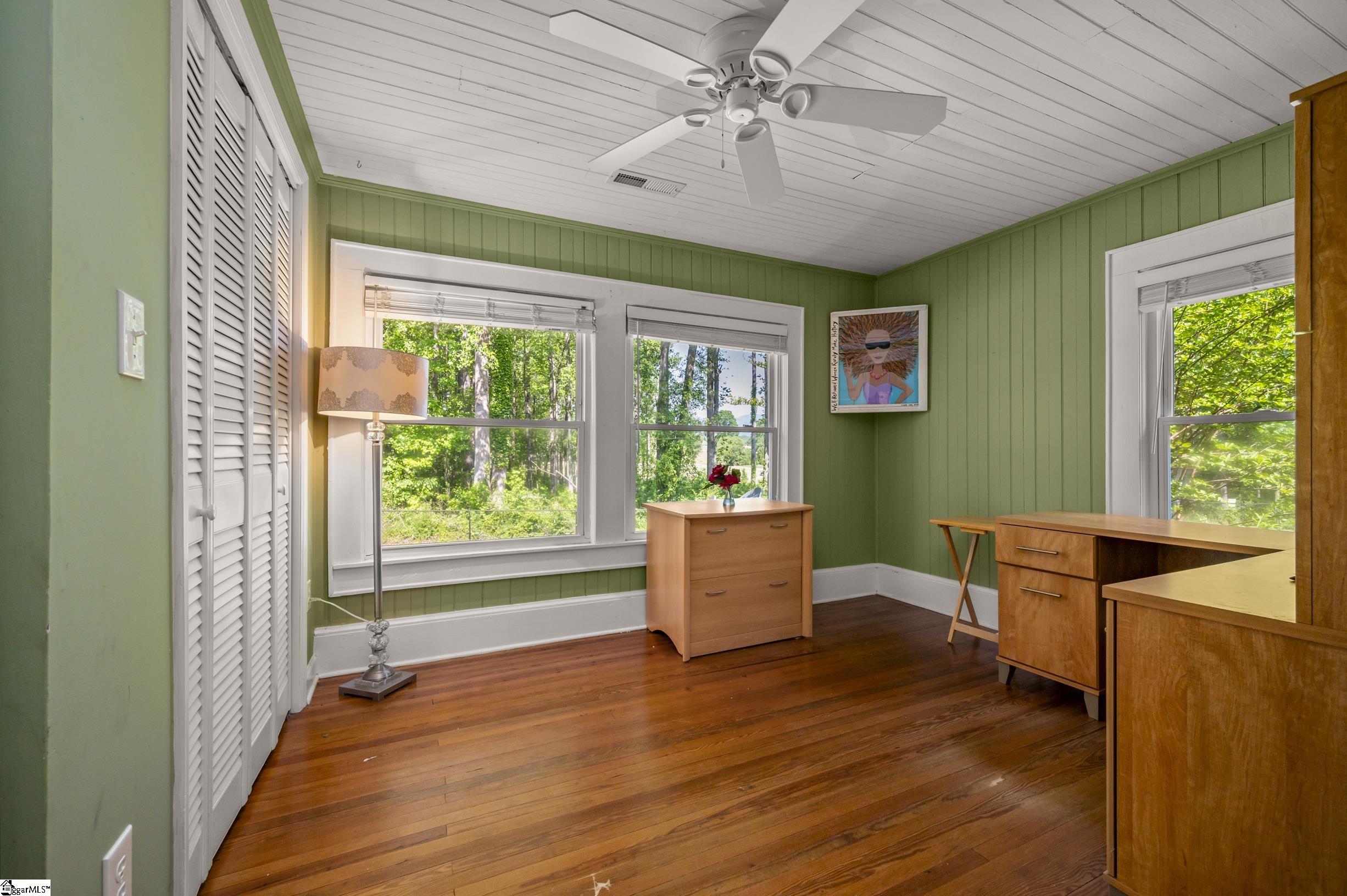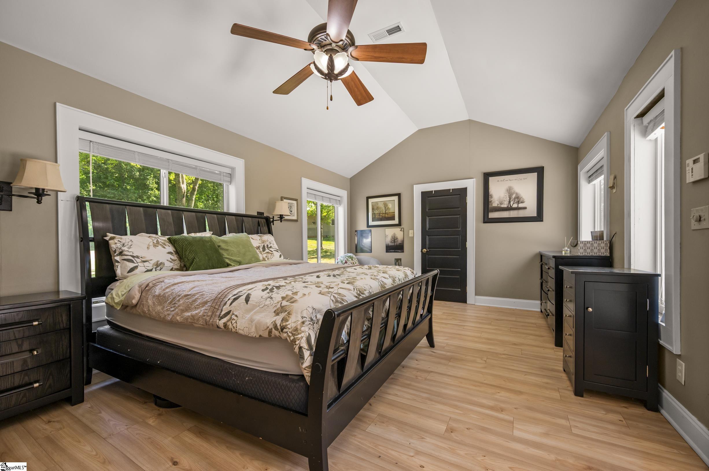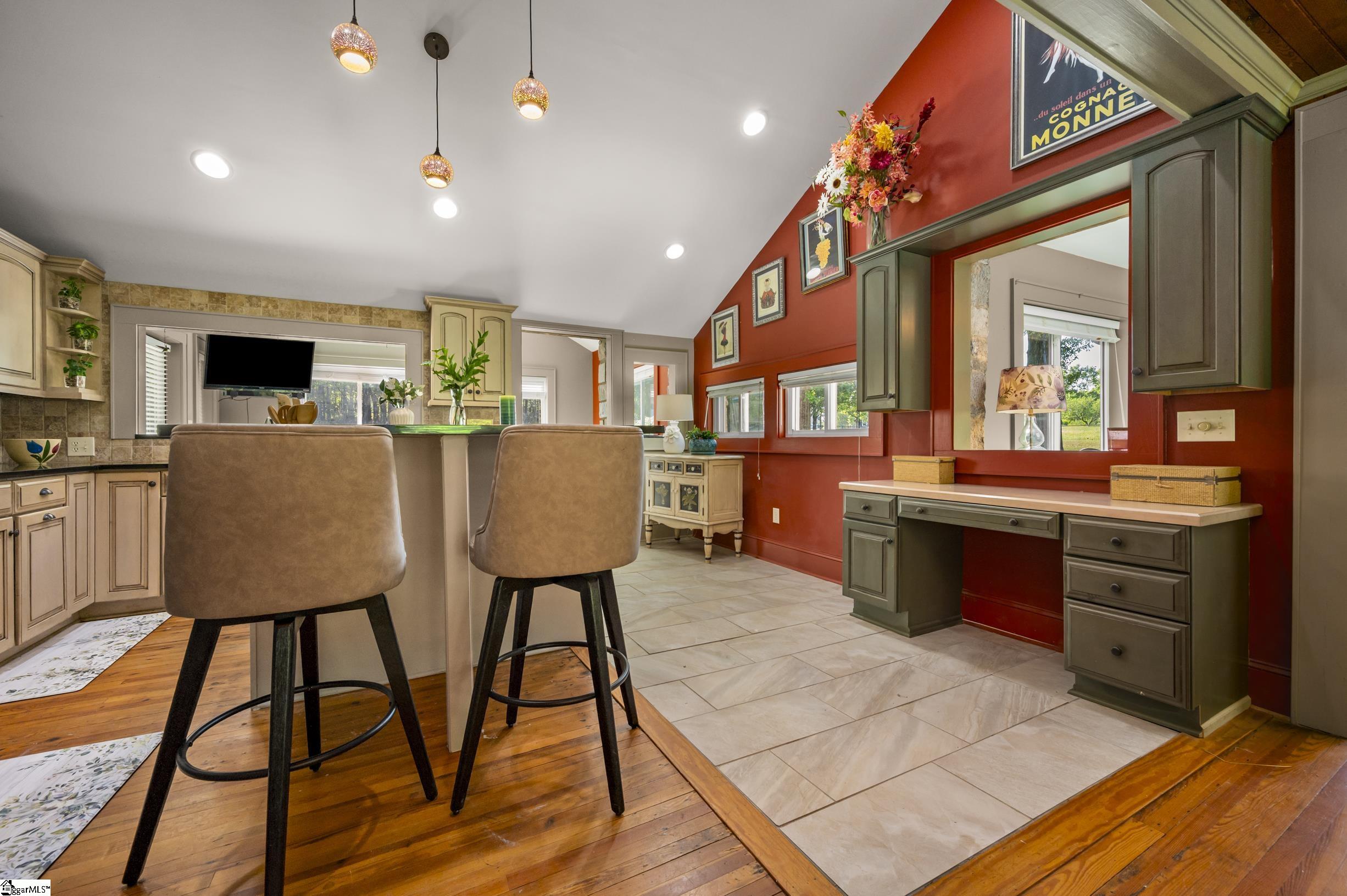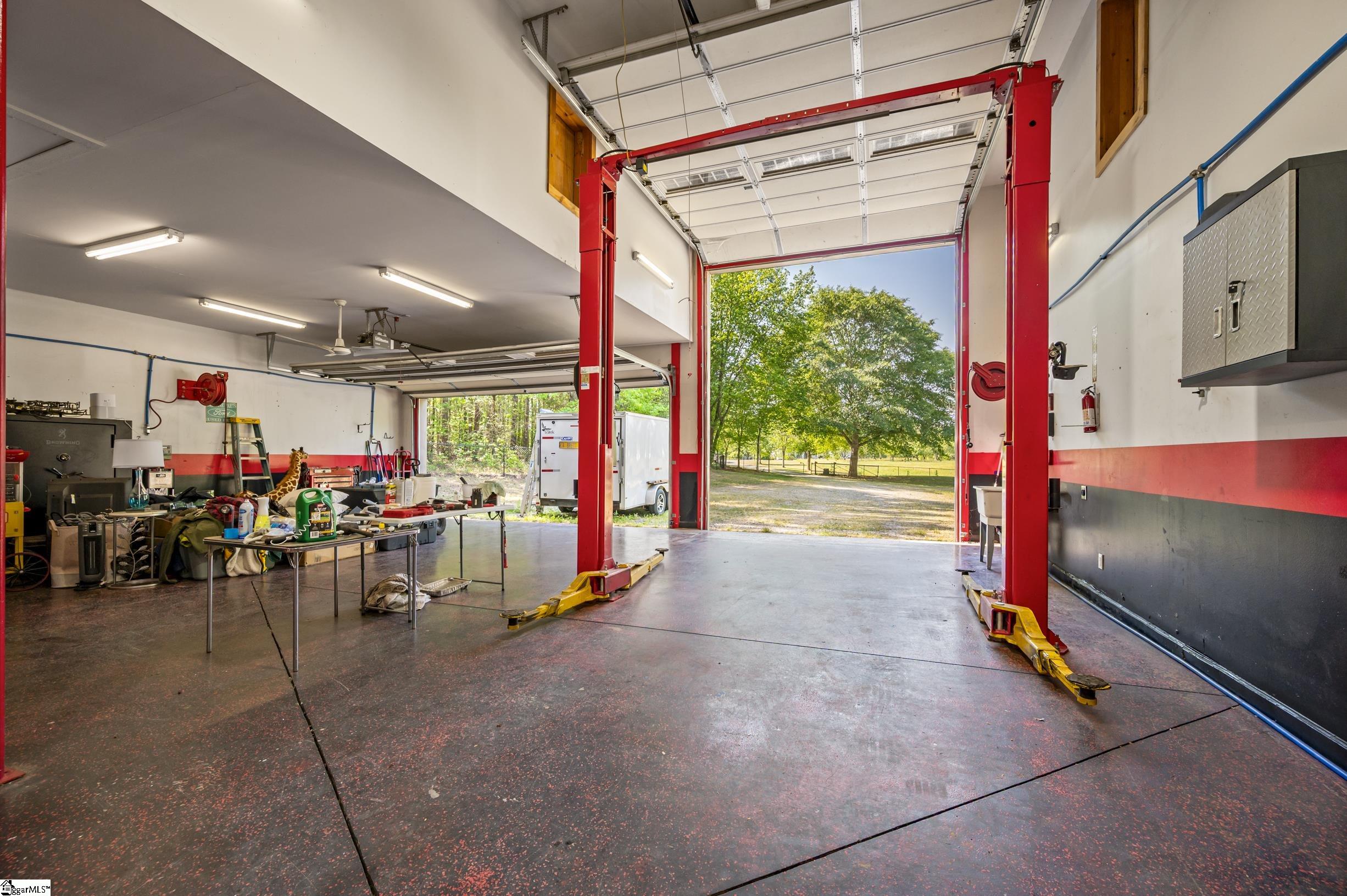 Private Campobello retreat on approximately 5.5 acres beside Links O’Tryon golf course offering a rare combination of character, flexibility, privacy and utility. Tucked away at the end of a quiet, country road, the renovated main home blends original charm with thoughtful updates including preserved granite walls from the original 1947 structure, bead board walls and ceilings, hardwood and flagstone floors, a gas log fireplace, updated baths with frameless tile showers, a designer kitchen with granite counters, custom cabinet features and an easy flow into the main living spaces. A major 2007 refurbishment with a family room, larger primary suite (with ensuite), walk-in closet, porch, pub/TV room, creating a lay-out that feels warm, inviting and highly livable. Outdoor leaving is equally appealing with a large deck, broad lawn, mature trees, golf course frontage, and spectacular mountain views that give the property a true Foothills feel. There is a detached 2-car garage, but what truly sets this property apart is the 2008 out-building designed for far more than an ordinary garage space. The approximately 2600-square-foot barn/garage includes a one bedroom apartment with full kitchen and bath, a heated and cooled exercise room or office, loft storage, and over-sized space suited for a 45-foot RV with a 14-foot overhead door, 30-and 50-amp service, and sewer hookup. All features that make it especially compelling for automotive, hobby, or business-minded buyers. The facility includes a car/truck lift, air compressor, and installed air lines, giving it strong appeal for collectors, RV owners, trades people or anyone seeking serious workshop or auto-body-shop potential. Addition practical benefits include no HOA, high-tech security coverage for home, apartment and shop, underground utilities, public water, and septic service. A convenient location near Landrum, Tryon, Greenville, Spartanburg, Hendersonville and the North Caroline line. With acreage, guest quarters, RV storage, workshop functionality, and a beautifully updated home in a peaceful golf course setting, this is a uniquely versatile foot hills property that is difficult to duplicate.