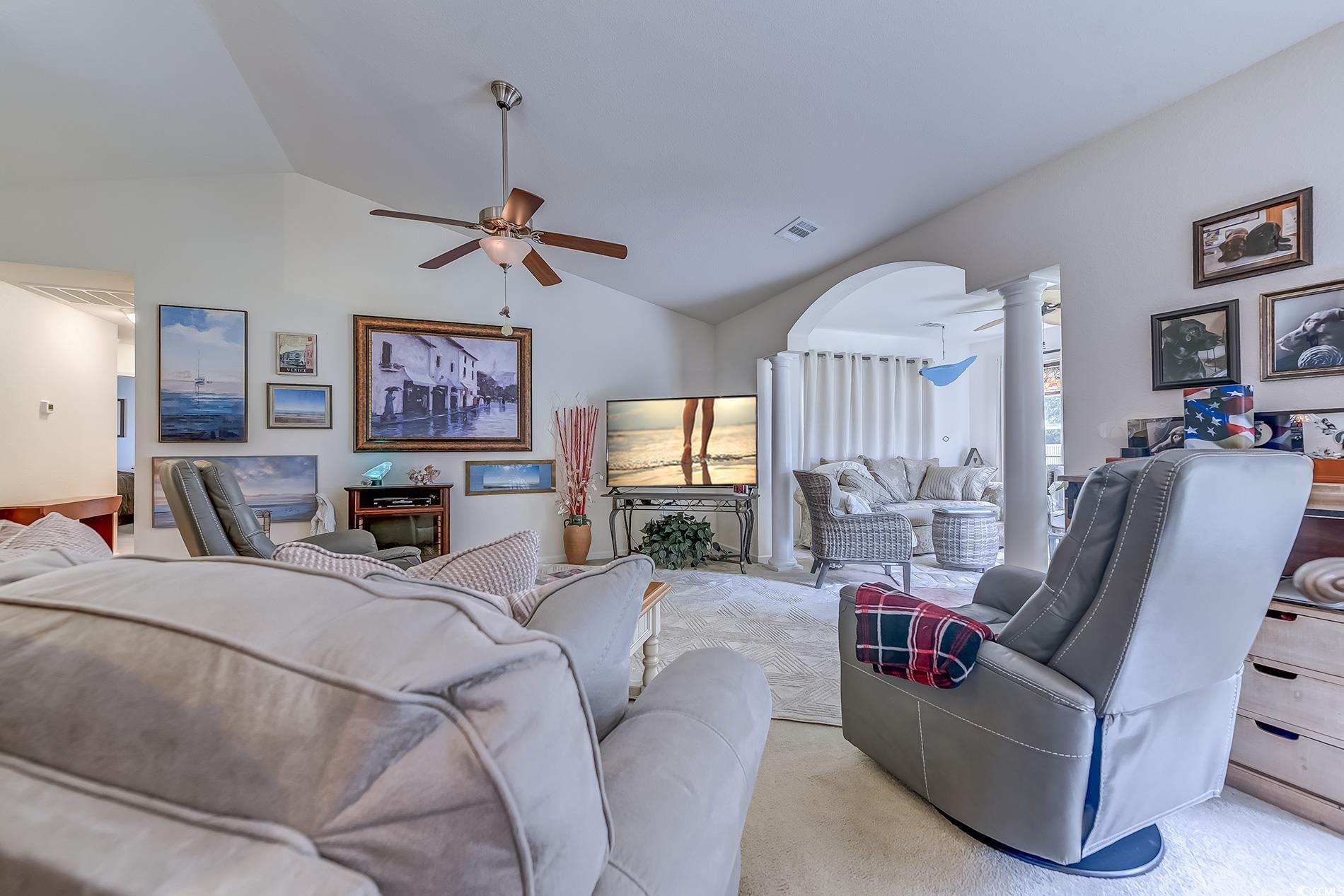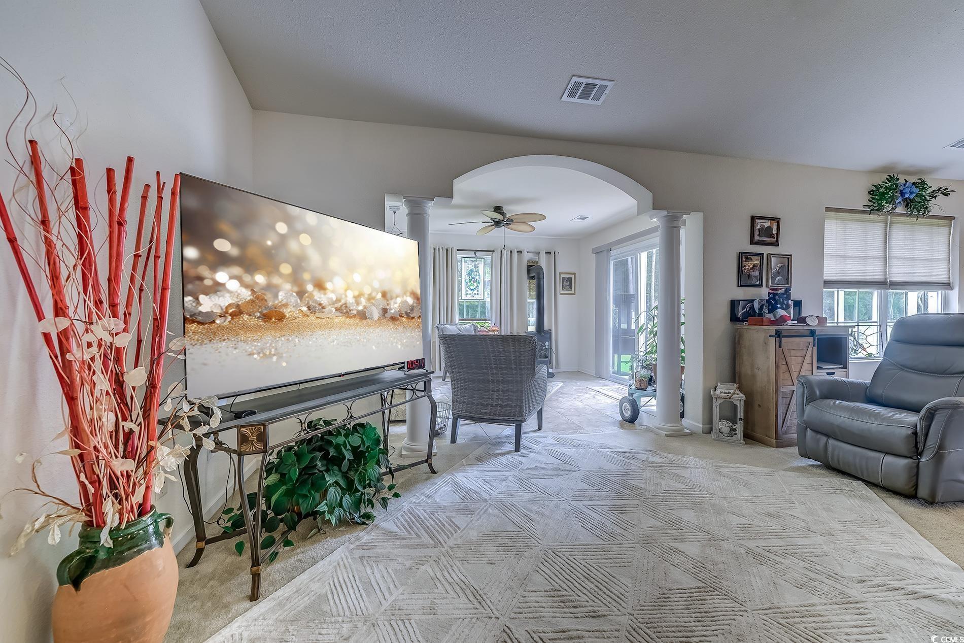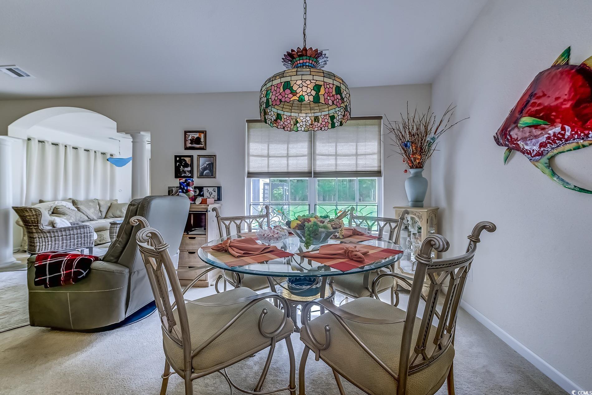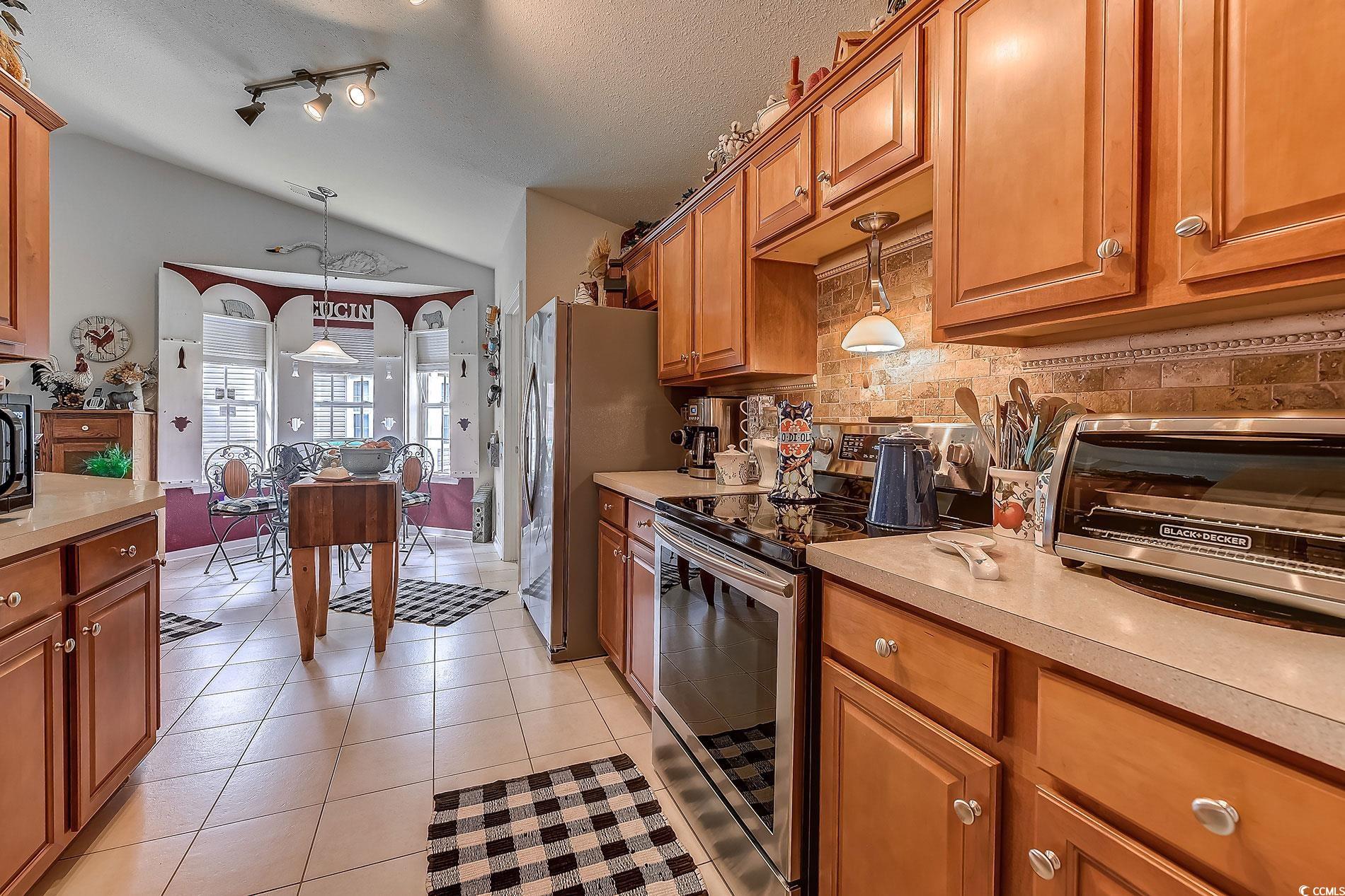 This is a Holly Floor plan, 3 bedrooms , 2 baths, in the popular community of Lafayette Park in Little River. Includes a front porch and back patio for entertaining. This single-level home features a spacious open floor plan with vaulted ceilings, abundant natural light, Kitchen has all stainless steel appliances, separate laundry area with washer and dryer included. Additional features include ceiling fans, window treatments, 2 storage units in back yard for extra outdoor equipment needs , ask for conveyance list. Note all Stained Glass window treatments, and Stained Glass Chandelier over dining table does not convey. Roof was replaced in 2022, HVAC was replaced in 2021.This home also offers a Carolina Room for relaxing on a sunny afternoon leading out to the patio. The large 2 car garage features , an extra workshop area for hobbies and a pull downstairs to the extra attic storage area. Community amenities include an outdoor pool, clubhouse and tennis court! Very close proximity to both NC and SC Beaches , Conveniently located close to dining, shopping, golf interests. Call for an appointment today to see this unique home.