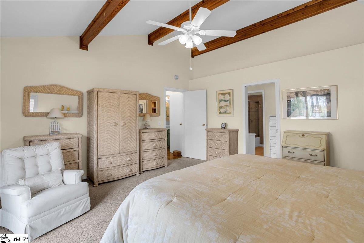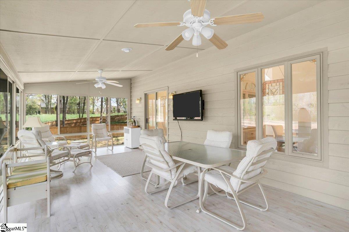 If you're looking for a bright, sunny place to "light," this is the house for you. Located in popular Pebble Creek in the Linkside subdivision, this home has plenty of curb appeal. From the minute you drive in, azaleas and beautiful, shady trees greet you. The contemporary designed Lindal house is perfectly situated on the cul de sac lot. Enter the house and be immediately uplifted by the open, airy feel of the house. Banks of windows bring in light and view of the beautiful surroundings. There are gleaming hardwoods throughout much of the house. Vaulted ceilings and a handsome fireplace star in the living room. The dining room, just off the living area, is cozy and just one of the many great places to entertain. The kitchen (with a den off to the side) is an inviting place to gather and cook with family and friends. A breakfast nook, with built in cabinetry, provides a spot for informal meals. Enjoy a cup of coffee or tea in the sun room that overlooks a grilling deck and the backyard retreat beyond. The primary bedroom has cathedral ceilings, glass doors leading out to the deck, and a private bathroom and walk in closet. There is a half bath on this level for guests. Downstairs (walk out/daylight basement) are two additional bedrooms with ensuite bathrooms. The laundry is generously sized and there is an office space, as well. The oversized garage has a back entry and plenty of parking space. I don't think that categorizing this house as a "fairy tale" house is too much of a stretch, considering the feeling that the home evokes. The location near downtown Greenville and all it has to offer, from restaurants and entertainment venues to world class healthcare facilities, is an added bonus. Other destinations, such as Greer, Travelers Rest, the mountains of NC and the beaches of SC, are within easy driving distance. The Greenville Spartanburg International Airport and interstate highways are moments away. Come see what this Southern living gem of a home has to offer. Roof replaced 2022; HVAC replaced 2024; water heater replaced 2022; dishwasher and disposal replace 2026.