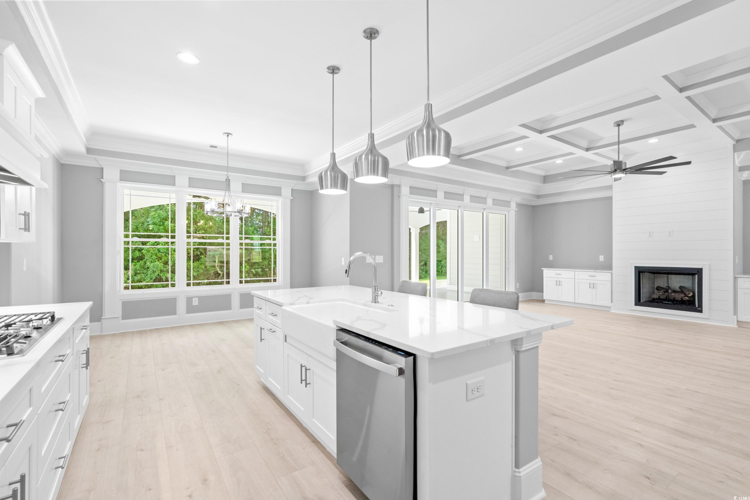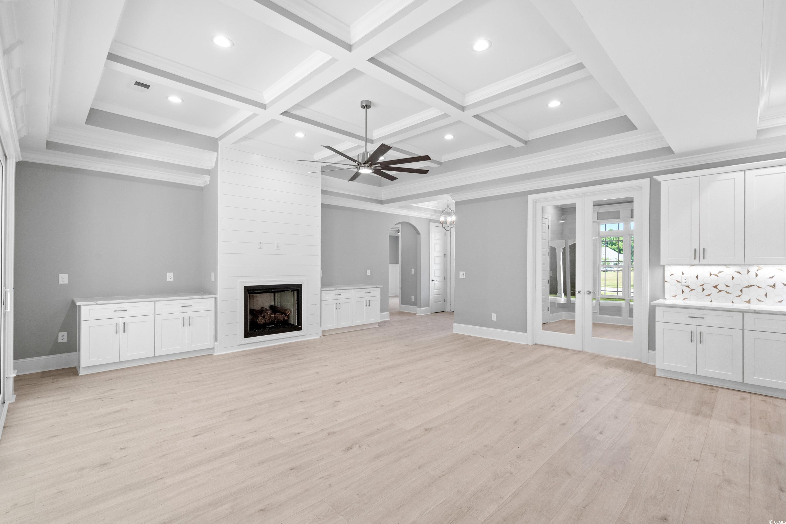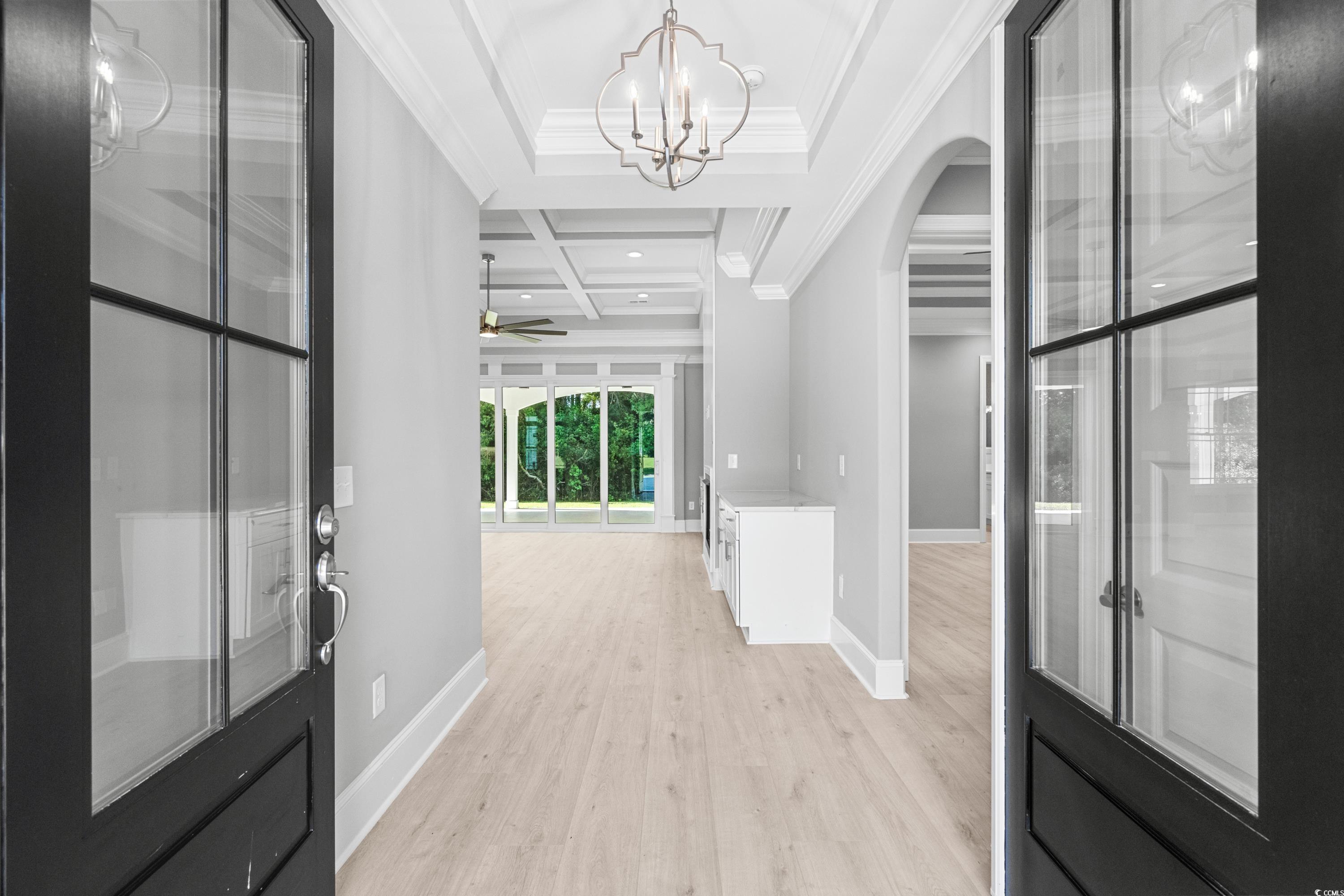 This brand-new Custom lakefront Home will feature 5 spacious bedrooms and 4 luxurious bathrooms! This beauty will have all the bells and whistles to enjoy an exceptional lifestyle at the beach. Custom features of this home include 12' ceilings in the foyer, great room, dining room, kitchen and breakfast area with customized coffered ceilings in the great room and double tray rope lighted ceilings in the dining room and master bedroom. Luxurious LVP floors throughout this remarkable home with a crown molding and a trim package that will be second to none! The arched cased openings, bull nose corners, deluxe 5 1/4 crown moldings, chair rail, 7 1/4 baseboard, well-appointed wainscoting and custom window trim throughout this open and airy floor plan will simply amaze you! Custom cabinetry and quartz counter tops, porcelain sinks in the kitchen, master bathroom, guest bathrooms and the laundry room. All closets are custom designed with upgraded wood shelving. The covered rear porch overlooking the lake extends the full length of the home with porcelain tile flooring, 2 ceiling fans, 10 recessed lights and an outdoor TV setup that is perfect for waterfront entertaining! Home has an oversized finished 3.5 car garage with epoxy flooring and is perfectly situated on a large premier lakefront homesite. Wild Wing Plantation offers two award-winning golf courses, practice facility, pro-shop and restaurant. The community is right off Highway 501 and close to endless shopping, dining, attractions and Coastal Carolina University. Square footage is approximate and is not guaranteed. Buyers are responsible for verification. New construction homes are subject to customization and changes. Don't Delay! Call Today!!