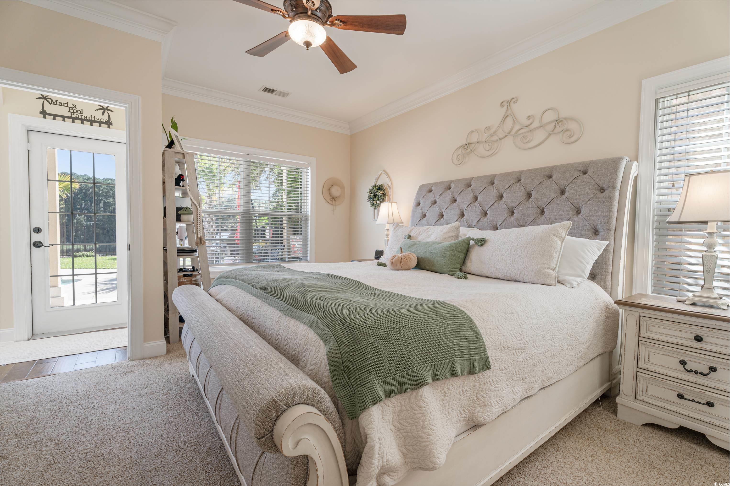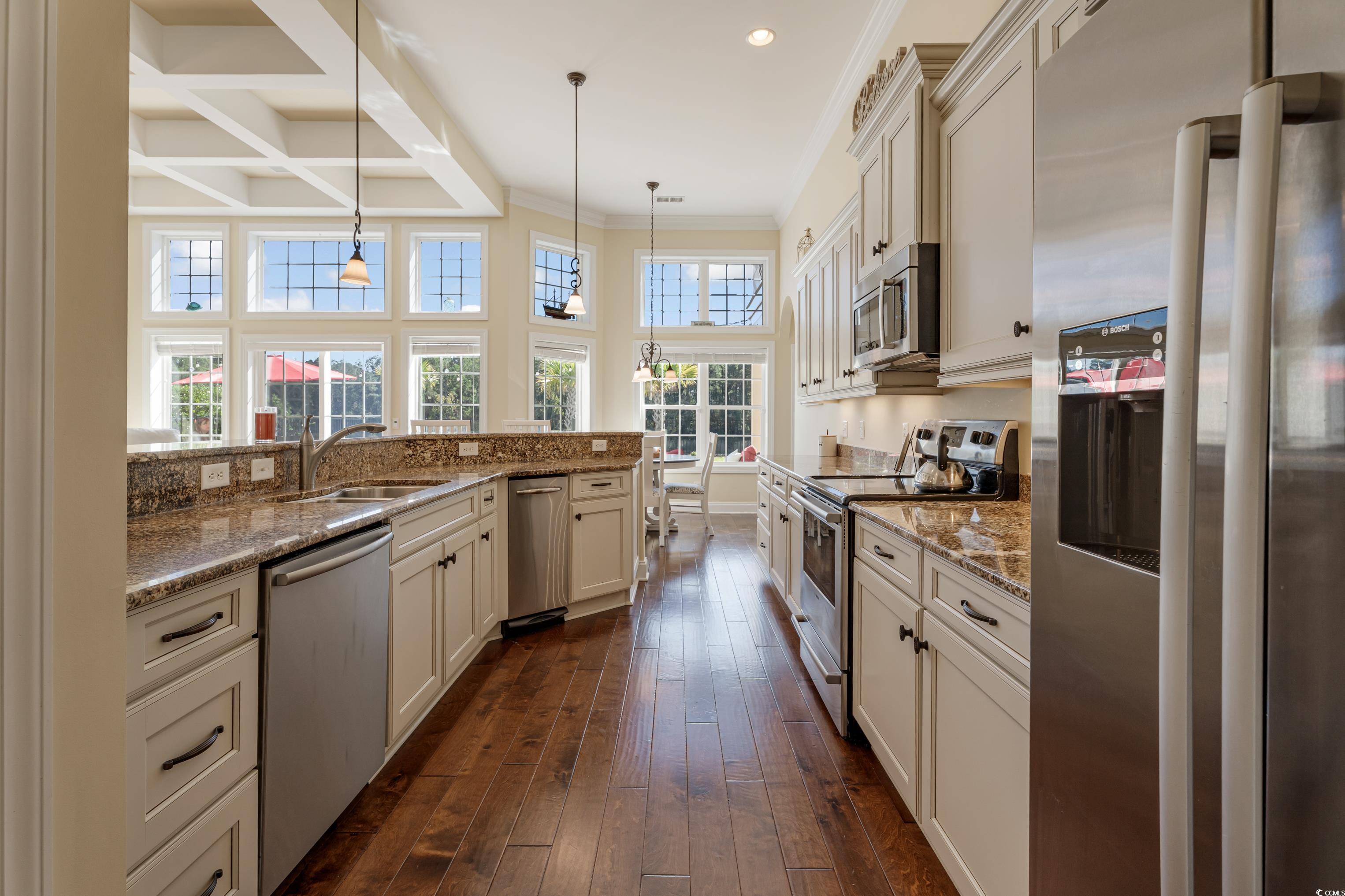 Back on the market at no fault of the sellers. Nestled in the desirable Bluffs community in Carolina Forest, this stunning waterfront home offers a luxurious lifestyle aboard the Intracoastal Waterway. Boasting four bedrooms and three baths, the first-floor features a spacious master suite with his and her walk-in closets, a beautiful oversized tiled shower with dual controls and a ceiling rain shower head, along with two additional bedrooms and a large suite, perfect for family or guests. The home showcases elegant upgrades including cathedral ceilings in the foyer, a coffered ceiling in the living room, a formal dining area, and a roomy, well-appointed kitchen with granite countertops, custom cabinets, a breakfast bar, Bosch stainless steel appliances, and a trash compactor. Hardwood and tile floors, ceiling fans, and numerous tinted glass doors and windows flood the space with natural light, creating a bright and inviting atmosphere. The living room opens seamlessly via sliding glass doors to an outdoor oasis featuring a covered back patio, a saltwater pool with a 50' x 50' buildup, and spectacular waterway views—perfect for relaxing, entertaining, or enjoying tranquil mornings with coffee or afternoon wines. Additional conveniences include an oversized 2-car garage, first-floor laundry, and plenty of storage. The community itself is a true lifestyle destination, offering a main clubhouse with pools, tennis and basketball courts, a kids' play area, and a secondary clubhouse known as the boathouse on the waterway. Boating enthusiasts will appreciate the secured boat storage, boat ramp access, and two boat lifts included with the home. Located within top-rated schools and featuring a vibrant social atmosphere, The Bluffs provides a perfect blend of luxury, comfort, and recreation. Don’t miss the opportunity to own this exceptional waterfront residence—schedule your viewing today and experience the best of Carolina Forest living.