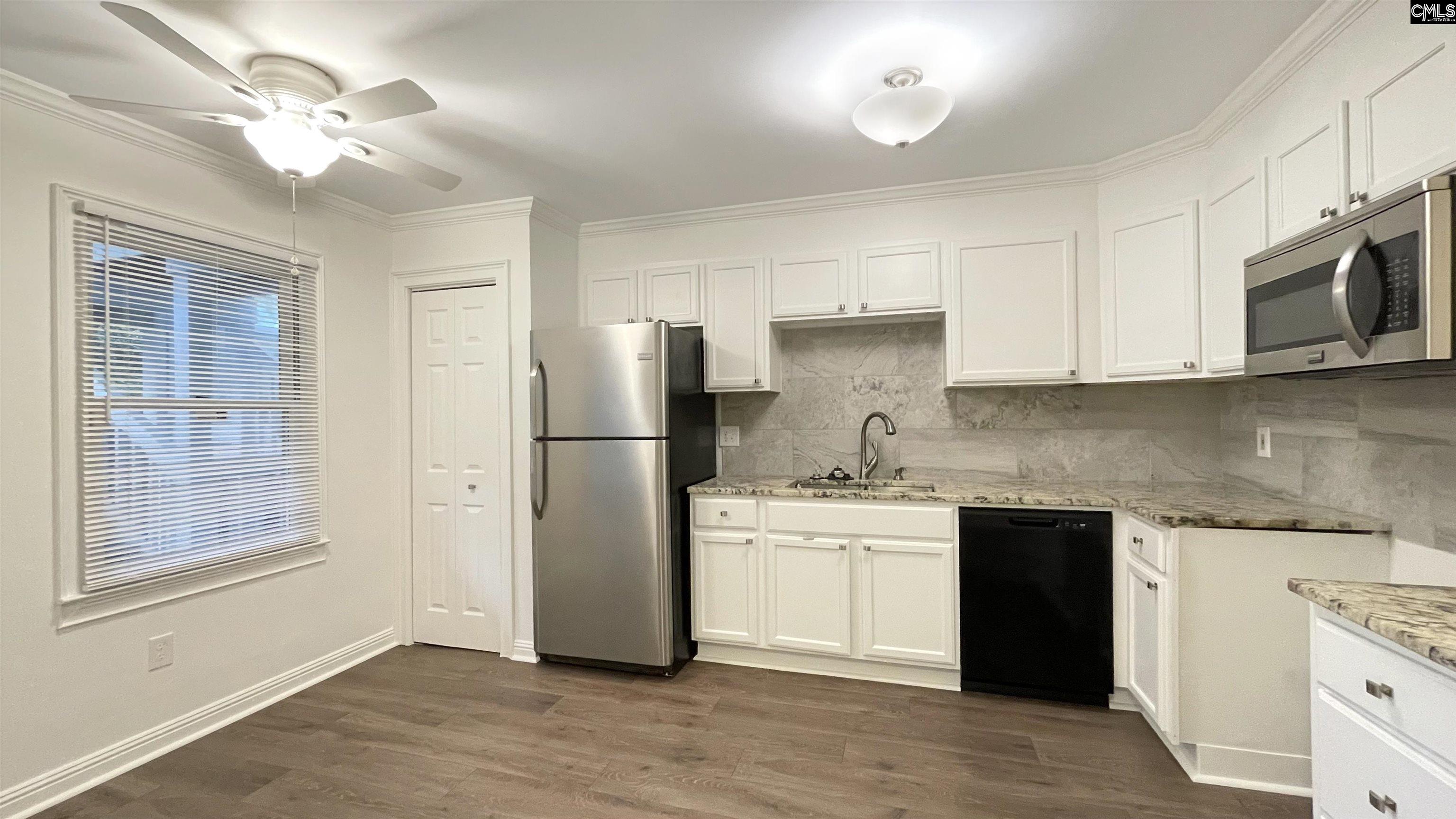 Beautifully and meticulously updated 2BR 2BA condo in gated riverfront community is move-in ready! Features rare smooth ceilings, heavy molding, new hybrid vinyl/laminate waterproof resilient flooring, new baseboards, fresh paint throughout in SW Pure White, updated fixtures, and new outlets/switches. Kitchen with granite countertops, newer cabinets, pantry, and stainless appliances. Dining room with wainscoting opens to living room with wood burning fireplace and TV mount area. Primary suite has built-in dresser, barn doors, and private updated bath with double granite vanity, tub shower, water closet, and walk-in closet. 2nd bedroom with walk-in closet and access to updated hall bath and laundry room. This side of the condo can be closed off with the pocket door to make a private guest suite. Back screened porch with tile floor and storage shed. HVAC only 4 yrs old, water heater is 3 years old, electrical service at meter was updated. Its rare for these units to have updated kitchens and baths - all the work has been done for you! Gated community with pool, hot tub, gym, clubhouse, dog walk areas, and river access. Come see! Disclaimer: CMLS has not reviewed and, therefore, does not endorse vendors who may appear in listings.