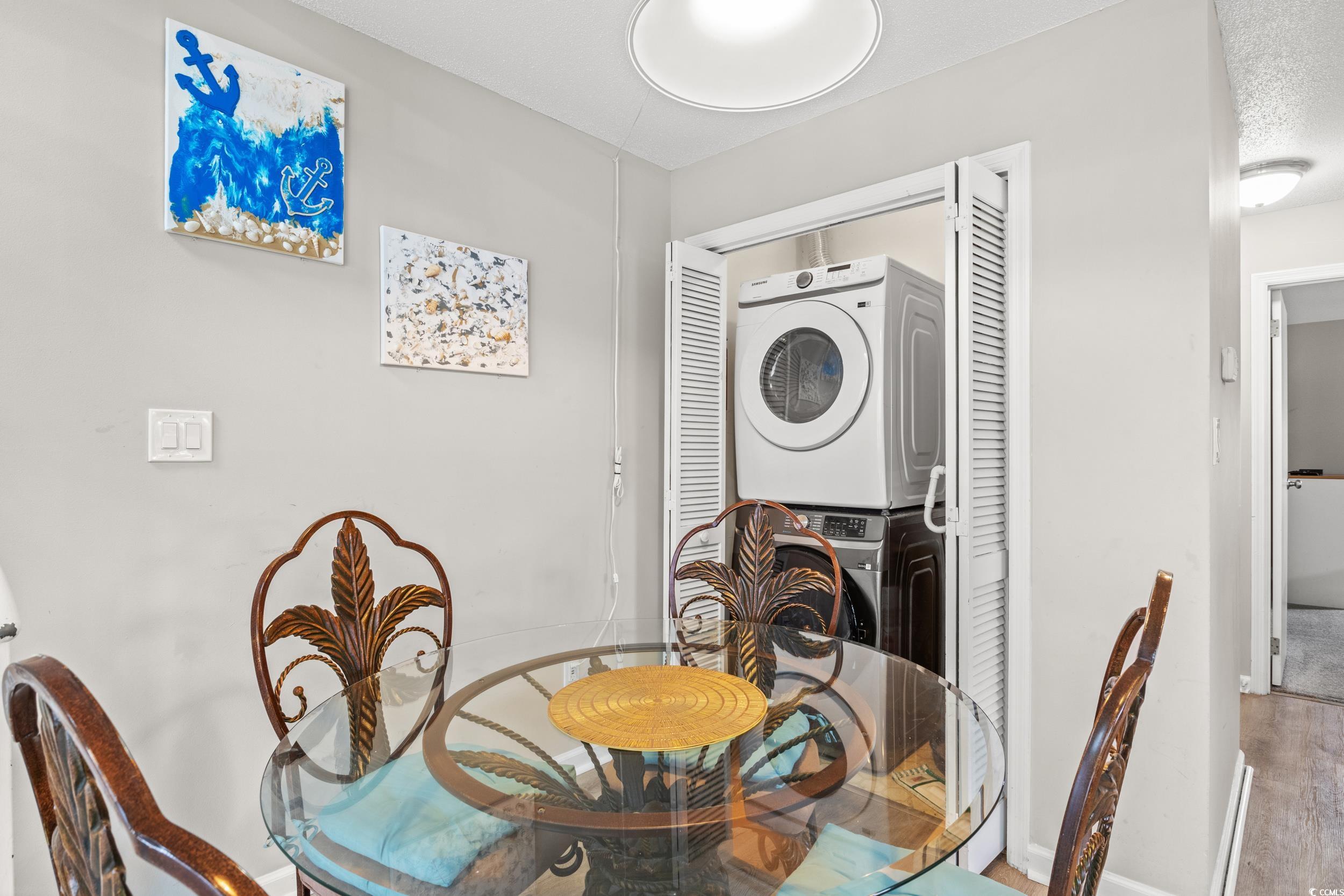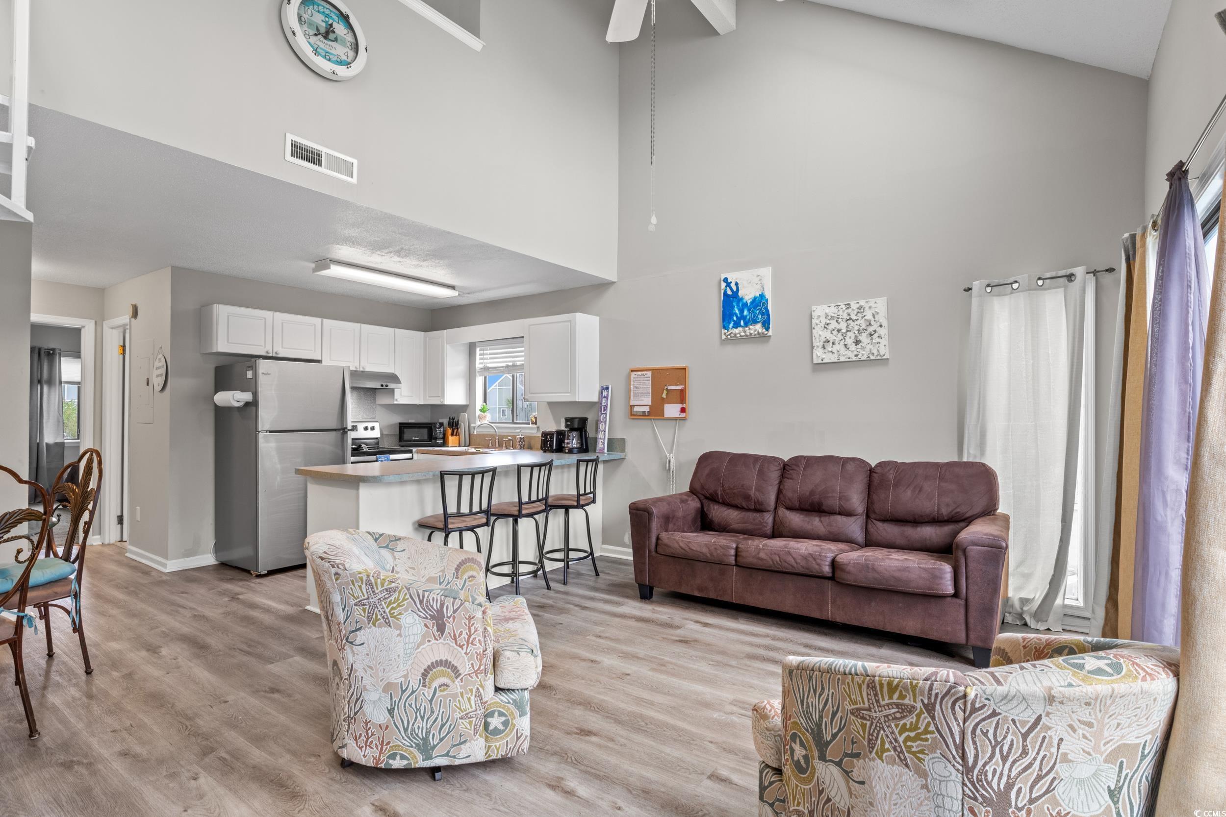 Step inside this well-maintained and fully furnished, 2-bedroom, 2-bath condo located on the top floor in Deerfield! The unit features tall vaulted ceilings and durable LVP flooring throughout the main living spaces. The kitchen is equipped with updated cabinetry and stainless steel appliances, while both bathrooms have been renovated with tile flooring, updated vanities, and walk-in showers. Additional highlights include a front-load washer and dryer, and updated HVAC system and water heater, both replaced in 2022. A private balcony overlooks the community pool, and residents also have access to on-site tennis courts. Conveniently located just minutes from the beach and airport, this property offers flexibility as a primary home, vacation property, or investment allowing short term rentals. This condo offers incredible value priced under recent appraisal and is the lowest priced 2 bedroom condo in the community!!