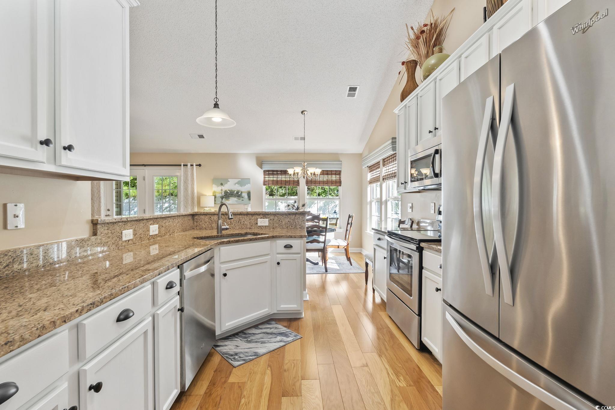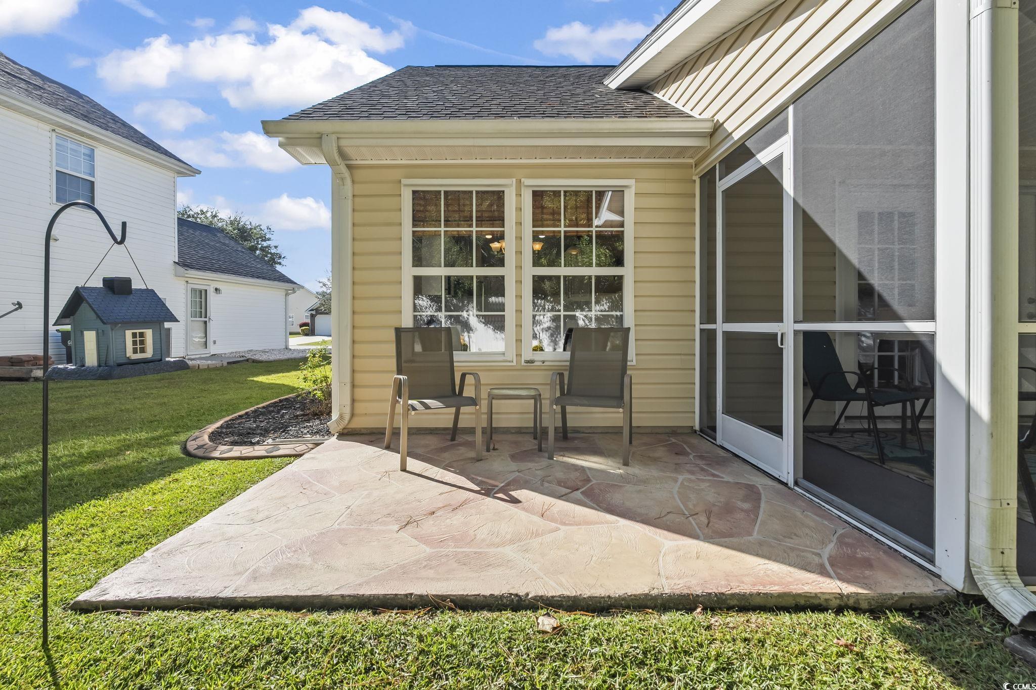 Welcome to this well-maintained 2-bedroom, 2-bath home nestled in a desirable and friendly community of Carolina Crossing. Step inside to find a spacious open layout with vaulted ceilings that create an airy, comfortable feel. Both bedrooms feature walk-in closets, and the second bath connects directly to the guest bedroom and hall; perfect for visitors or family. The primary bath has double sinks, stand alone shower and a bath tub. The kitchen has ample cabinets, pantry, granite countertops and stainless steel appliances. A separate dining area creates a great space for entertaining. Enjoy the convenience of a large separate laundry room; including the washer and dryer, a foyer to welcome guests, and a side-entry garage door. Outside, the property includes an irrigation system and hurricane shutters for peace of mind. The newer roof was installed in 2024. The screened in patio includes an additional patio for sunning or grilling. HOA dues cover lawn mowing and irrigation; allowing you more time to relax and enjoy your surroundings. Little River is a short drive to the beaches of North Myrtle Beach, shopping and restaurants. A wonderful combination of comfort and convenience; this home is move-in ready and waiting for you.