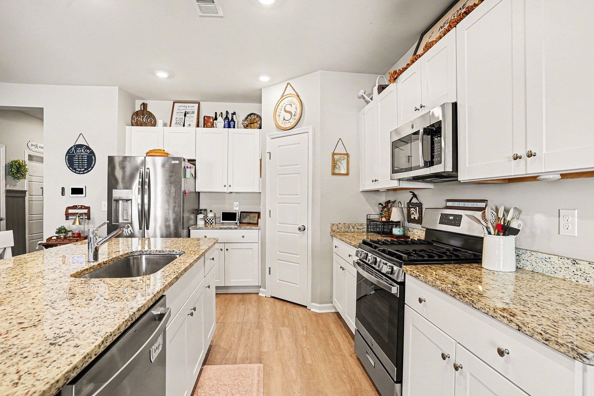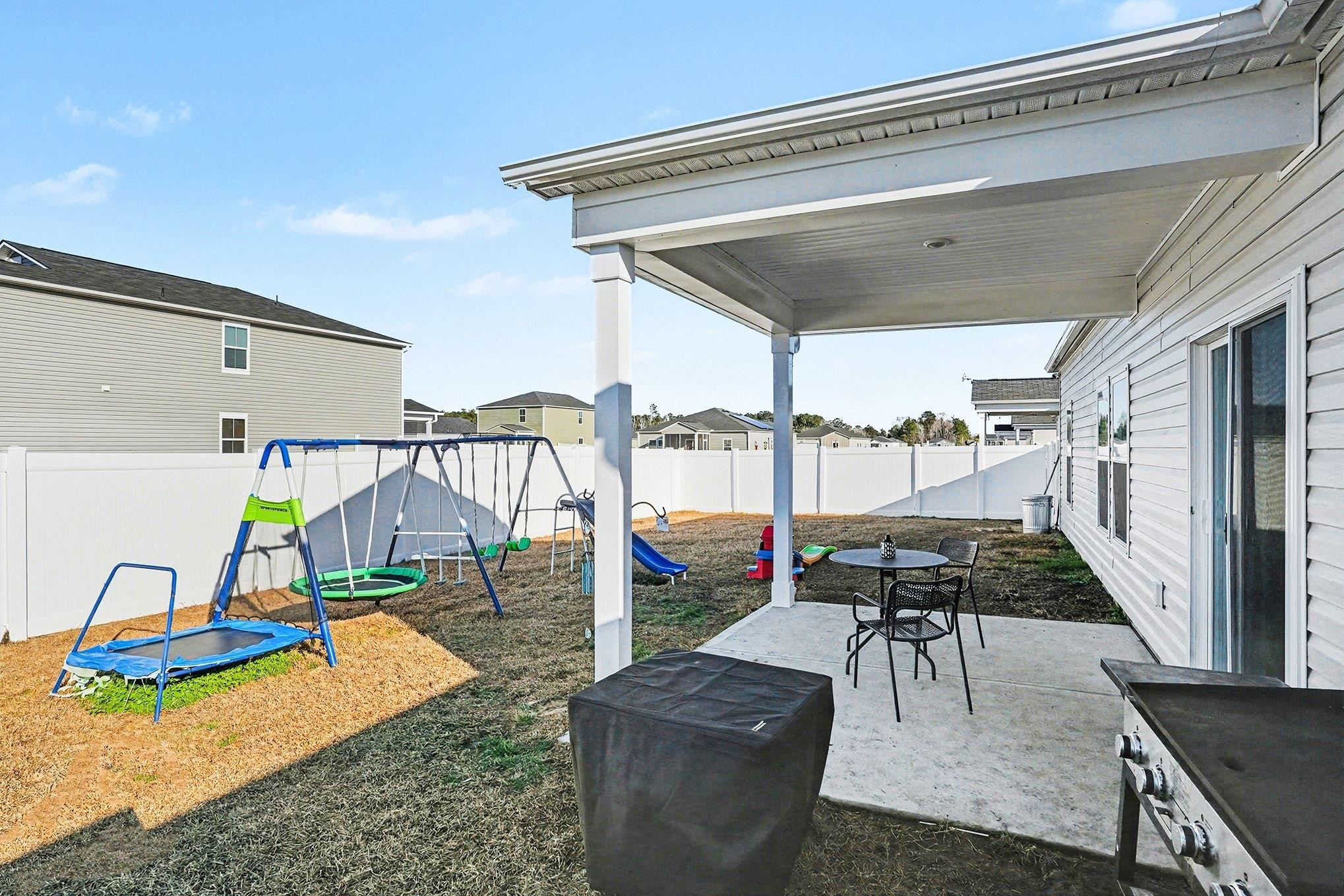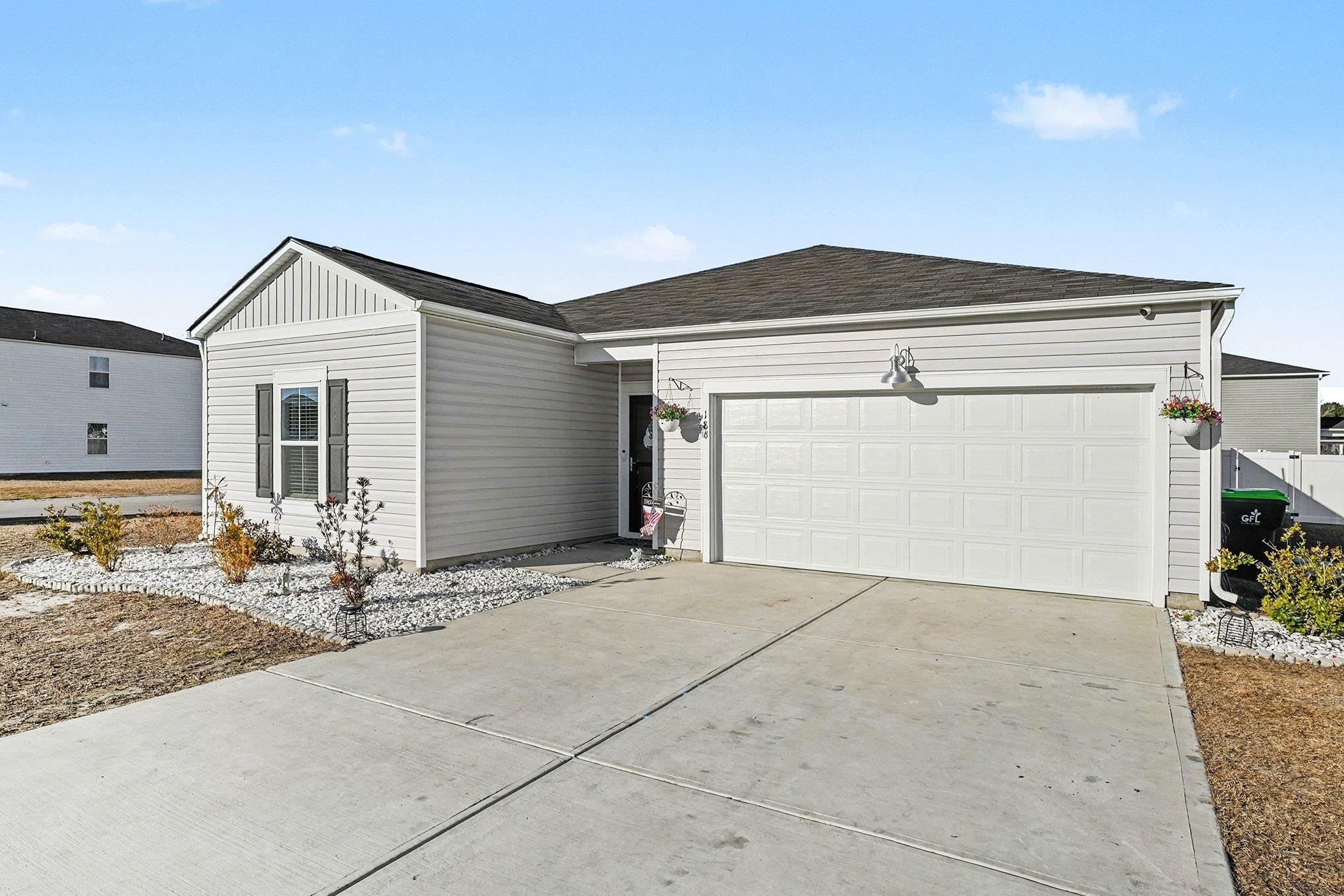 Well maintained Hartford floor plan offering 4 bedrooms and 2 baths, this home shows better than new with thoughtful upgrades throughout. Features include a custom fireplace wall in the living room, accent wall in the hallway, ceiling fans throughout, and a fenced-in yard on a desirable corner lot. The open, split bedroom floor plan provides both functionality and privacy. The kitchen, living, and breakfast areas flow seamlessly and extend to the patio ideal for indoor/outdoor living. The kitchen features a spacious island and corner pantry. Three bedrooms and a full bath are located near the foyer, while the primary suite is privately tucked away, offering a large walk-in closet walk I shower, and double sink vanity. Located in the Saddle Ridge community in Conway, residents enjoy amenities including a pool and playground.