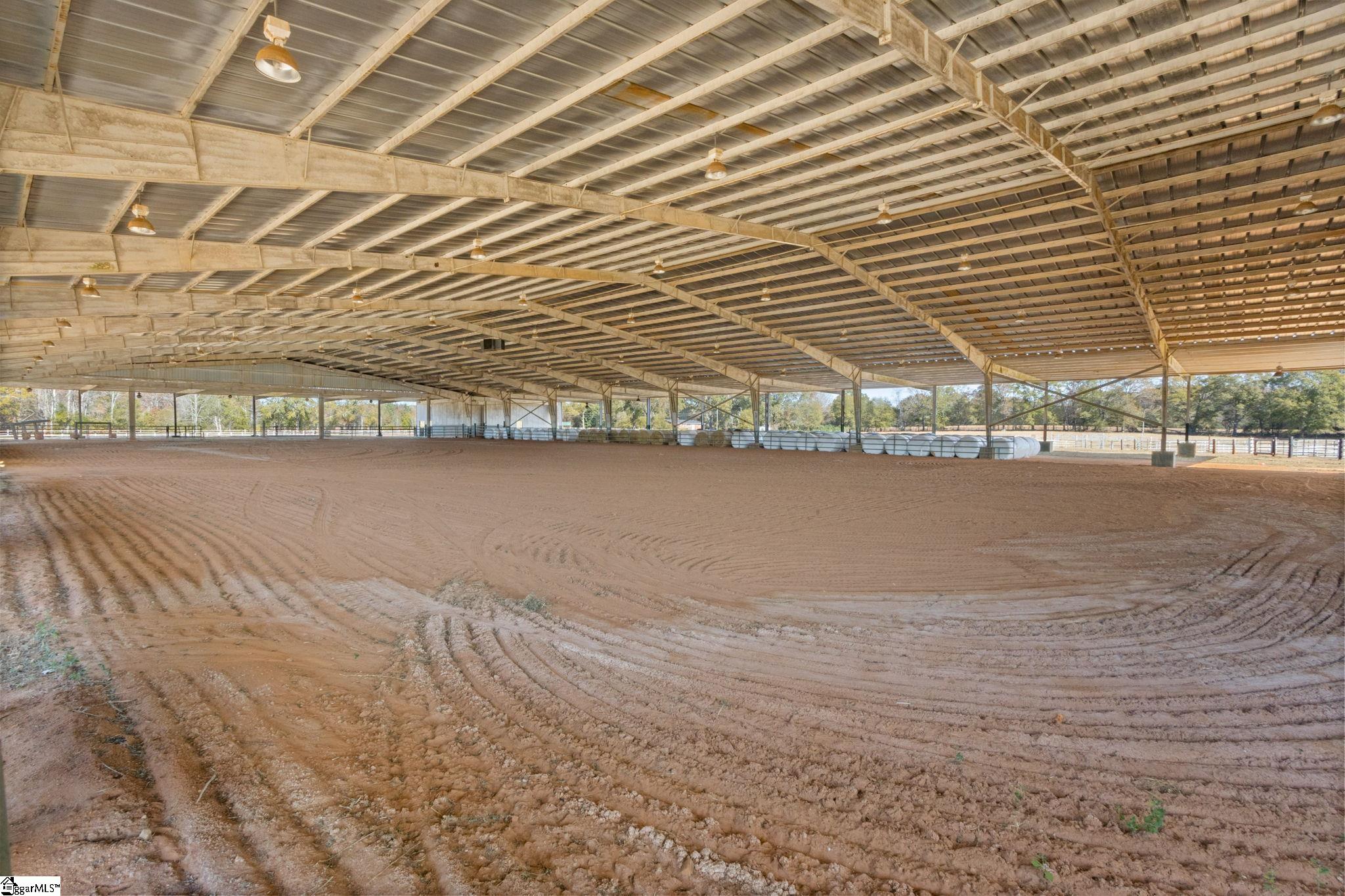 Only 30 minutes from Greenville SC, 15 minutes from I-85 this conveniently located operating cattle farm is suited for both horses and cattle. In addition to the custom log cabin overlooking a beautiful pool and patio, this property boasts a horse barn with 9 stalls, and an insulated garage for 6+/- vehicles. Plus, a large covered, open air former Rodeo arena provides ample room to train and ride as well as a large, covered hay storage shed. Additionally, there is an enclosed former rodeo arena with office space currently used for light manufacturing. This expansive building could easily be converted back to a livestock centric use, indoor sports arena or continue as a manufacturing facility. There are 2 large covered, temporary corals / stalls connected to this facility providing storage or temporary livestock staging areas. The managed pasture has been divided into 11 smaller separate fenced, grazing pastures which provide grazing areas and also yields between 200-400 bales of hay per cut with 3-4 cuts per year due to a special fertilization program through Clemson University. These beautiful pastures are adjacent to 25 acres of woodlands supporting wildlife for hunting including white tail deer, wild turkey and dove. The features don’t stop there, an 8+/- acre stocked pond with a 60’x15’ concrete dock provides the perfect spot to entertain or just get away. Ther opportunities for this prime property are unlimited.