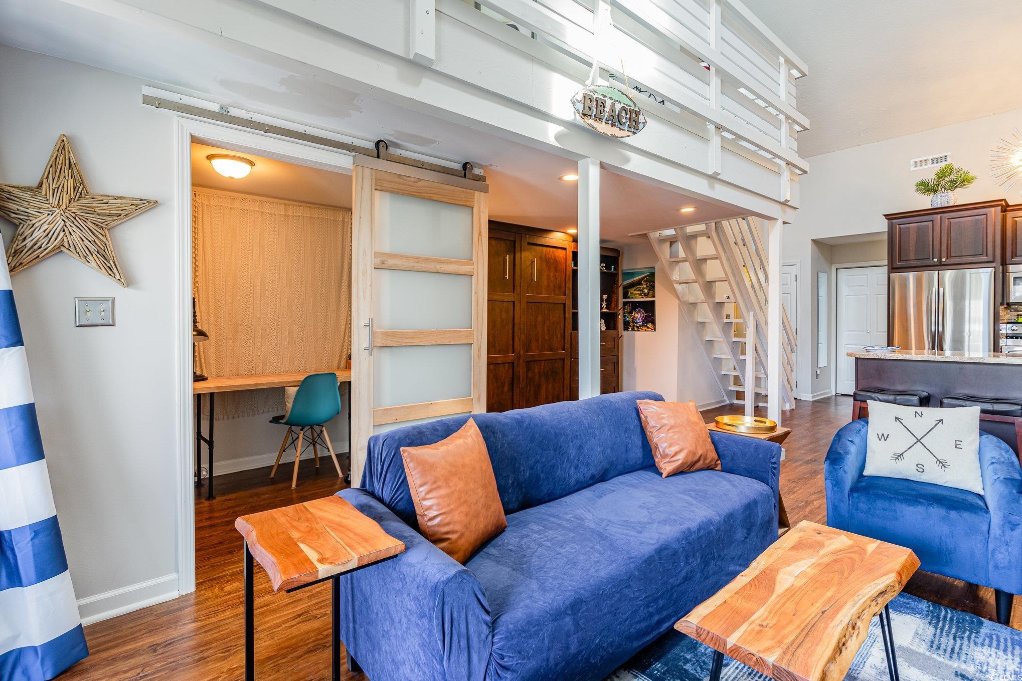 Welcome to 1860 Auburn Lane! Just 2 miles from the Atlantic Ocean, this stunning efficiency condo with a loft offers a sleek & modern living space. Fully furnished, in unit Washer & Dryer & HVAC is only 2 years old! The open-concept floor plan combines the kitchen, living, and sleeping areas into a unified space, creating a cozy and efficient environment. The kitchen is well-appointed with stainless steel appliances, ample counter space and plenty of storage. The standout feature of this condo is the loft area, which adds an elevated & flexible space. Perfect for a bedroom, home office, or additional storage! Accessed by the updated staircase, the loft opens up the main living area, providing an airy feel while maintaining a sense of separation. Large skylight windows allow natural light to flood the space. If you're looking for a new primary residence, second home or investment property, this is the one for you!! Schedule your showing today!!
