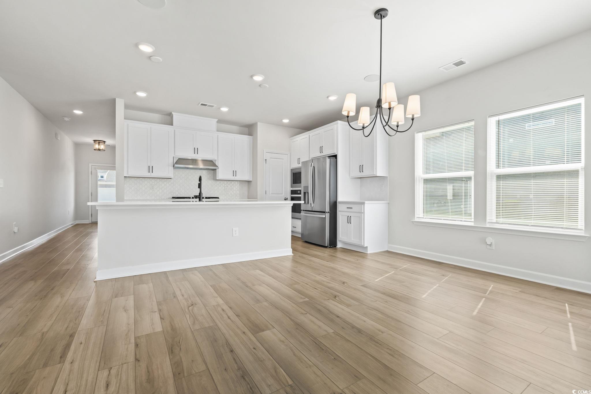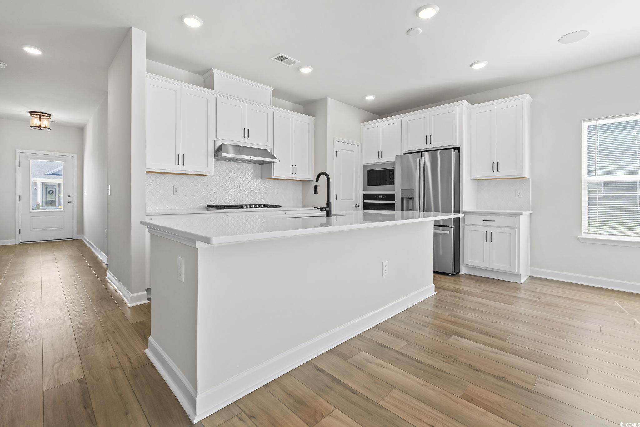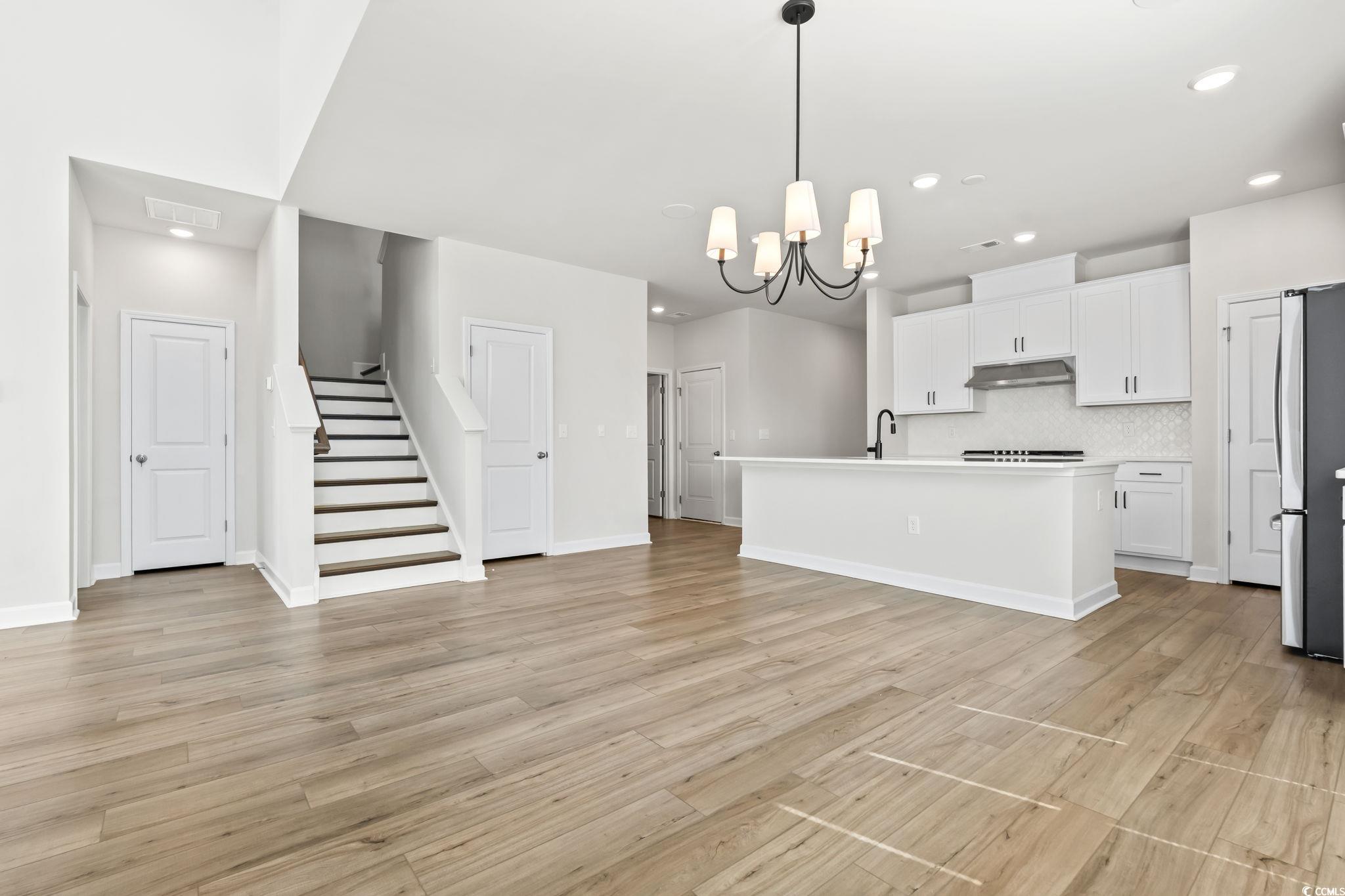 Welcome to 1860 Villena Dr, a stunning 5-bedroom, 4-bathroom home nestled in the beautiful Trieste at Bella Vita neighborhood of Myrtle Beach, SC. This inviting residence boasts exquisite cathedral ceilings in the living room, creating an airy and open ambiance. The tasteful upgraded kitchen is perfect for both everyday living and entertaining. Relax in the cozy living room complete with a fireplace, ideal for gatherings and creating memorable moments. The spacious primary bedroom, conveniently located on the 1st floor, offers privacy and ease of access. Enjoy serene views of the pond from your backyard, providing a peaceful retreat within the community. Seller also added an irrigation system to the yard. Additional highlights of this home include a tankless water heater for energy efficiency, an installed security system for peace of mind, a spacious laundry room, and plentiful storage options throughout. Experience the perfect blend of comfort and style in this exceptional property don't miss your chance to make it your own!