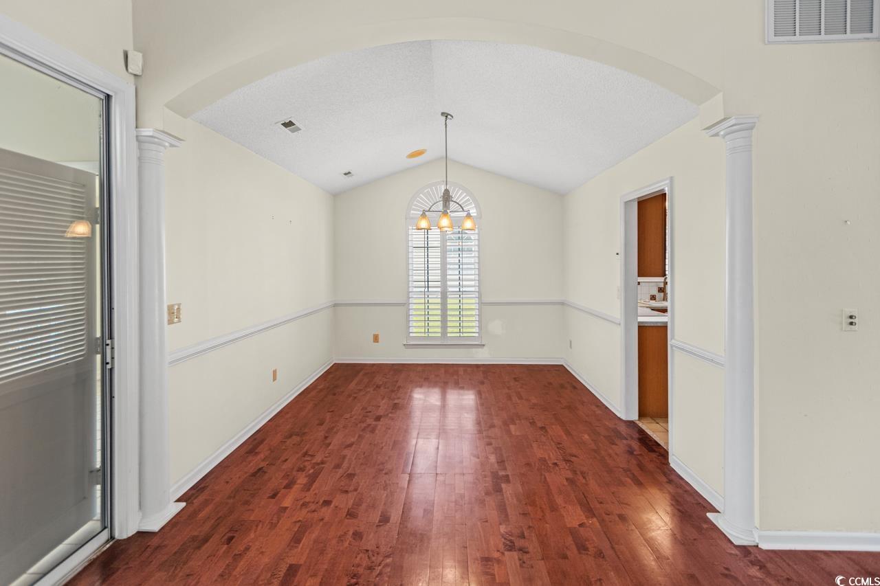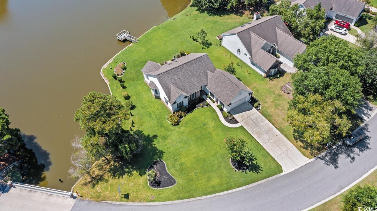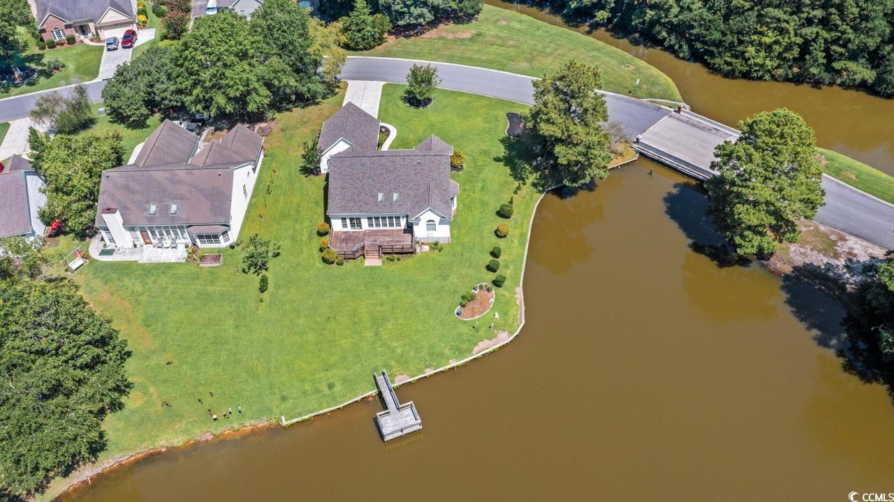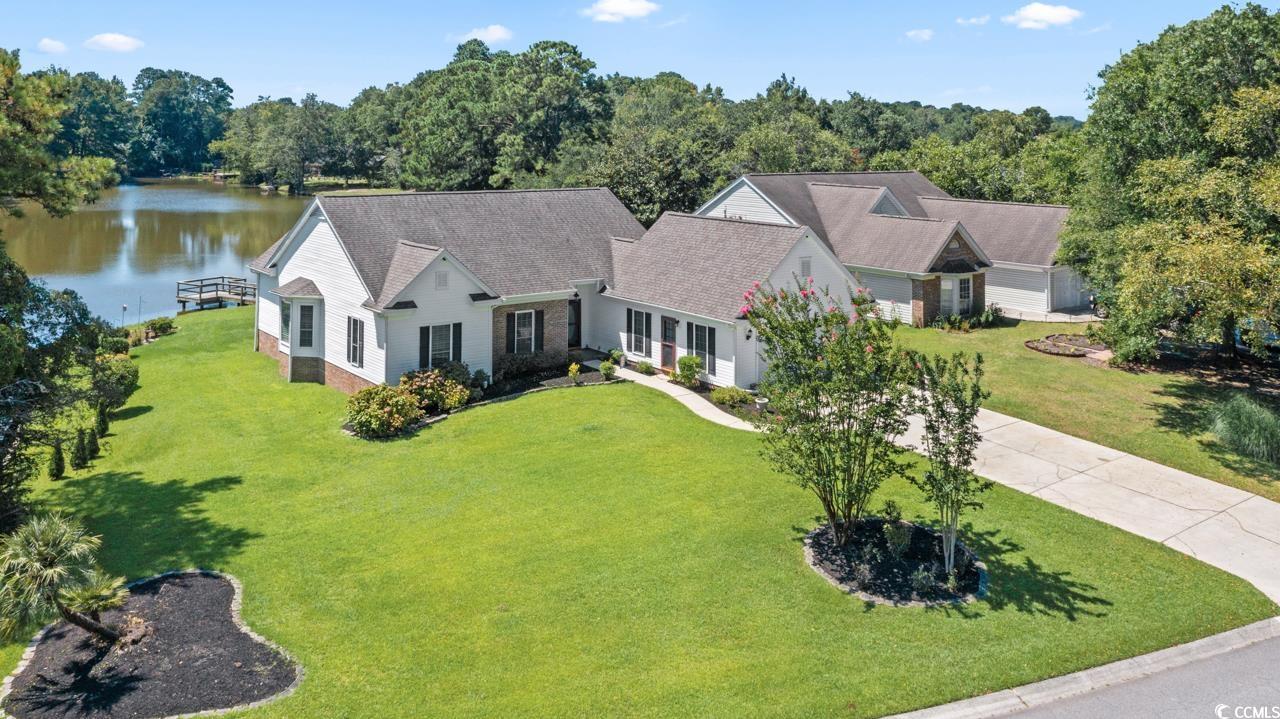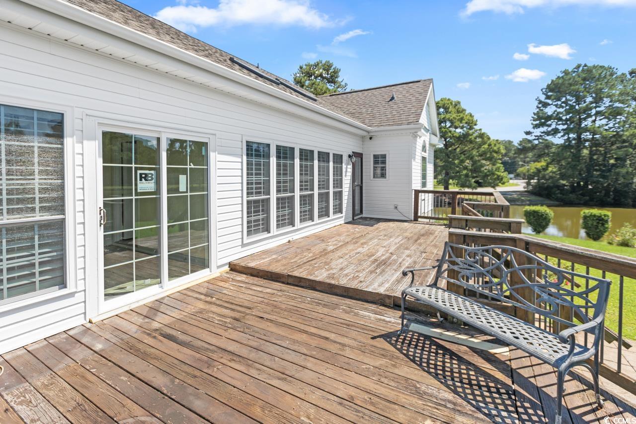 Seller is motivated to sell AS-IS!!! Ask your agent for details. Enjoy Beautiful Lake Views and Your Own Private Dock! Bring your canoe or kayak and embrace the peaceful waterfront lifestyle in this 3-bedroom, 2-bath home featuring an open living area with vaulted ceilings and stunning Australian mahogany wood floors in the main living and dining spaces. A sunny Carolina room offers additional living space, and there's also a separate office or craft room for flexibility. The eat-in kitchen includes a breakfast bar & lots of windows. The home is filled with natural light, plantation shutters, and generous windows framing the lake view. The primary bedroom features a cedar-lined closet and bay window. Additionally, an oversized 20x25 garage provides ample space for vehicles, workbenches, or storage. Recent updates include: new HVAC system (July 2025), new sliding glass door in office (July 2025), stainless steel refrigerator (January 2025), new garage door (2023), roof (2018), water heater (2020). This established community has two community pools and is located just a short drive to beautiful beaches, oceanfront state parks, championship golf courses, and a variety of restaurants and shopping. This home is ready for your personal touch so schedule your appointment to see today!