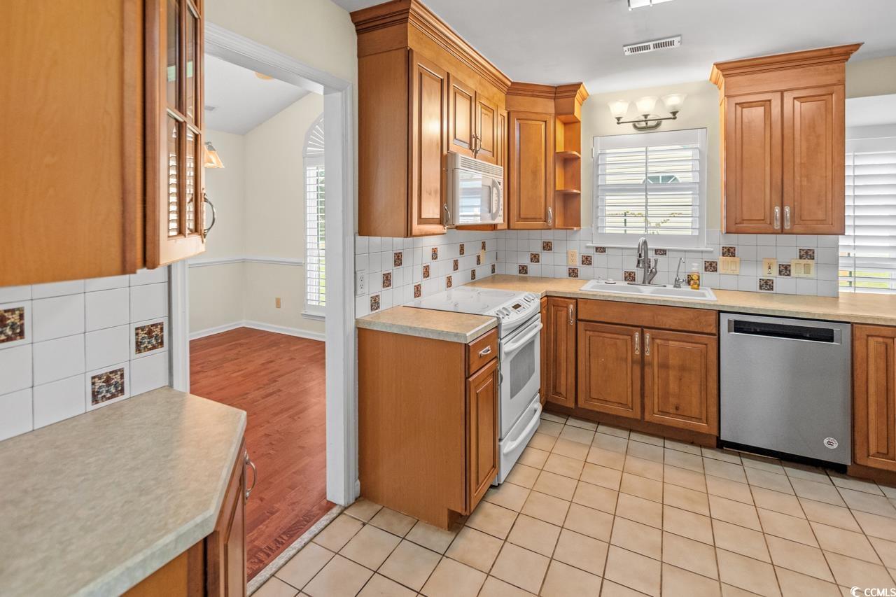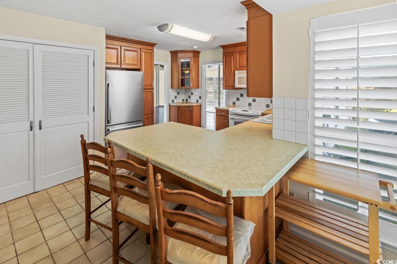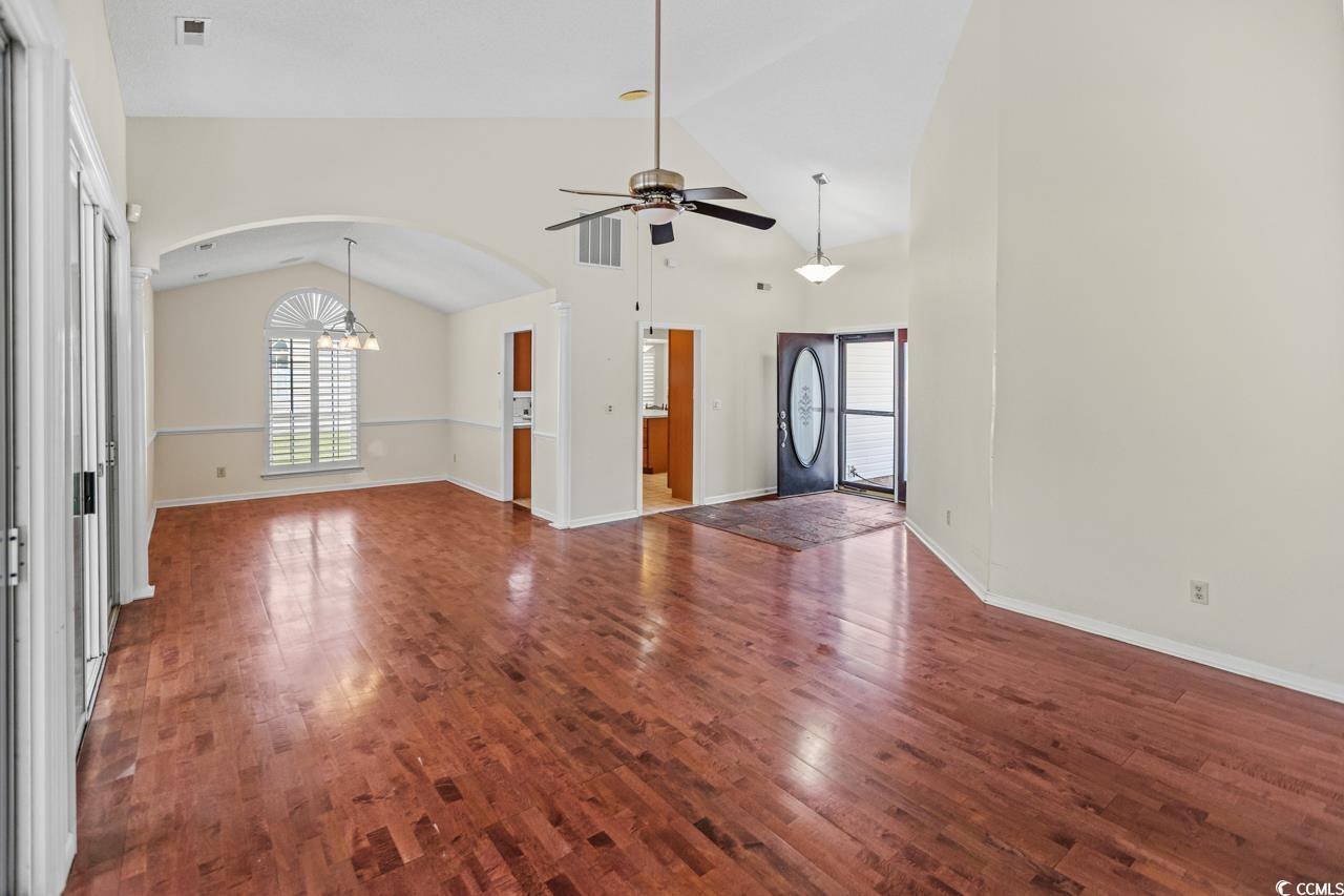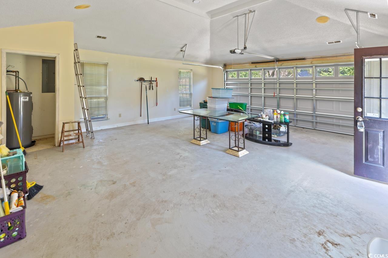 Seller is motivated to sell AS-IS!!! Ask your agent for details. Enjoy Beautiful Lake Views and Your Own Private Dock! Bring your canoe or kayak and embrace the peaceful waterfront lifestyle in this 3-bedroom, 2-bath home featuring an open living area with vaulted ceilings and stunning Australian mahogany wood floors in the main living and dining spaces. A sunny Carolina room offers additional living space, and there's also a separate office or craft room for flexibility. The eat-in kitchen includes a breakfast bar & lots of windows. The home is filled with natural light, plantation shutters, and generous windows framing the lake view. The primary bedroom features a cedar-lined closet and bay window. Additionally, an oversized 20x25 garage provides ample space for vehicles, workbenches, or storage. Recent updates include: new HVAC system (July 2025), new sliding glass door in office (July 2025), stainless steel refrigerator (January 2025), new garage door (2023), roof (2018), water heater (2020). This established community has two community pools and is located just a short drive to beautiful beaches, oceanfront state parks, championship golf courses, and a variety of restaurants and shopping. This home is ready for your personal touch so schedule your appointment to see today!