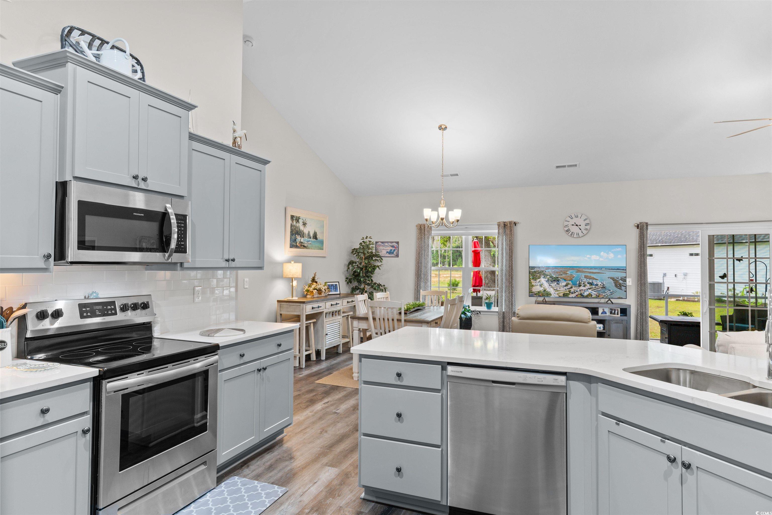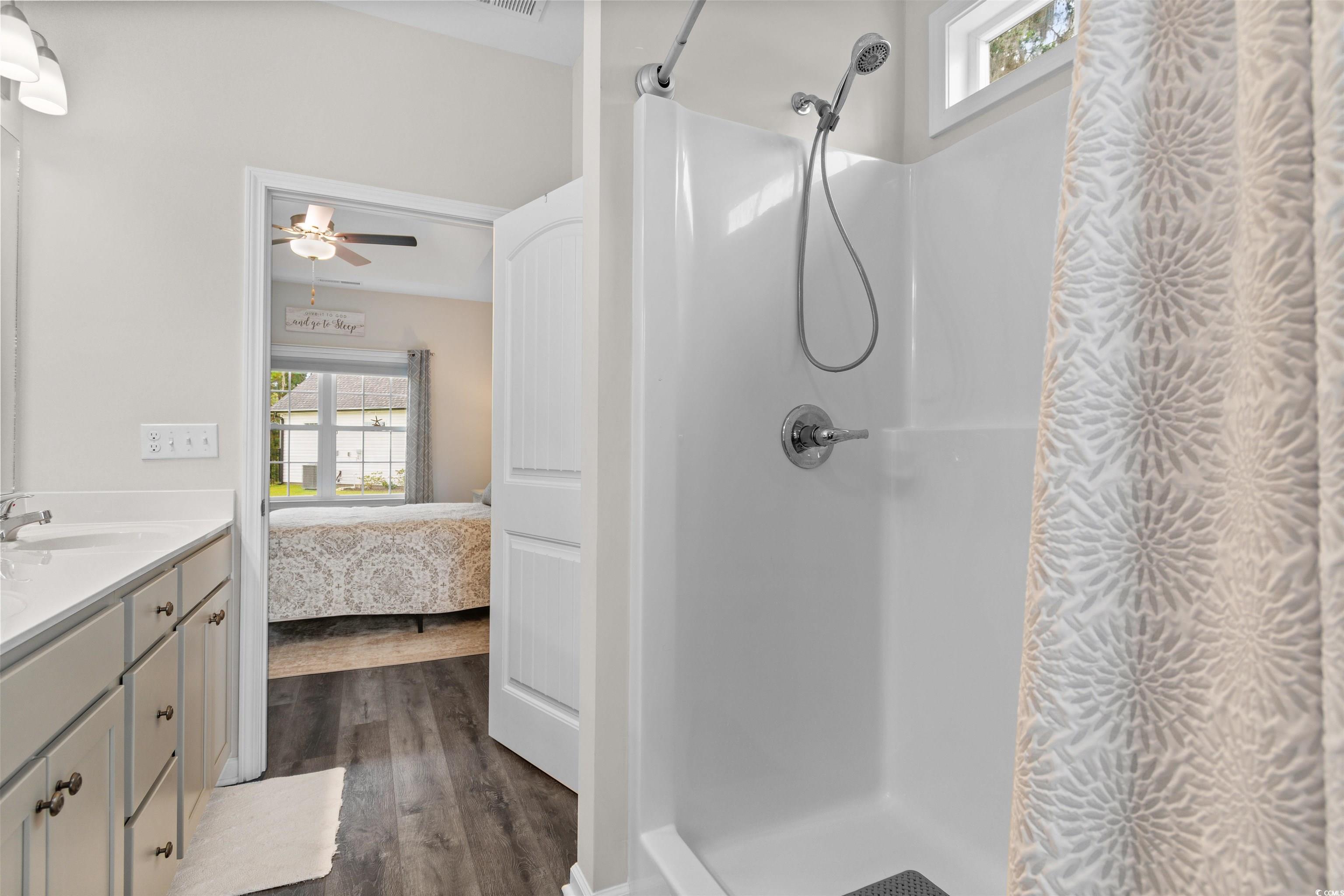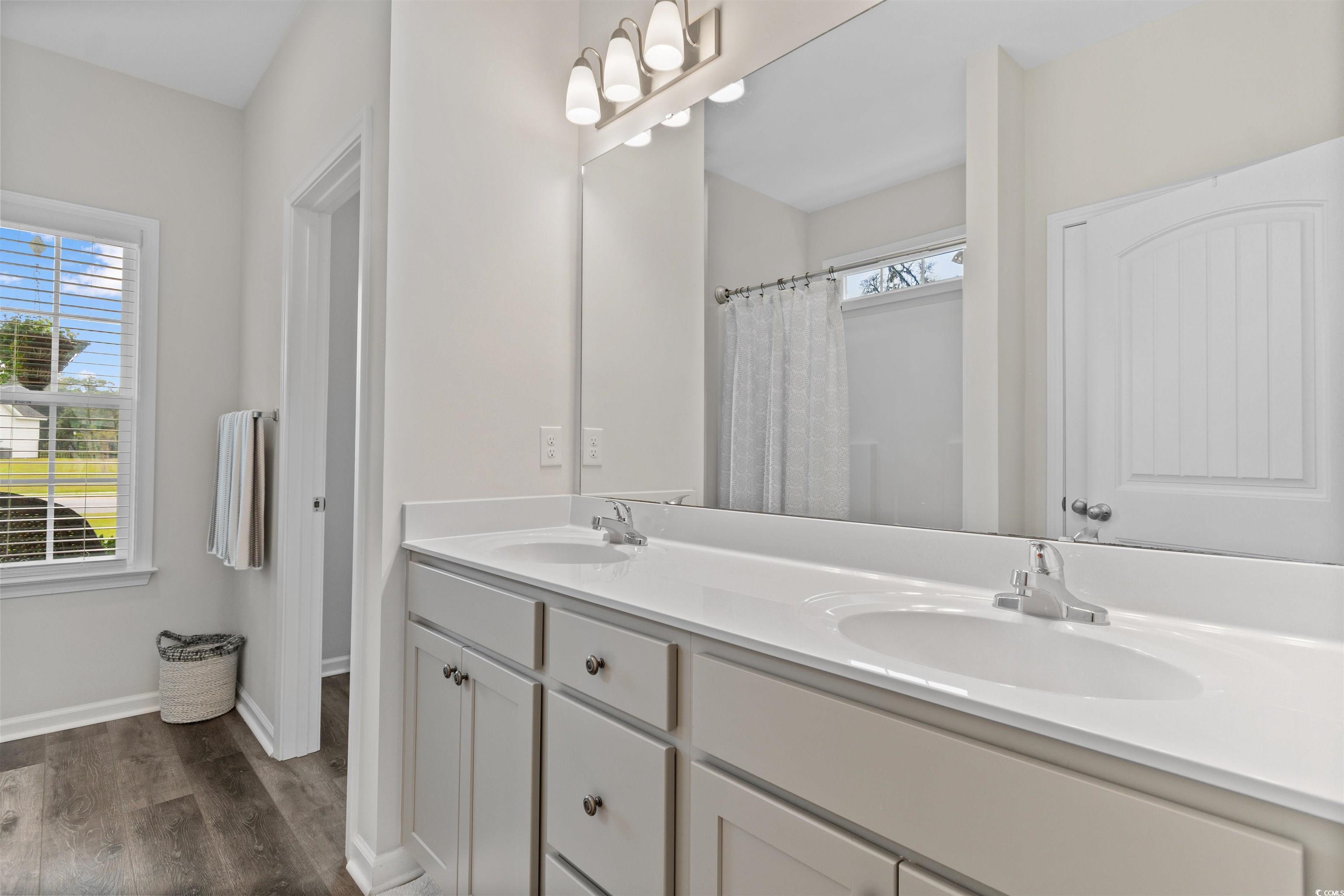 Welcome to this beautiful new community, Peru Plantation, just outside Historic Georgetown, South Carolina! Lined with picturesque Live Oaks, the neighborhood offers a community pool and clubhouse, creating the perfect Lowcountry lifestyle. This 3-bedroom, 3-bath home features a desirable split-bedroom floor plan. The spacious primary suite is located on the main floor, with a guest bedroom tucked away in the opposite corner for privacy. Upstairs, you’ll find the third bedroom with a full bathroom—ideal for guests, teens, or a private retreat. The open-concept living area is highlighted by quartz countertops, a walk-in pantry, and luxury vinyl plank flooring throughout the entire ground floor. An oversized laundry room provides extra convenience, while the screened-in porch and adjoining patio create the perfect space for entertaining or relaxing outdoors. This home blends comfort, privacy, and style with the charm of a welcoming new community just minutes from Georgetown’s historic waterfront.