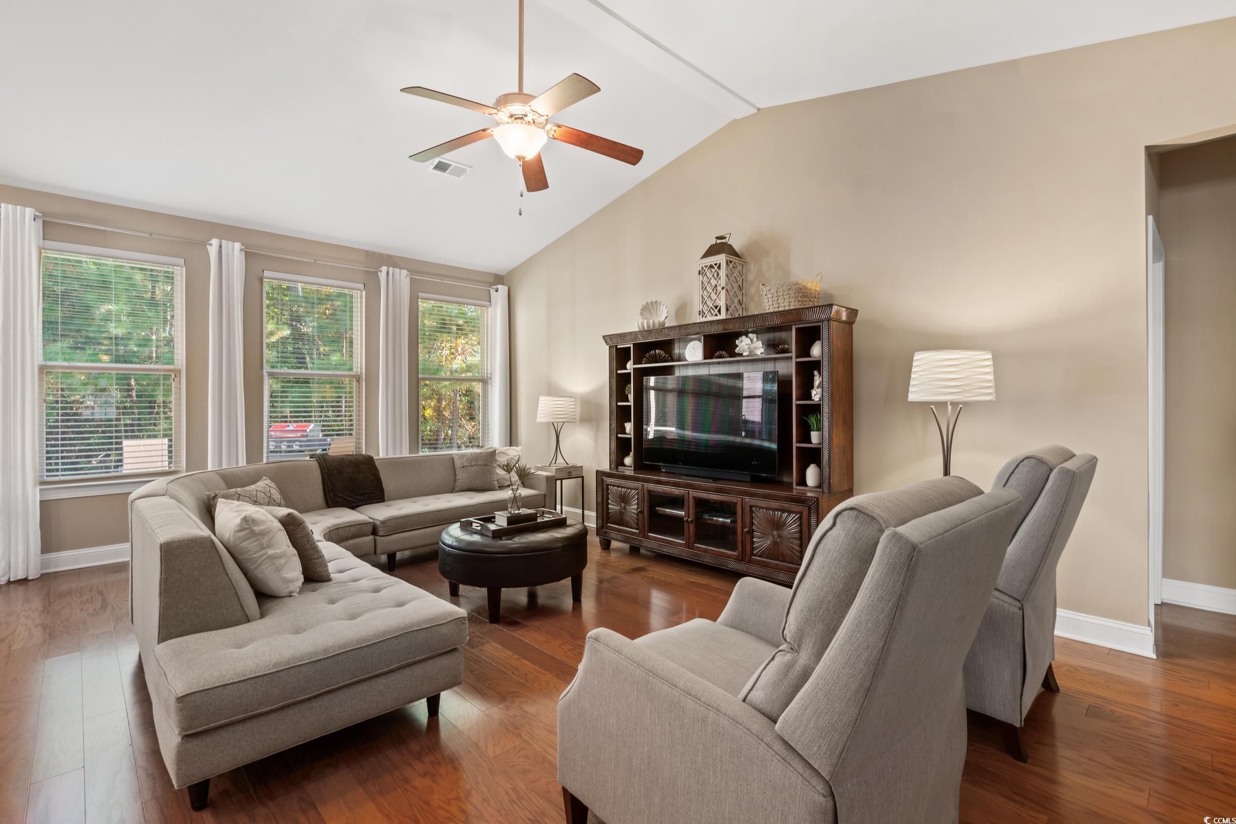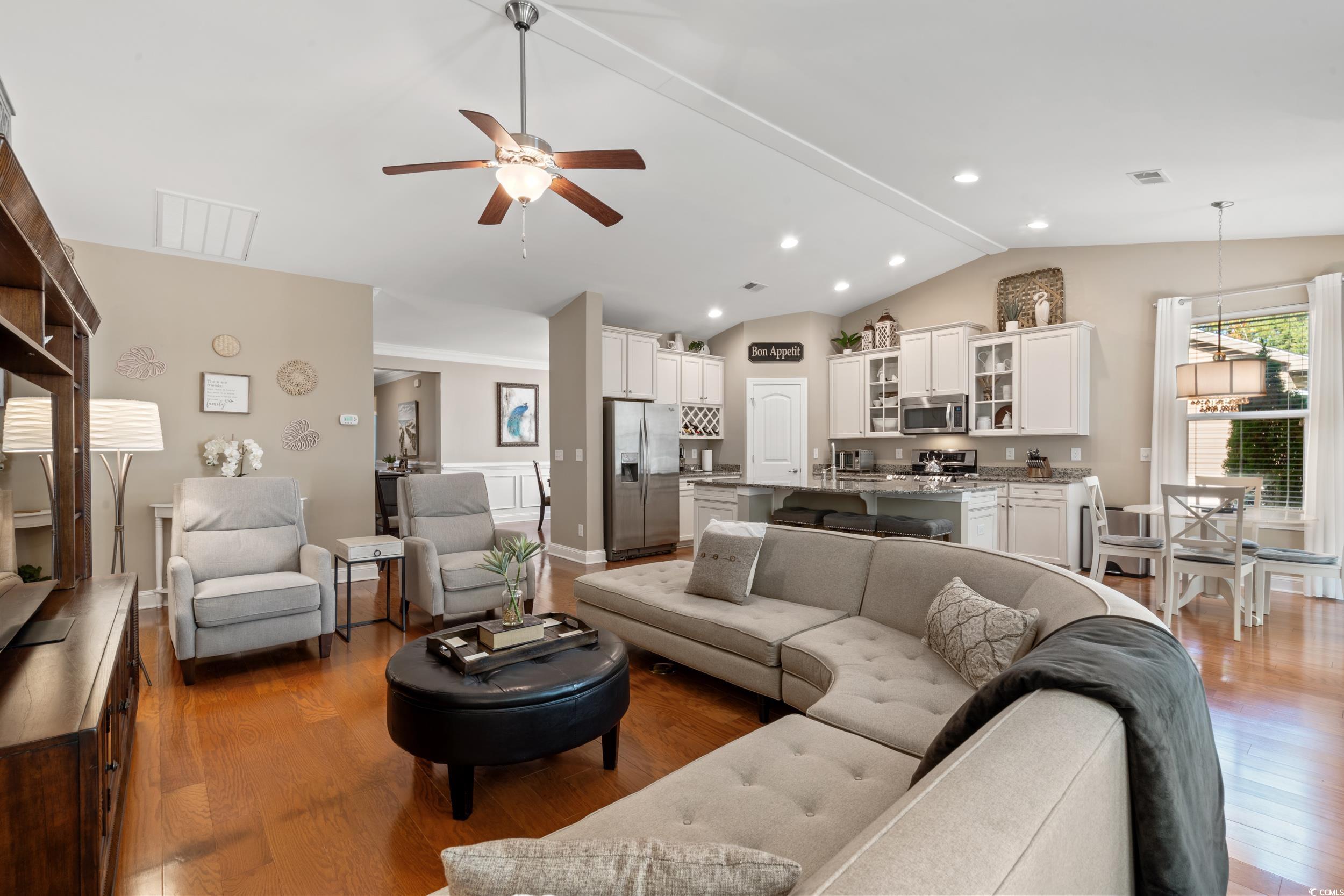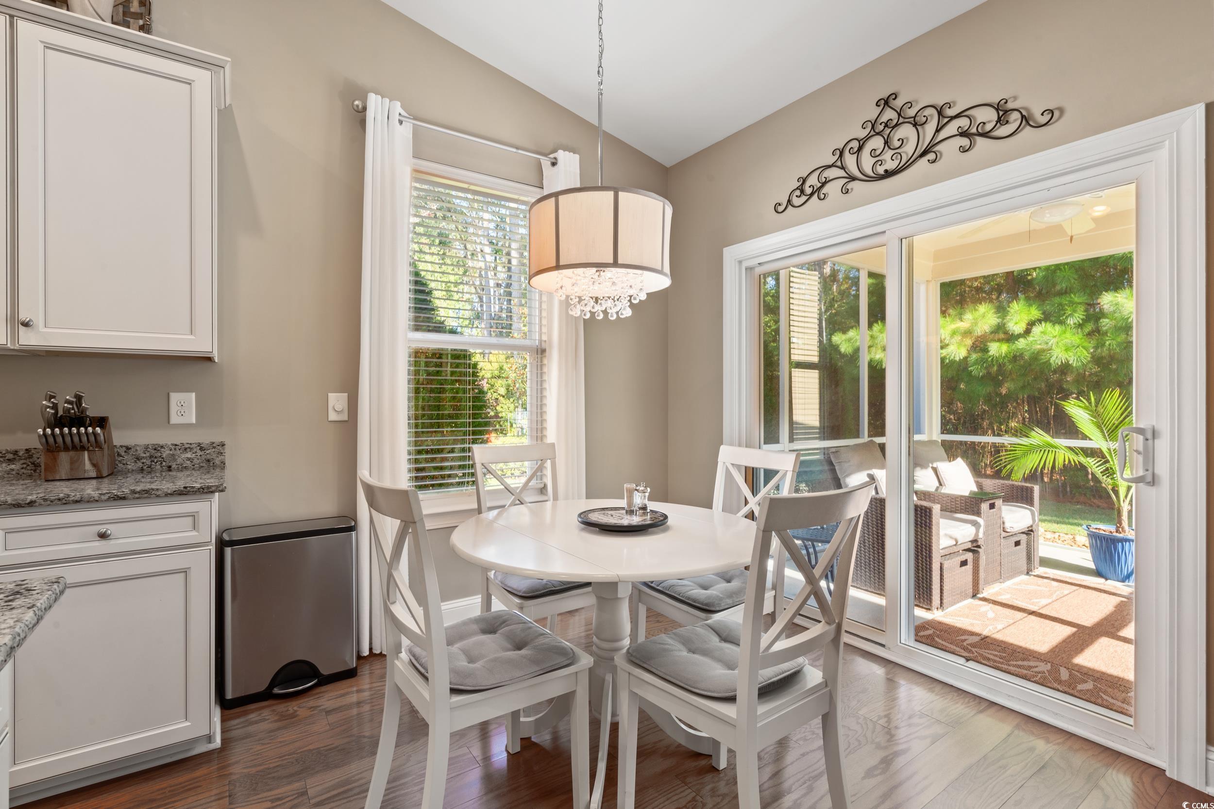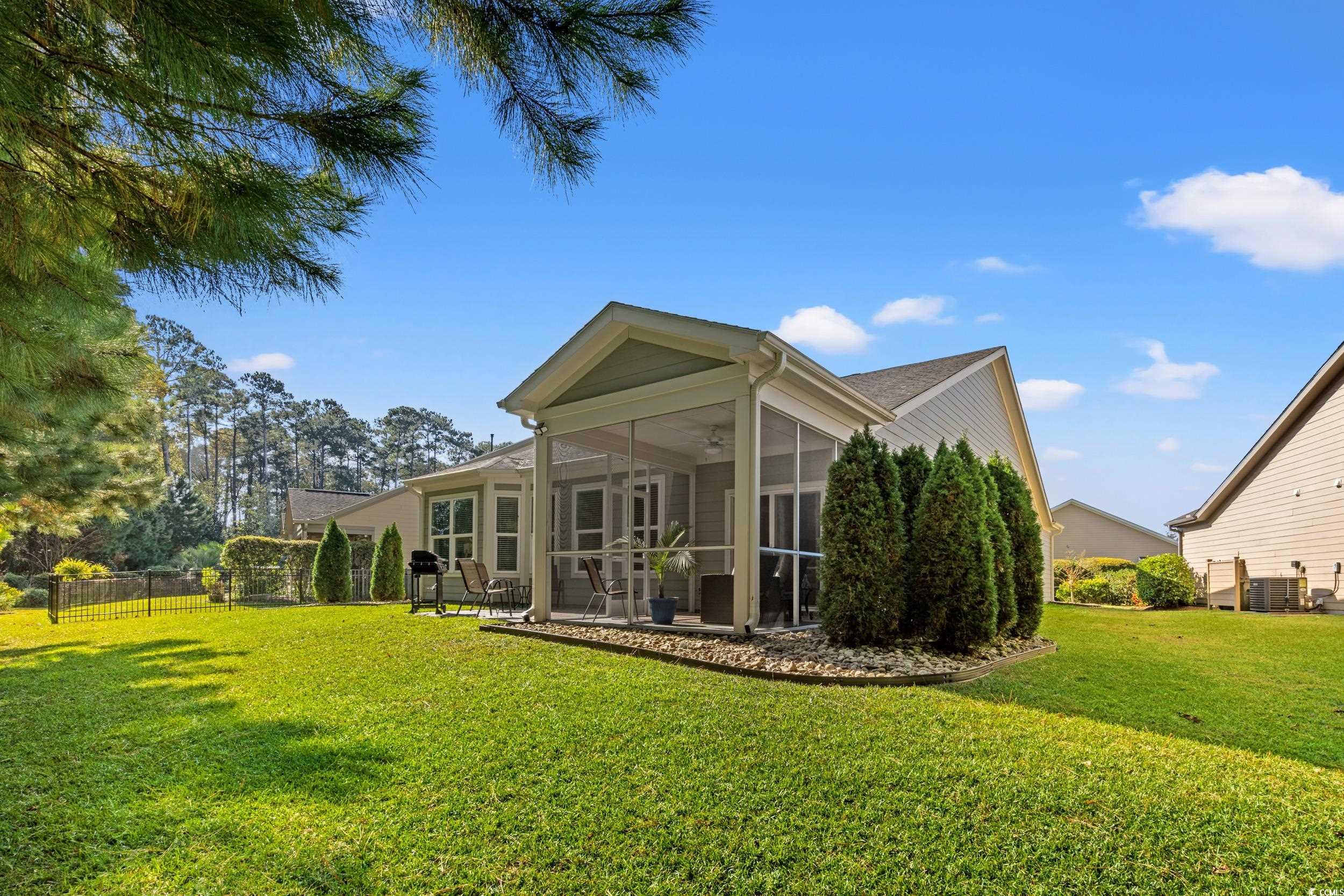Discover this beautifully maintained ranch-style home in the highly sought-after community of The Reserve at Market Common. Featuring the popular “Savannah” floor plan, this residence offers comfortable single-level living with an open, efficient layout that perfectly blends style and functionality. With 3 bedrooms, 2.5 bathrooms, and thoughtfully designed living spaces, this home provides the ideal setting for both relaxation and entertaining. A welcoming foyer opens to a formal dining room and a split-bedroom layout that ensures privacy for family and guests. The chef-inspired kitchen features a large work island, gas range, and ample cabinetry, seamlessly flowing into the main living area and out to a screened porch overlooking a peaceful wooded lot—a perfect retreat for morning coffee or evening gatherings. The primary suite easily accommodates a king-size bed and includes dual sinks, a walk-in closet, walk in shower with built-in seat. Exterior highlights include fiber cement siding—a durable, low-maintenance composite—and an oversized two-car garage with a paver driveway that enhances curb appeal. Located in a quiet, friendly community with sidewalks and green spaces, this home is just minutes from The Market Common’s shops, restaurants, movie theater, bowling and entertainment. Enjoy the ease of golf cart living with a quick ride to the beautiful Atlantic Ocean beaches nearby!