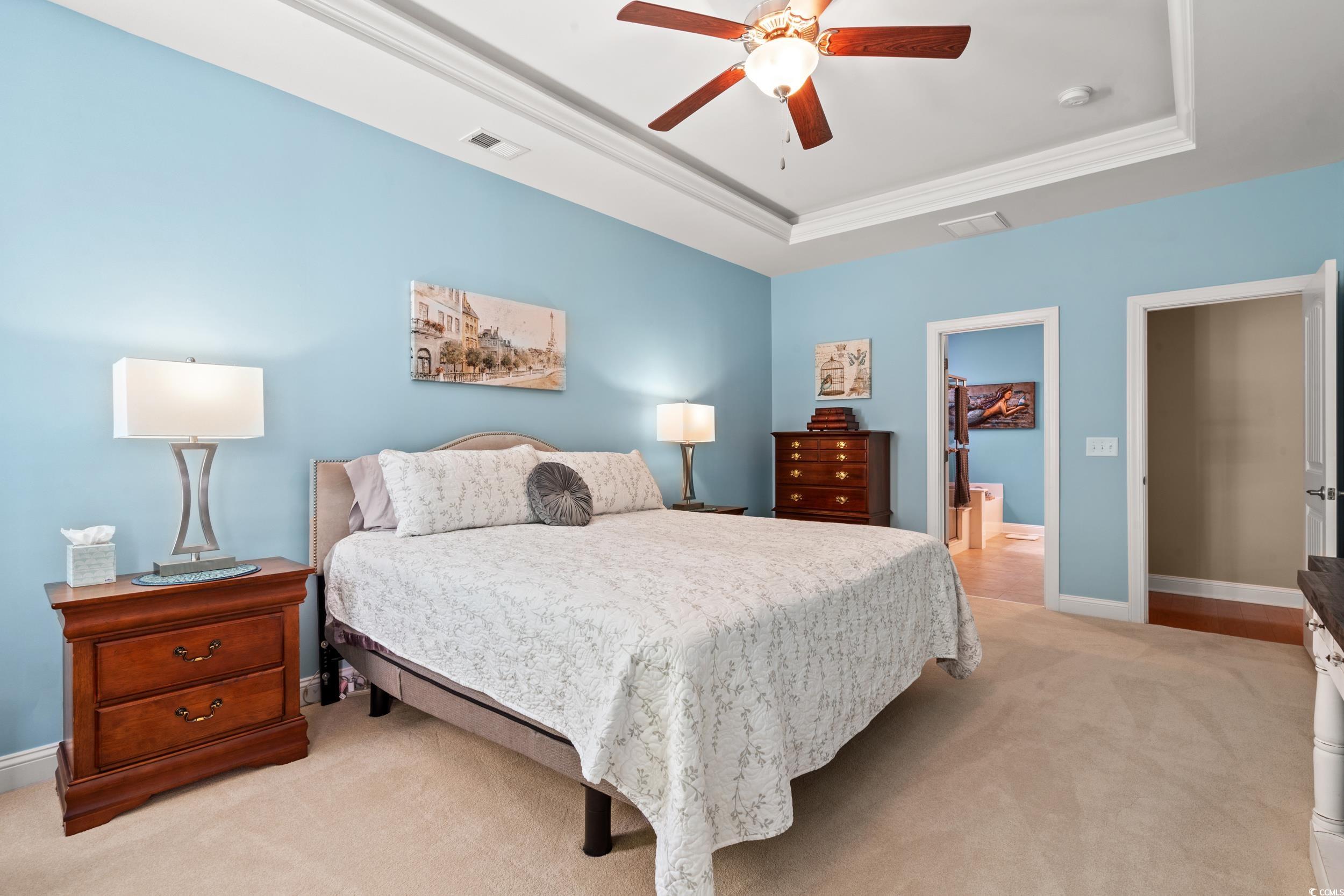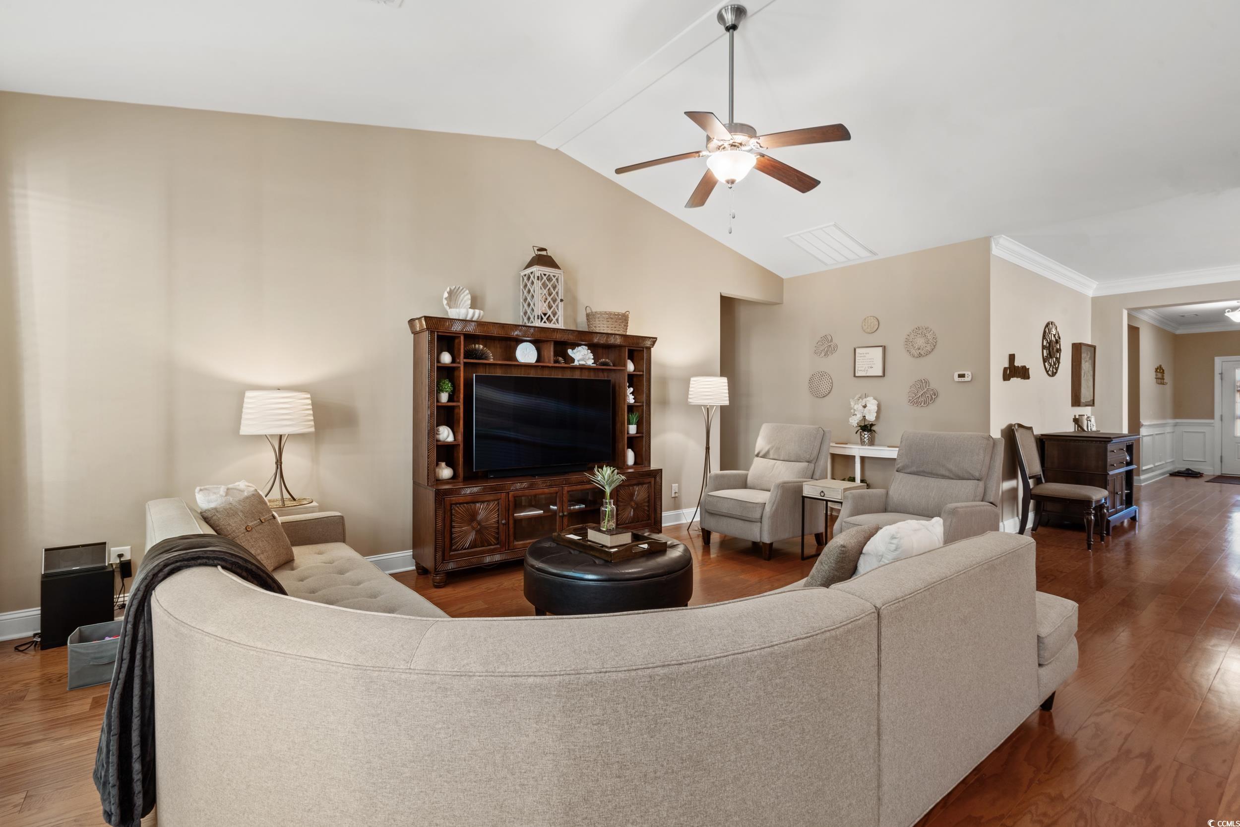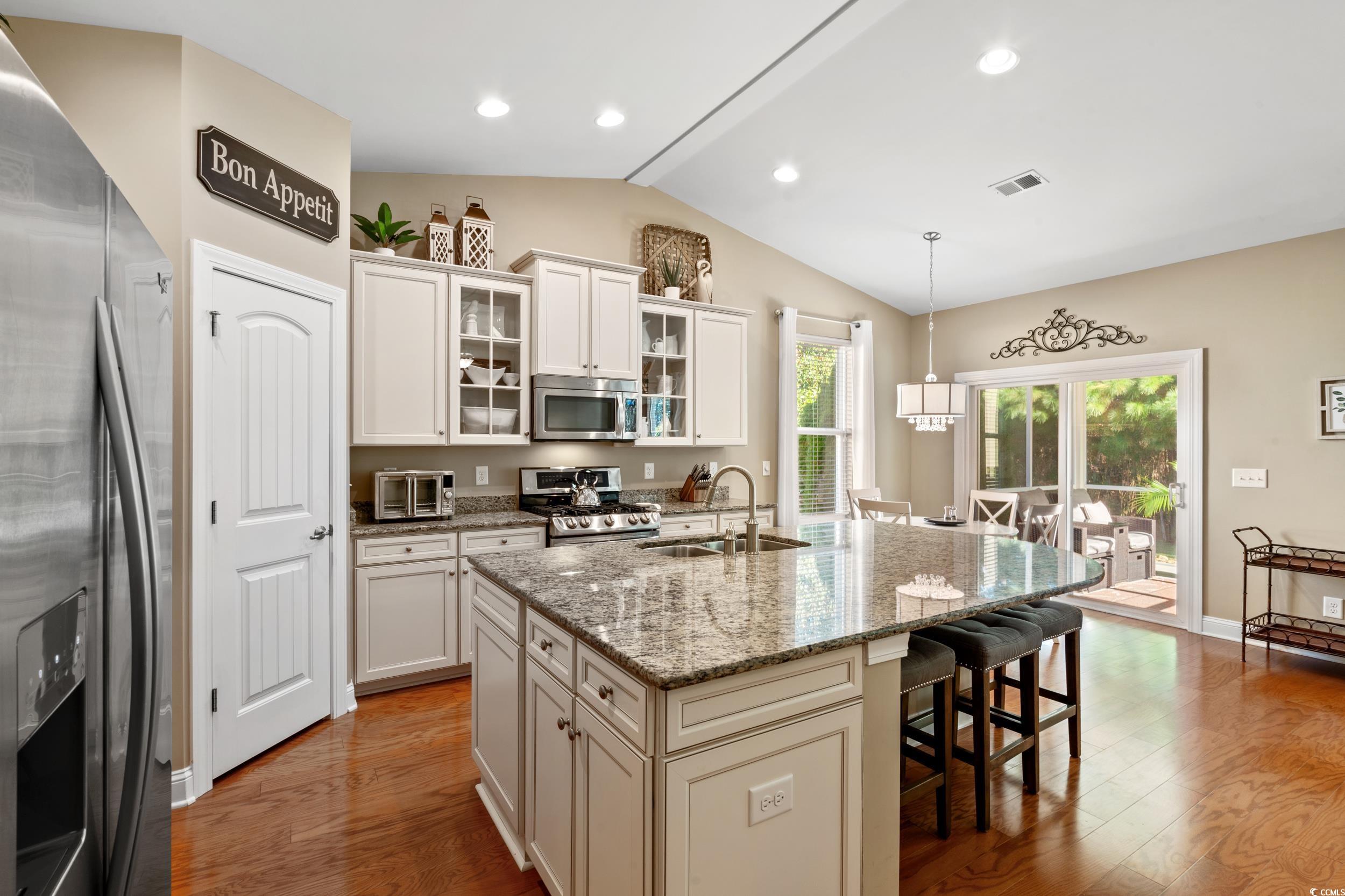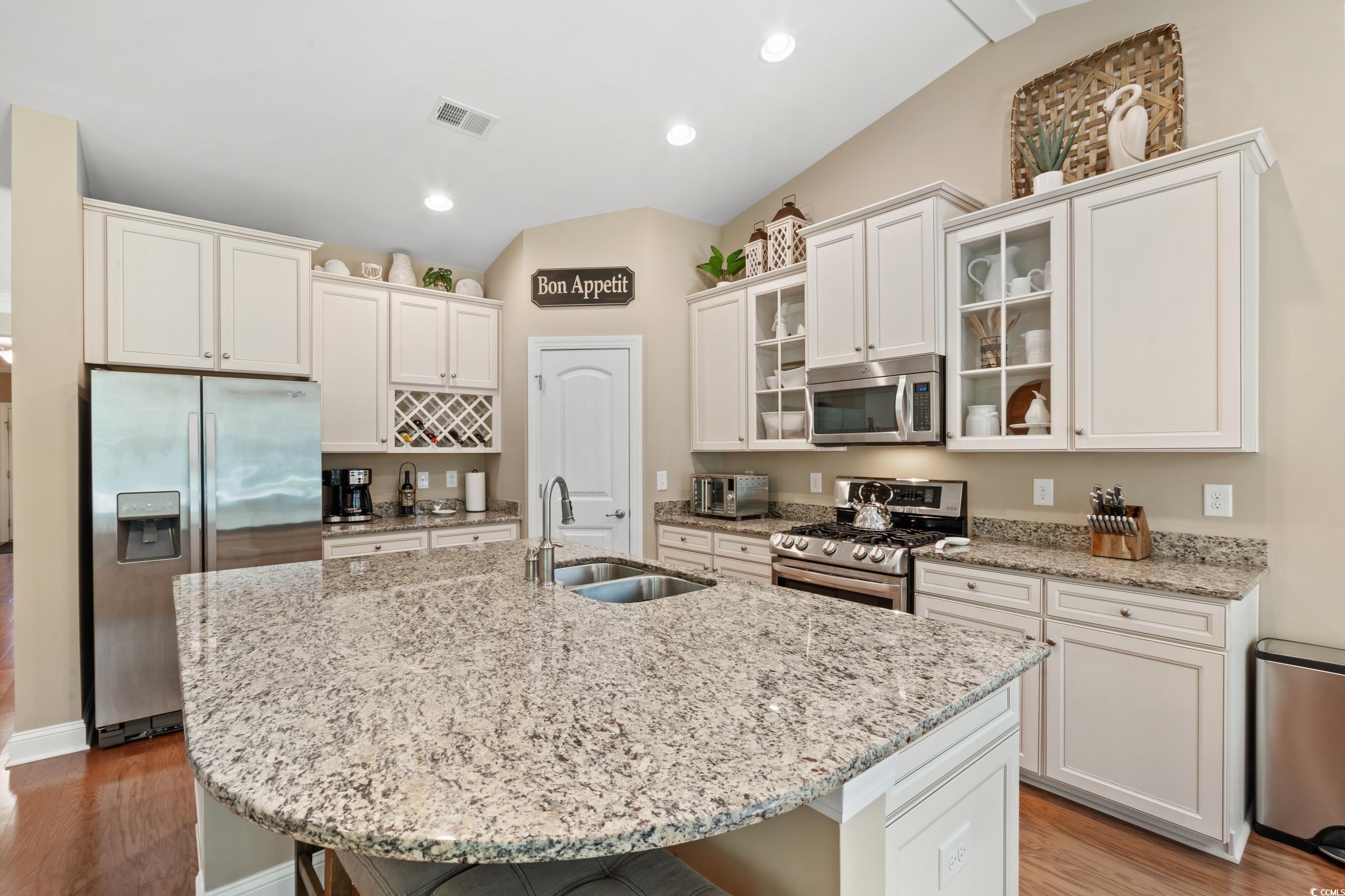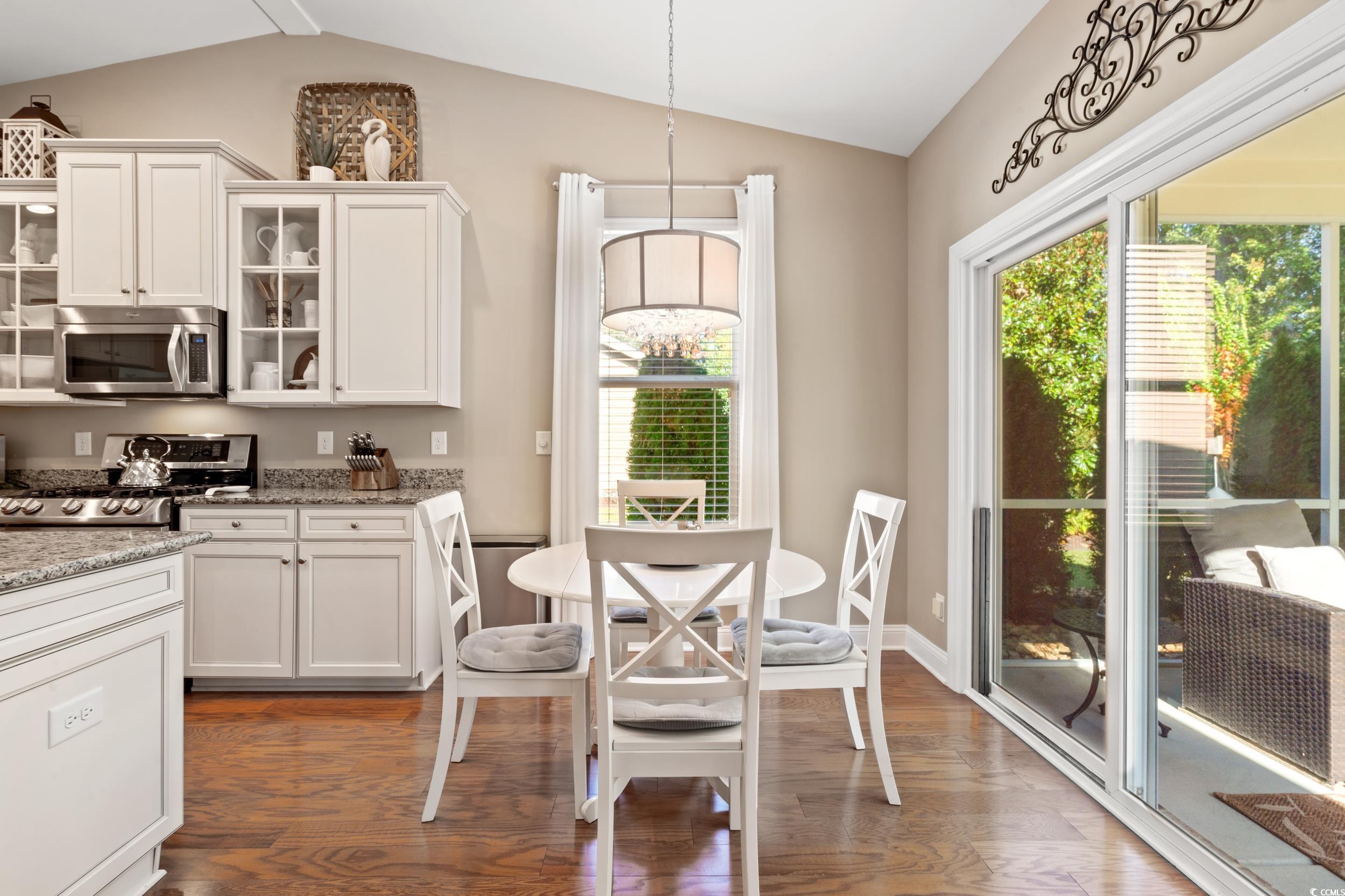 Discover this beautifully maintained ranch-style home in the highly sought-after community of The Reserve at Market Common. Featuring the popular “Savannah” floor plan, this residence offers comfortable single-level living with an open, efficient layout that perfectly blends style and functionality. With 3 bedrooms, 2.5 bathrooms, and thoughtfully designed living spaces, this home provides the ideal setting for both relaxation and entertaining. A welcoming foyer opens to a formal dining room and a split-bedroom layout that ensures privacy for family and guests. The chef-inspired kitchen features a large work island, gas range, and ample cabinetry, seamlessly flowing into the main living area and out to a screened porch overlooking a peaceful wooded lot—a perfect retreat for morning coffee or evening gatherings. The primary suite easily accommodates a king-size bed and includes dual sinks, a walk-in closet, walk in shower with built-in seat. Exterior highlights include fiber cement siding—a durable, low-maintenance composite—and an oversized two-car garage with a paver driveway that enhances curb appeal. Located in a quiet, friendly community with sidewalks and green spaces, this home is just minutes from The Market Common’s shops, restaurants, movie theater, bowling and entertainment. Enjoy the ease of golf cart living with a quick ride to the beautiful Atlantic Ocean beaches nearby!