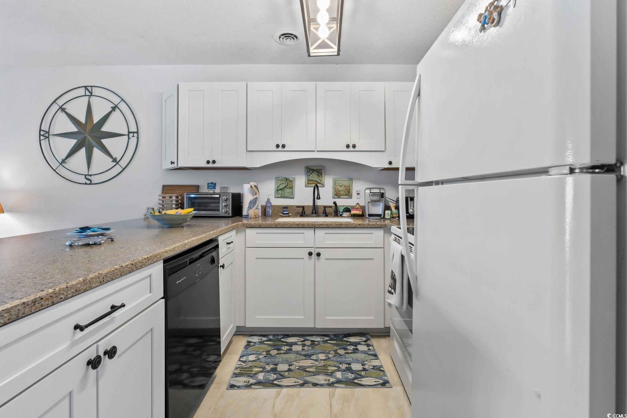 This beautifully updated, furnished, second-floor condo offers an open and inviting layout designed for both comfort and functionality. The spacious living room features durable LVP flooring that flows throughout the home, creating a clean and cohesive look. Adjacent to the living area, the kitchen is highlighted by white shaker-style cabinetry, granite countertops, and a breakfast bar that provides additional seating and serving space - perfect for casual dining or entertaining. The dining area is conveniently positioned near the kitchen, offering the ideal setting for shared meals or gatherings. Just off the living room, a private balcony provides an excellent spot for morning coffee or evening relaxation. The primary bedroom is generously sized and offers direct access to a full bathroom, complete with modern finishes. An additional half bath is located near the entry, ideal for guests or added convenience. A separate utility closet outside provides additional storage space, and the laundry area is easily accessible just off the main living space on the balcony. Thoughtfully designed with a seamless flow from room to room, this condo combines modern updates with low-maintenance living in a prime coastal location. The community is both welcoming and flexible! Golf carts and motorcycles are allowed, and yes, you can golf cart straight to the beach! Short-term rentals such as Airbnb and VRBO are permitted, making this an excellent option for investors or anyone wanting a second home that can generate income when not in use. Owners are also welcome to have pets, adding to the home's appeal and versatility. The HOA covers nearly everything: water, cable, internet, trash, pest control, pool access, and maintenance of all common areas; so you can spend more time relaxing and less time worrying about upkeep. Whether you're looking for a permanent home, a vacation escape, or a rental-ready investment, this property captures the relaxed spirit of coastal living. Condo is being sold furnished. All measurements are approximate and must be verified by the buyer.