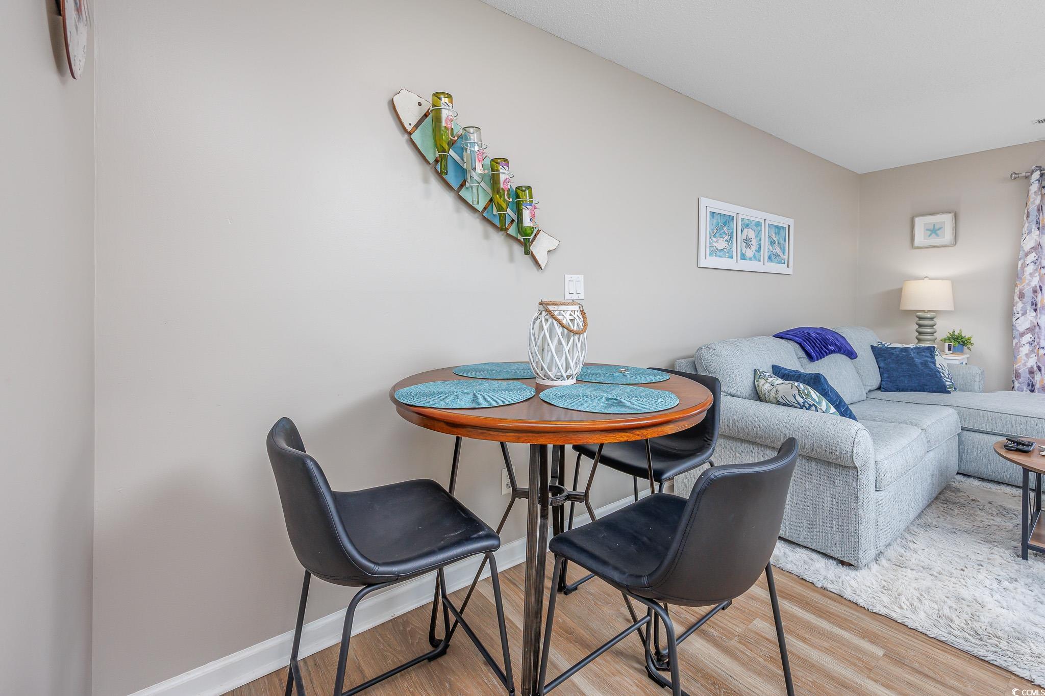 Coastal Comfort Meets Easy Living at Golf Colony 17G. Welcome to Golf Colony 17G in the heart of Surfside Beach—an impeccably updated, fully furnished 1-bedroom, 1.5-bath condo designed for relaxation, comfort, and effortless coastal living. Spanning 727 square feet, this inviting retreat features warm, beach-inspired décor and a thoughtfully designed layout with plenty of space for family and guests. The open-concept living and dining area is perfect for gathering, offering ample seating, a sleeper sofa, and a cozy electric fireplace that sets the tone for relaxing evenings or entertaining. The stylish kitchen shines with stainless steel appliances, granite countertops, new cabinetry, a spacious breakfast bar, and a four-top pub table ideal for casual dining. Convenience abounds with a powder room off the main living area and a private en-suite bath in the bedroom, both showcasing newer vanities with solid surface countertops. The spacious bedroom features vaulted ceilings, a ceiling fan, one king and one queen bed, and a generous closet, creating a comfortable and serene escape. Luxury vinyl plank flooring runs throughout the condo, with soft carpet in the bedroom for added comfort. Step out onto the large balcony overlooking the pool—complete with pull-down sun shades and a convenient washer/dryer closet—perfect for enjoying morning coffee or unwinding after a day at the beach. Golf Colony is ideally located just minutes from the beaches and attractions of Surfside Beach, the renowned dining of Murrells Inlet, and numerous area golf courses. The community is golf-cart friendly, and the golf cart shown conveys with the sale—making coastal cruising a breeze. Whether you’re seeking a vacation getaway, second home, or investment opportunity, Golf Colony 17G is the perfect place to soak up the sun and enjoy the coastal lifestyle. Schedule your private showing today.