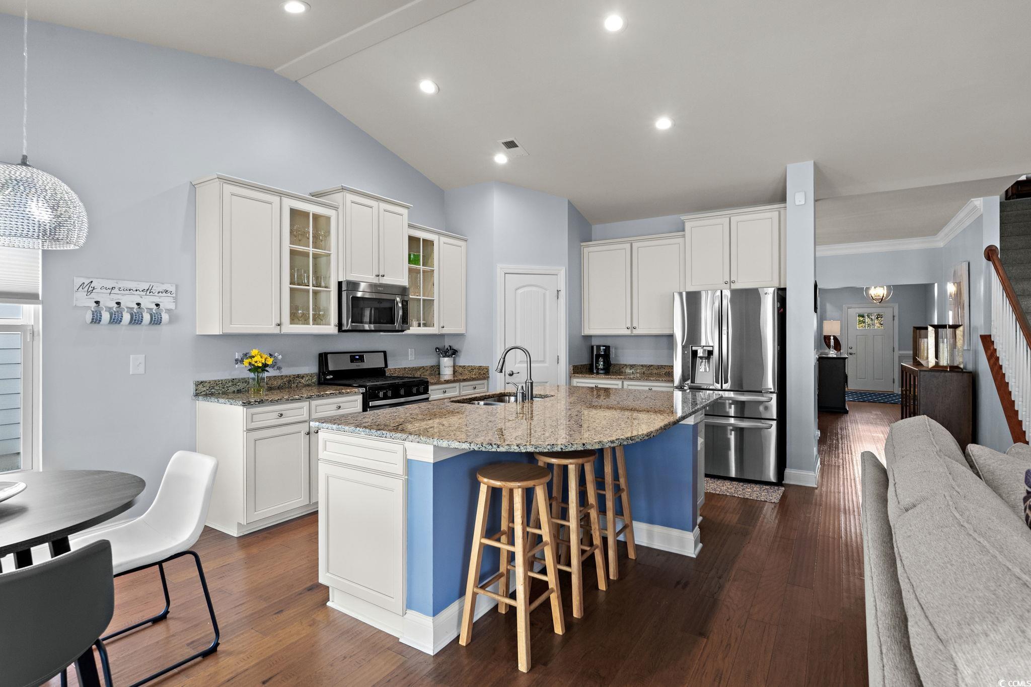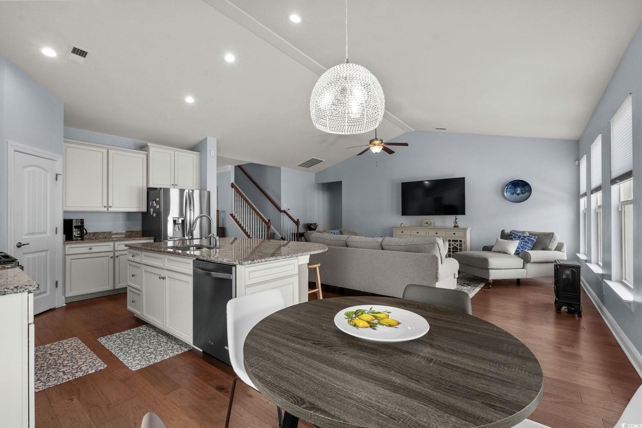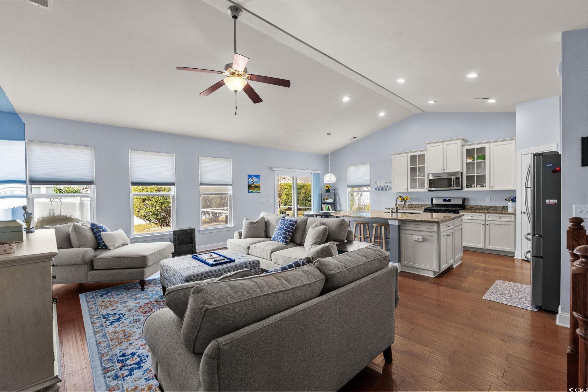 Welcome home to this beautifully maintained residence located in one of the most desirable communities in Market Common. Here, convenience and coastal living come together—in this 4 Bedroom, 3.5 bath plus Bonus Room. The location is ideal as it is located around the corner from an impressive selection of shops, restaurants, local services, and everyday amenities. Enjoy the ease of a true golf-cart community with miles of bike paths and walking trails that connect you to the heart of Market Common and the nearby beach. This home offers an open, comfortable floor plan filled with natural light. The main living area features a vaulted ceiling that adds to the spacious feel, while the kitchen blends style and functionality with granite countertops, white cabinetry, stainless steel appliances, and beautiful light wood flooring. The formal dining room features wainscoting and plenty of space to create a fantastic family gathering. A natural-gas community, this property benefits from natural-gas cooking, heat, and hot water—adding both comfort and efficiency. The first-floor primary suite is a standout feature, providing privacy and convenience. It includes a gorgeous ensuite bath designed with modern finishes and a generous walk-in closet. Two additional bedrooms and a well-appointed guest bath offer flexibility for family, guests, or a home office. The second floor expands the home even further, featuring a fourth bedroom with its own walk-in closet and a full bath. A spacious 17x15 bonus room offers excellent versatility—easily utilized as a fifth bedroom, media room, playroom, or additional living area to suit your needs. Enjoy the coastal climate year-round from the 10x12 screened porch, perfect for relaxing with morning coffee or unwinding in the evening. Just beyond is a patio ideal for grilling or outdoor dining. The yard is easy to maintain and enhanced by an irrigation system. This home also comes equipped with thoughtful upgrades that provide peace of mind, including a security system, whole-house surge protector, and custom window shades throughout. Living in this vibrant coastal community means having access to an array of local favorites, including an affordable gym, an acclaimed playground, the Culinary Institute, multiple shopping plazas, and nearby medical facilities. Everything you need is just a short walk, bike ride, or golf-cart trip away. Whether you’re seeking a full-time residence or a low-maintenance coastal retreat, this home offers the perfect blend of comfort, style, and convenience. With nothing left to do but move in, you can start enjoying the Market Common lifestyle immediately. Hop in your golf cart and take the short ride to the beach—your new coastal chapter awaits.