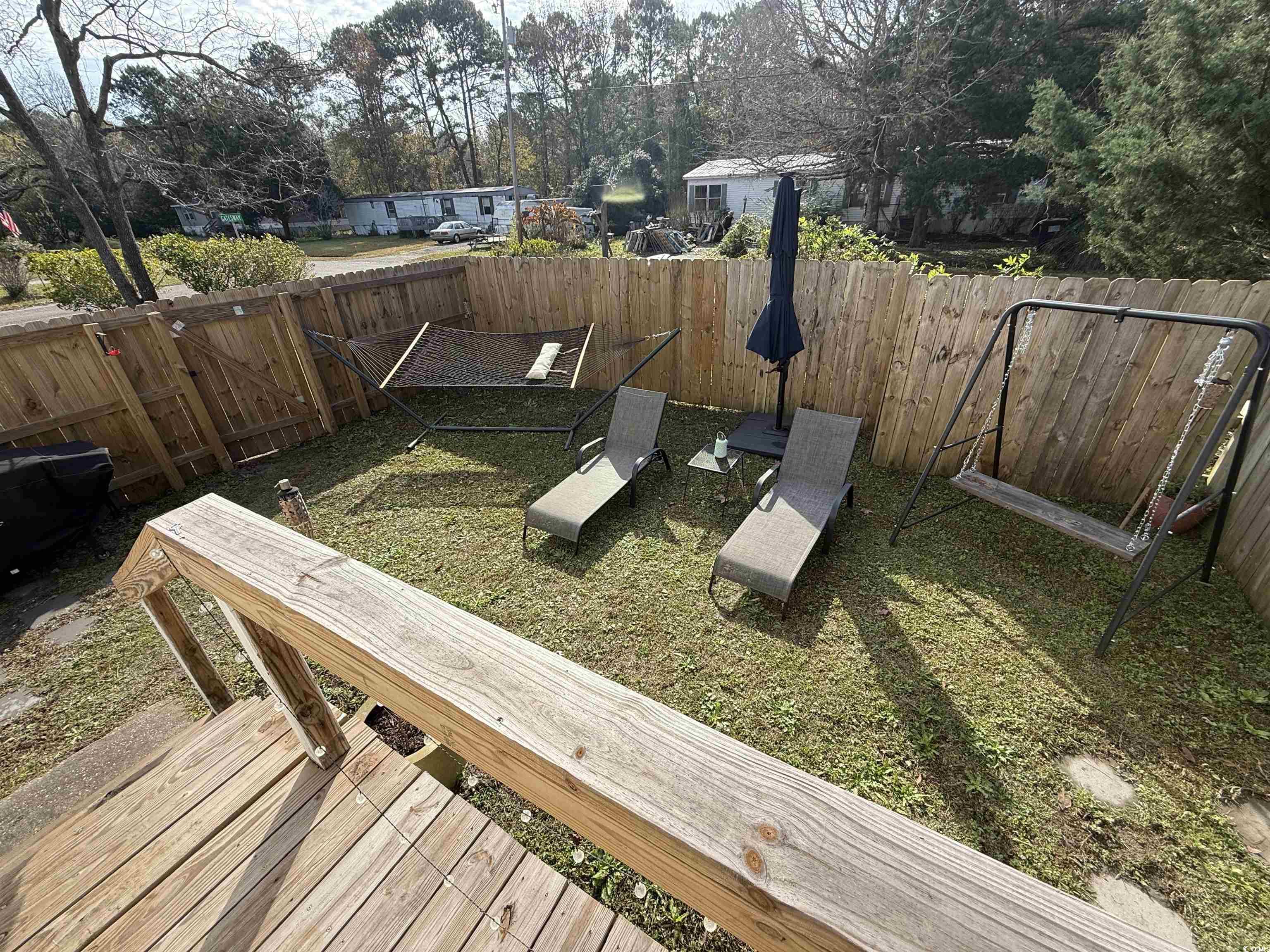 Welcome to 19 Gates Way a beautifully renovated 4-bedroom, 2-bath home in the heart of Pawleys Island, offering the perfect blend of coastal living, privacy, and modern upgrades. Completely renovated in 2022, this move-in-ready property sits in a quiet, friendly neighborhood just steps from the Pawleys bike path and within walking distance of the local elementary school. Outside, the home is surrounded by mature Southern landscaping, including two stunning magnolia trees, a camellia, and several large azaleas and flowering shrubs that bloom vibrantly throughout the seasons. The backyard features a 6-ft privacy fence with dog no-dig protection, and a separate fenced side courtyard makes the perfect grilling or outdoor dining space. Motion-sensor exterior lighting (new bulbs added in 2025) and dedicated power for a future hot tub add convenience and value. An additional storage shed offers great space for bikes, beach gear, lawn tools, and more. A standout feature of this property is the powered workshop, updated in 2023 with new insulation, flooring, walls, a window unit, and upgraded lighting—ideal for hobbies, woodworking, art, or extra storage. Inside, the home offers a warm, functional layout with two separate living areas, one featuring a cozy fireplace and built-in shelving. The renovated kitchen includes a built-in island with additional storage and a newer dishwasher. Major systems including the roof and HVAC were replaced in 2022 for added peace of mind. The home’s split floor plan includes three bedrooms and one bath on one side, while the primary suite sits privately on the other, featuring a walk-in closet, private bath, and a bonus room with a closet perfect for a dedicated home office, gym, nursery, or reading retreat. Located just 1.5 miles from the beach, you can bike across the North Causeway or enjoy a quick 4-minute drive to the sand. Outdoor enthusiasts will appreciate easy access to Pawleys Island creeks for kayaking and fishing, and the home is just 4 miles from Hagley Landing, a popular public boat ramp. Don’t miss your chance to own a beautifully updated, thoughtfully designed Pawleys Island home with room to relax, grow, and enjoy the best of coastal living.