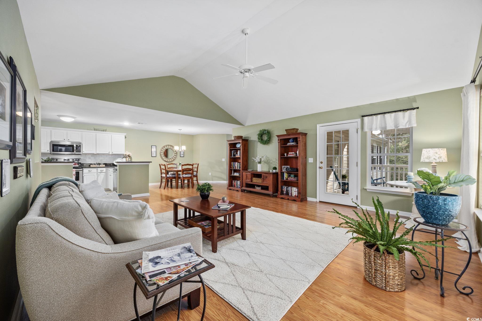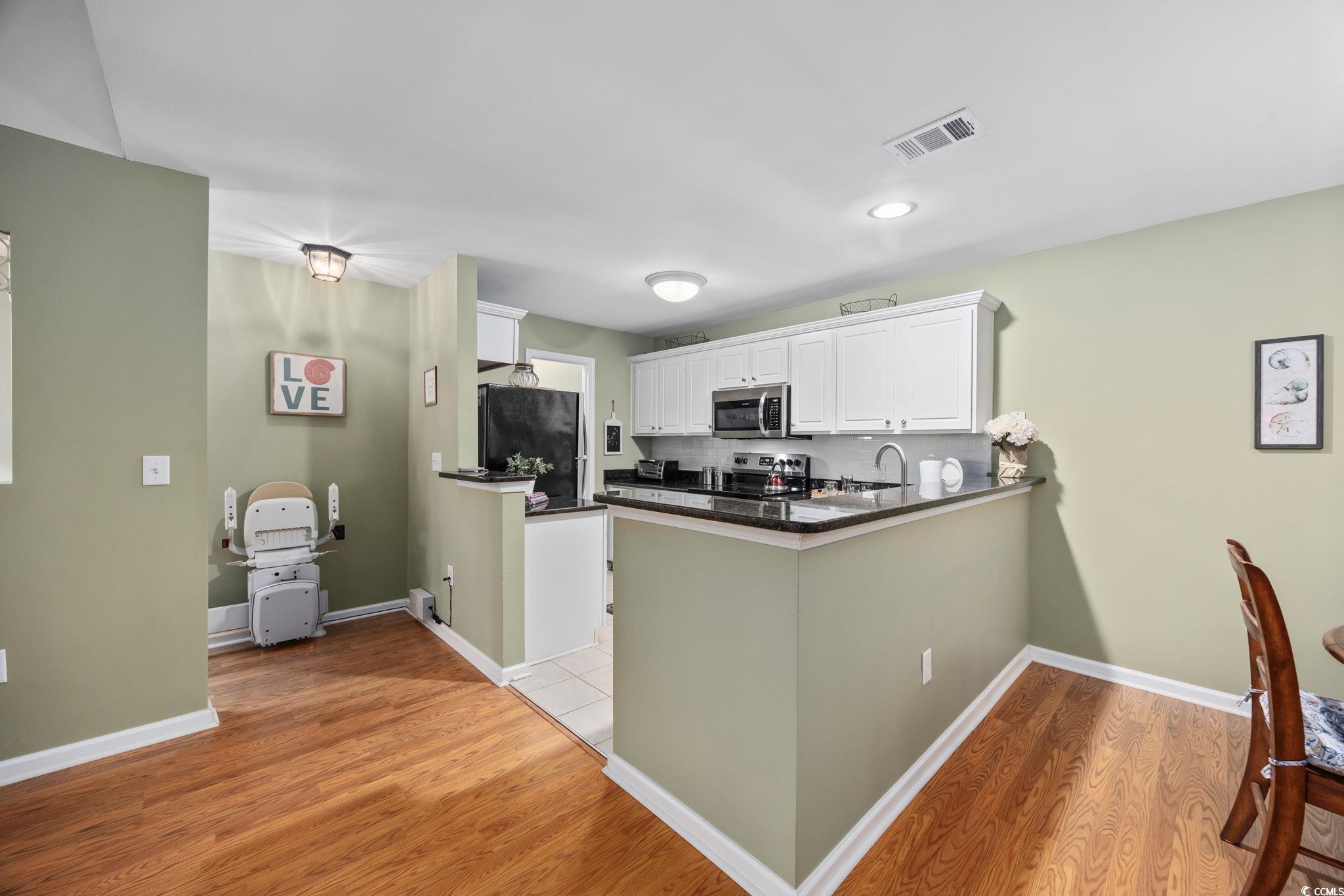 Spacious, Light, Bright & Open describe this 2nd floor, one-level home located off the 5th fairway of Wachesaw Plantation East. Tucked back in: this home offers a sweet combination of privacy and golf course views. Neutral paint and cathedral ceiling in the great room give an open, airy feel to this well-appointed condo. Original owners have upgraded kitchen to include granite countertops & newer stainless steel appliances. Also find solid wood cabinets w/ pull-out lower shelves, breakfast bar and a walk in pantry! Off the great room, a French door leads out to your private, screened porch, a perfect spot to relax with a beverage and enjoy the natural greenspace and golf course views. The generous master bedroom has two walk-in closets, linen closet & ceiling fan. Loads of natural light stream into the master bath with double vanity, step-in glass shower and separate w/c. Find a full bath, two additional bedrooms and laundry room off the hallway. Brand new stair lift installed (can be removed if desired). Winchester residents enjoy all the amenities of the community: two pools, tennis courts, fitness center, walking/ fitness trails throughout. Golf packages available at the award-winning golf course, Wachesaw Plantation East. This gated community offers the security of 24-7 uniformed guard. Talk about LOCATION: Marina & public boat launch on Intercoastal waterway are 1 mi. west, one mile east to the famous Murrells Inlet Marshwalk. Hospital, Restaurants, shopping, Brookgreen Gardens and Huntington State Park with areas' most pristine beaches on the Atlantic... all within easy reach. Fall in love with your new, Inlet way of Life !