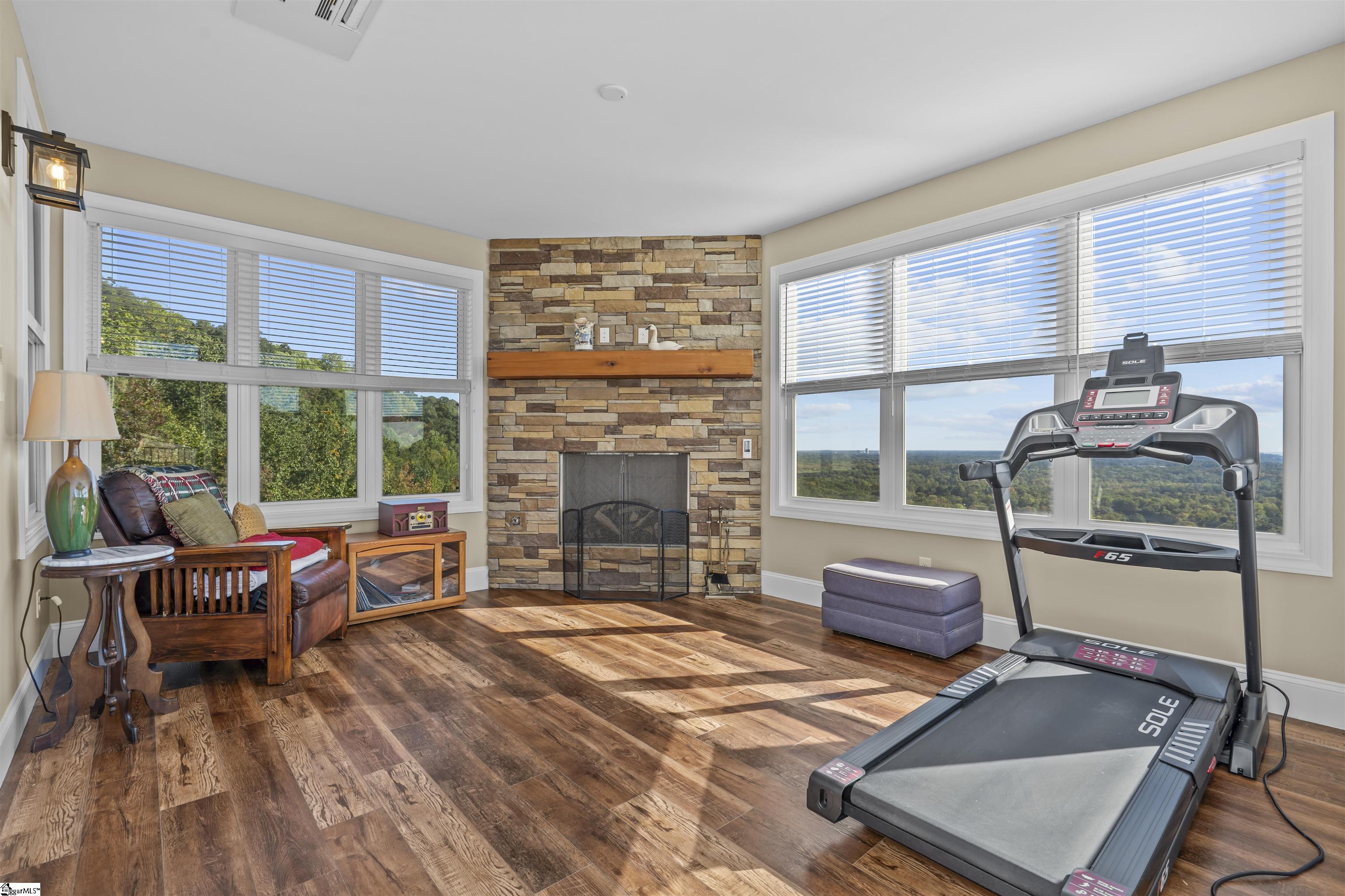 Welcome to City Light on Paris Mountain, where every sunrise greets you with golden light over Downtown Greenville and every sunset paints the Blue Ridge Mountains in soft color. This custom Craftsman home, only four years young, captures the essence of mountain living with elegance and warmth. From the moment you pass through the gated entrance, you’ll feel the embrace of nature and the quiet sophistication of this exclusive community. Step inside to soaring ceilings, fine finishes, and a layout designed for both comfort and connection. The main-level primary suite is a private sanctuary—featuring its own fireplace, sunroom and deck access for morning coffee or evening wine under the stars. The open-concept living areas flow effortlessly to two large decks, where you can relax, entertain, and take in sweeping views of Greenville’s skyline, Furman’s bell tower, and the mountain horizon beyond. With 3,900 finished square feet and over 5,200 total, there’s room to grow— downstairs with two more unfinished area that could be bedrooms and a bath. A movie/rec room or game room with beverage bar awaits your imagination and 4th bedroom and bath. The three-car garage with EV charging, double sinks and thoughtfully landscaped grounds and natural scapes complete this exceptional home. At City Lights, nature and luxury come together seamlessly. Once the gate opens, you’re welcomed by a world of natural beauty, peace, and inspiration—just minutes from the heart of downtown, 30 minutes to Hendersonville, one hour to Asheville.