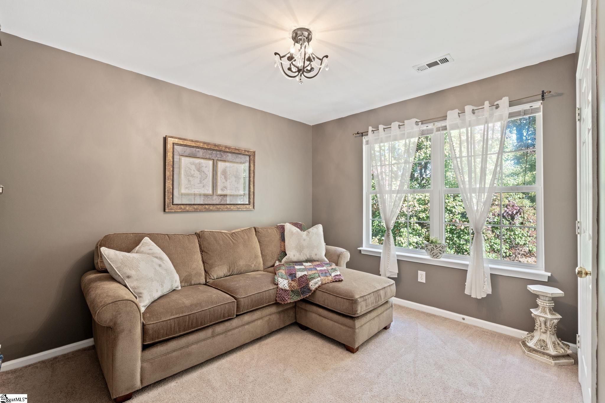 Nestled on a quiet cul-de-sac in the established Hammett Crossing neighborhood, this 3-bedroom, 2-bath home offers 1,582 square feet of bright, comfortable living. Thoughtfully designed for everyday ease, the layout flows naturally and feels instantly welcoming. The main level features vaulted ceilings, a gas-log fireplace, and an open living and dining area that invites connection. The primary suite is conveniently located downstairs, offering a calm retreat with privacy from the two additional bedrooms and full bath upstairs. A spacious bonus room provides flexibility for a home office, playroom, or guest space. Outdoors, mature landscaping and a private backyard deck create an easy spot to relax or entertain. Just a short walk away, the neighborhood pool adds a refreshing touch of community living, while nearby Downtown Greer offers local restaurants, shops, and events within minutes of home. Located in the sought-after Riverside school district, 19 Waterfield Court combines comfort, function, and location in one warm, well-kept home that's ready to welcome what’s next.