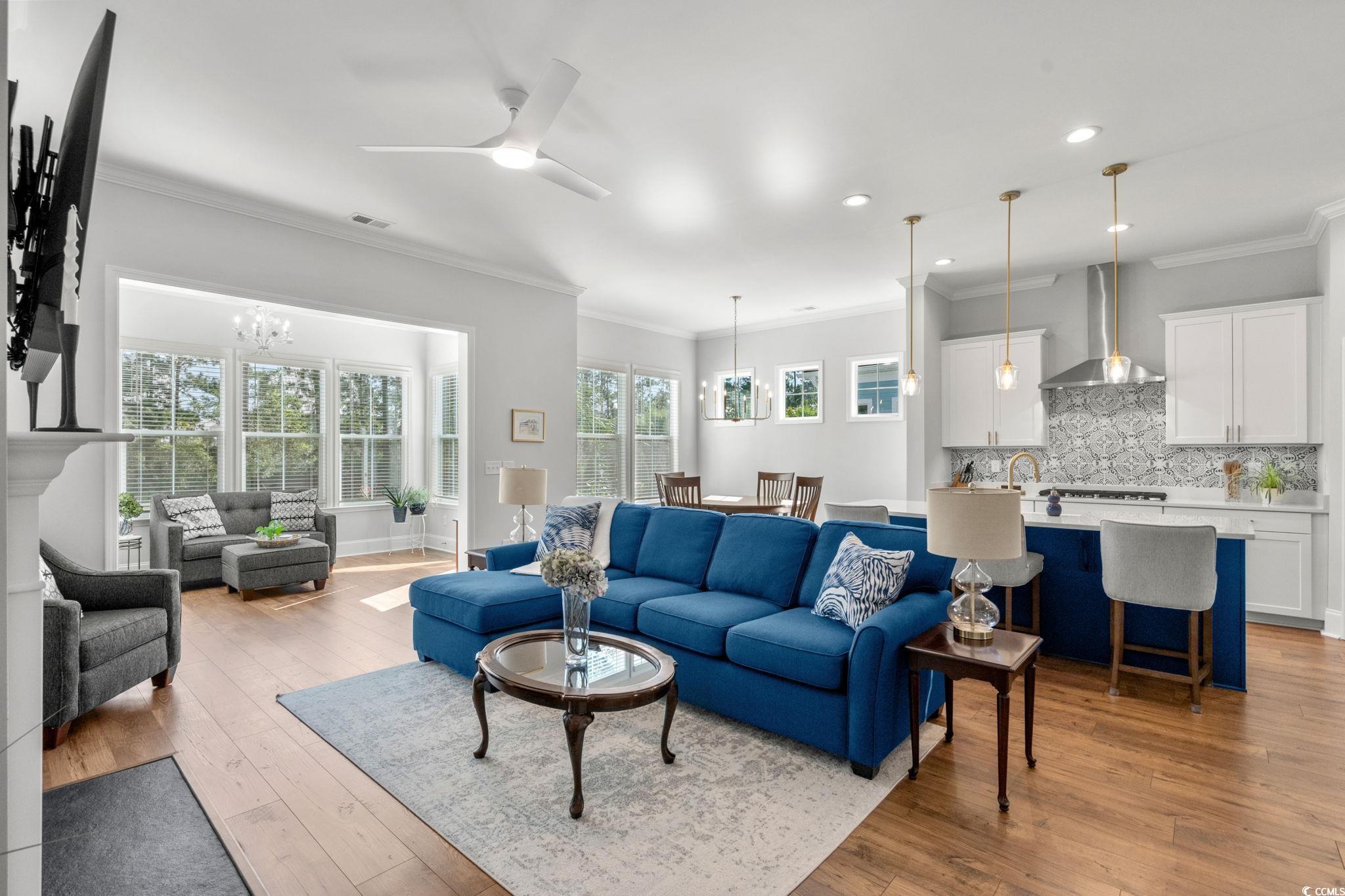 Welcome to Longwood Bluffs, a highly sought-after neighborhood within the master-planned community of Prince Creek. Built in 2023, this nearly new home blends elegant design with everyday functionality, offering both comfort and style in one of the area’s most desirable settings. Set on a generous quarter-acre homesite, the property features lush, irrigated landscaping and plenty of outdoor space to enjoy. A spacious two-car garage with additional golf cart parking provides all the room you need for vehicles, storage, and toys for coastal living. Step inside and you’re greeted by soaring ceilings and an open floor plan that seamlessly connects the living spaces. The chef’s kitchen is the centerpiece of the home, designed for both cooking and entertaining. A cozy fireplace anchors the great room, while the sunroom with panoramic windows invites you to enjoy year-round natural light and serene views. The primary suite is a private retreat with a walk-in tile shower, linen closet, and expansive walk-in closet, thoughtfully connected to the laundry room for maximum convenience. Two additional bedrooms and a second full bath provide ample space for family or guests. A functional drop zone makes daily life effortless. Living in Longwood Bluffs means access to resort-style amenities—including two pools, tennis, pickleball and basketball courts, walking trails, a picnic pavilion, and an outdoor fireplace gathering area. Beyond the neighborhood, you’re minutes from Murrells Inlet’s famed MarshWalk, award-winning restaurants, golf, and the beaches of the Grand Strand.